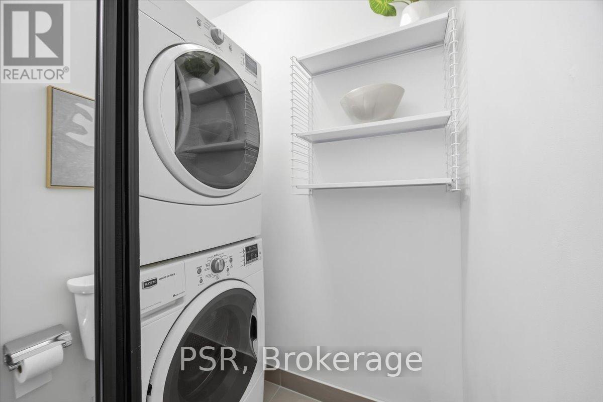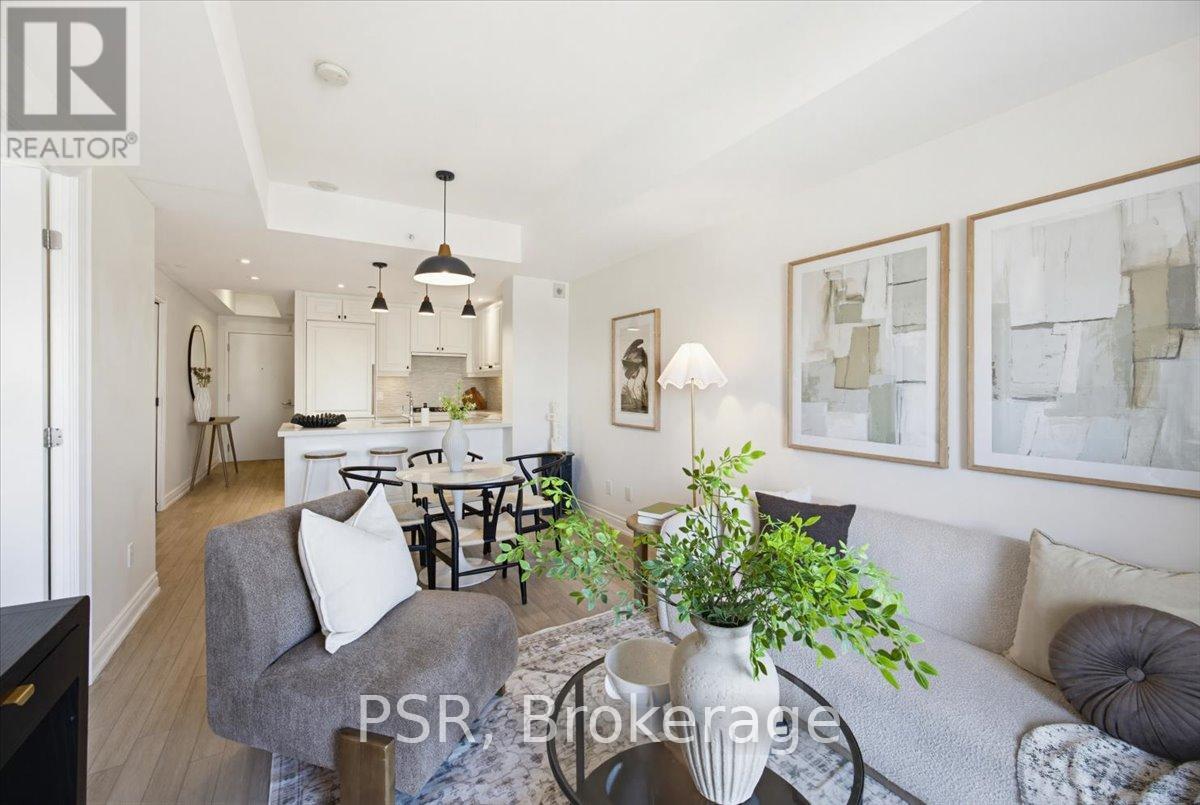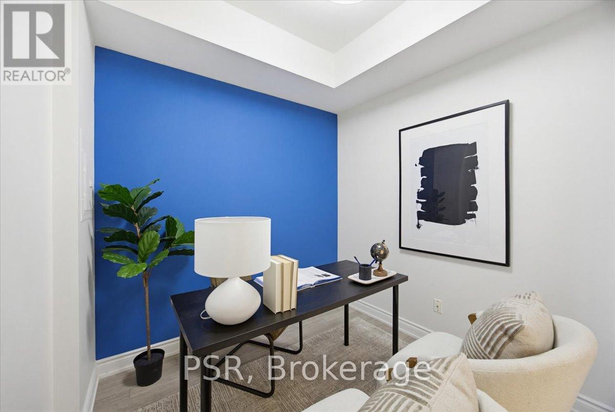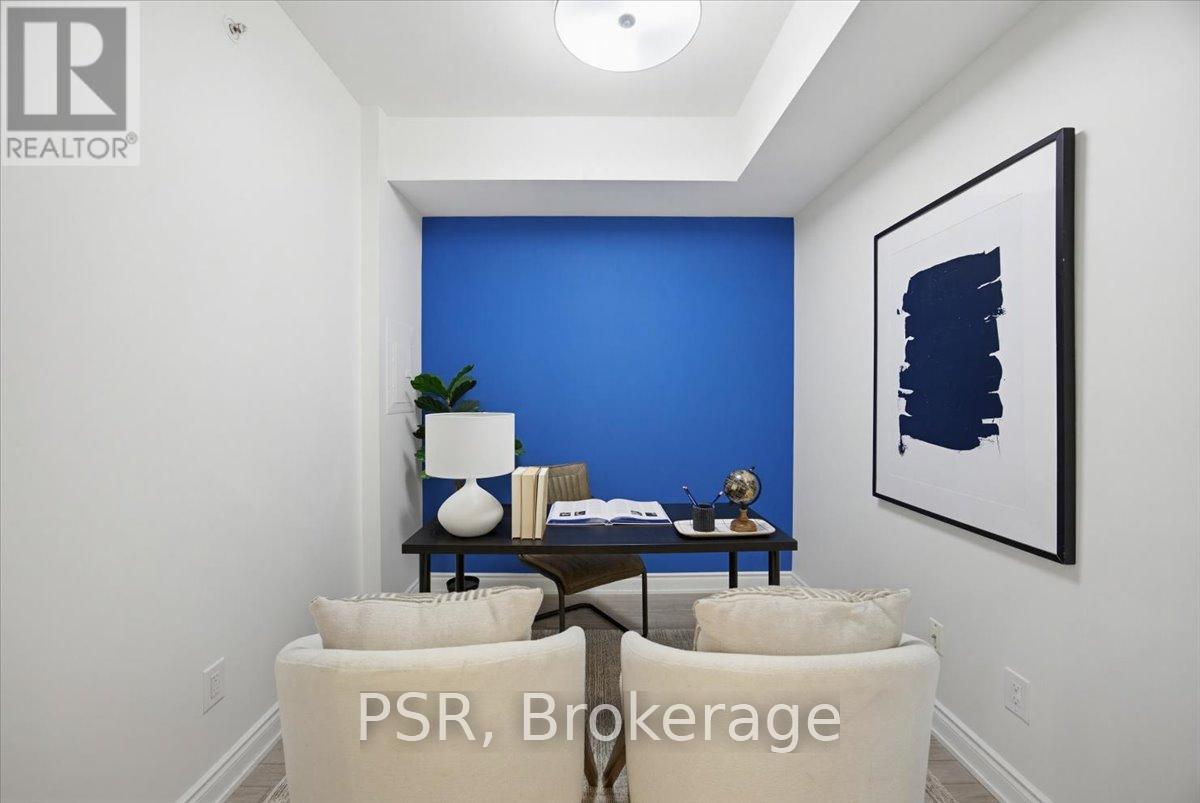 Welcome to Bluwater - Lakeside Living, Elevated. Set within one of the west GTA's most coveted lakefront communities, this rarely available 1+den, 1.5-bath suite offers approximately 785 sq. ft. of thoughtfully designed interior space paired with a private balcony and tranquil northwest exposure. The layout is exceptionally well considered, balancing openness with flexibility. The enclosed den functions beautifully as a home office, guest space, or cozy media room, while the open-concept living and dining area is bathed in natural light and flows seamlessly outdoors-an ideal setting for sunset views and evening relaxation. The kitchen is both elegant and functional, featuring integrated appliances, European-style cabinetry, quartz countertops, a gas cooktop, and a breakfast bar for casual dining and entertaining. A discreet powder room with full-size stacked laundry adds everyday convenience without compromising the aesthetic. The primary bedroom is a calm and inviting retreat, highlighted by a charming bay window, walk-in closet, and four-piece ensuite. Modern laminate flooring, custom window coverings, and timeless finishes create a warm, refined atmosphere throughout. Life at Bluwater extends well beyond your front door. Residents enjoy resort-inspired amenities including private gardens, an outdoor lounge with fireplace and BBQs, a spectacular lap pool with sundeck, spa and sauna, fitness centre, yoga and meditation room, library lounge, elegant party room, and guest suites for visitors. The true luxury? Direct gated access to Lake Ontario, where waterfront trails, parks, and a sandy beach are just steps away. Why escape to the cottage when you can enjoy year-round lakeside living-right at home. (id:4555)