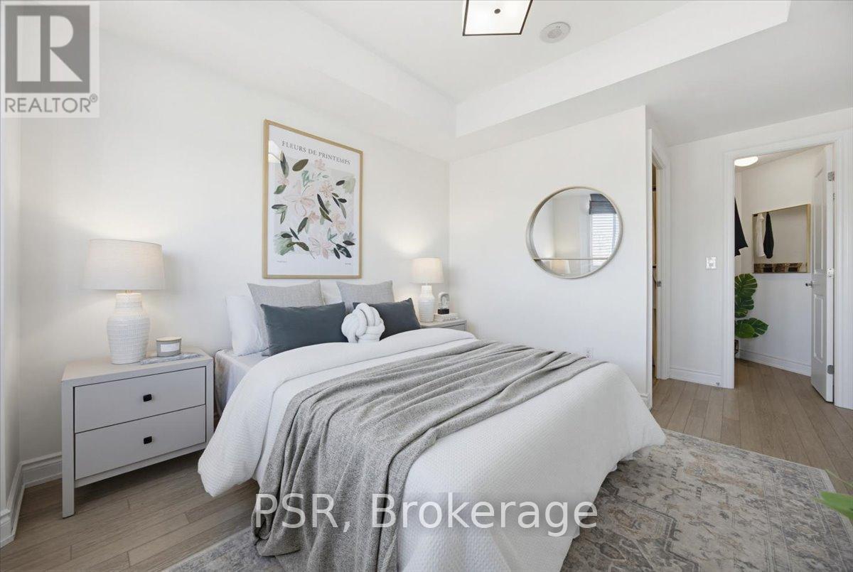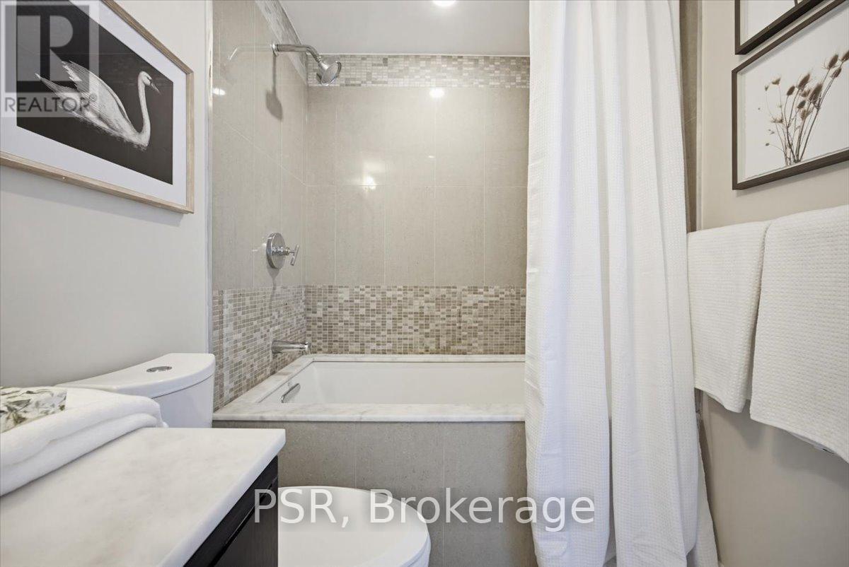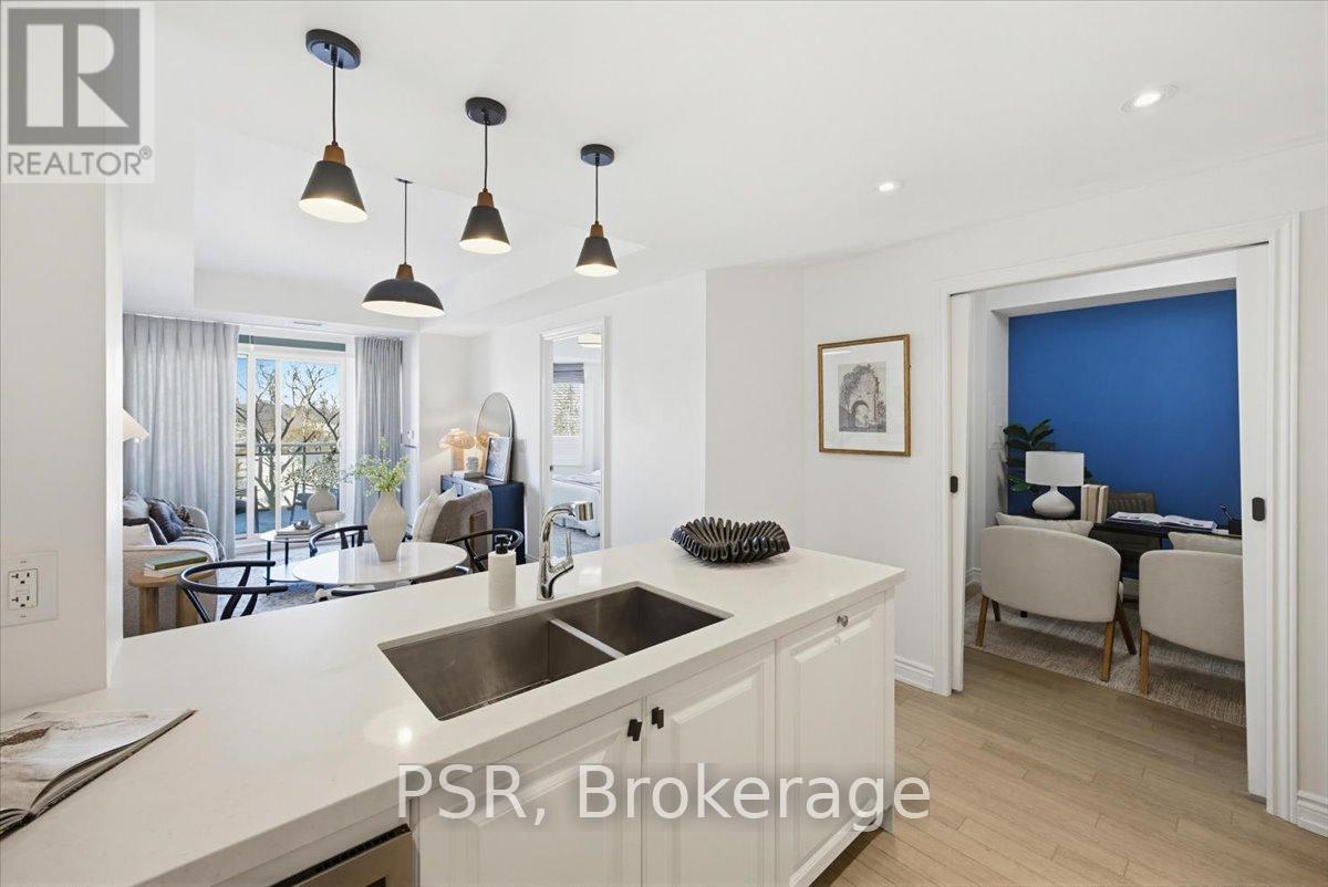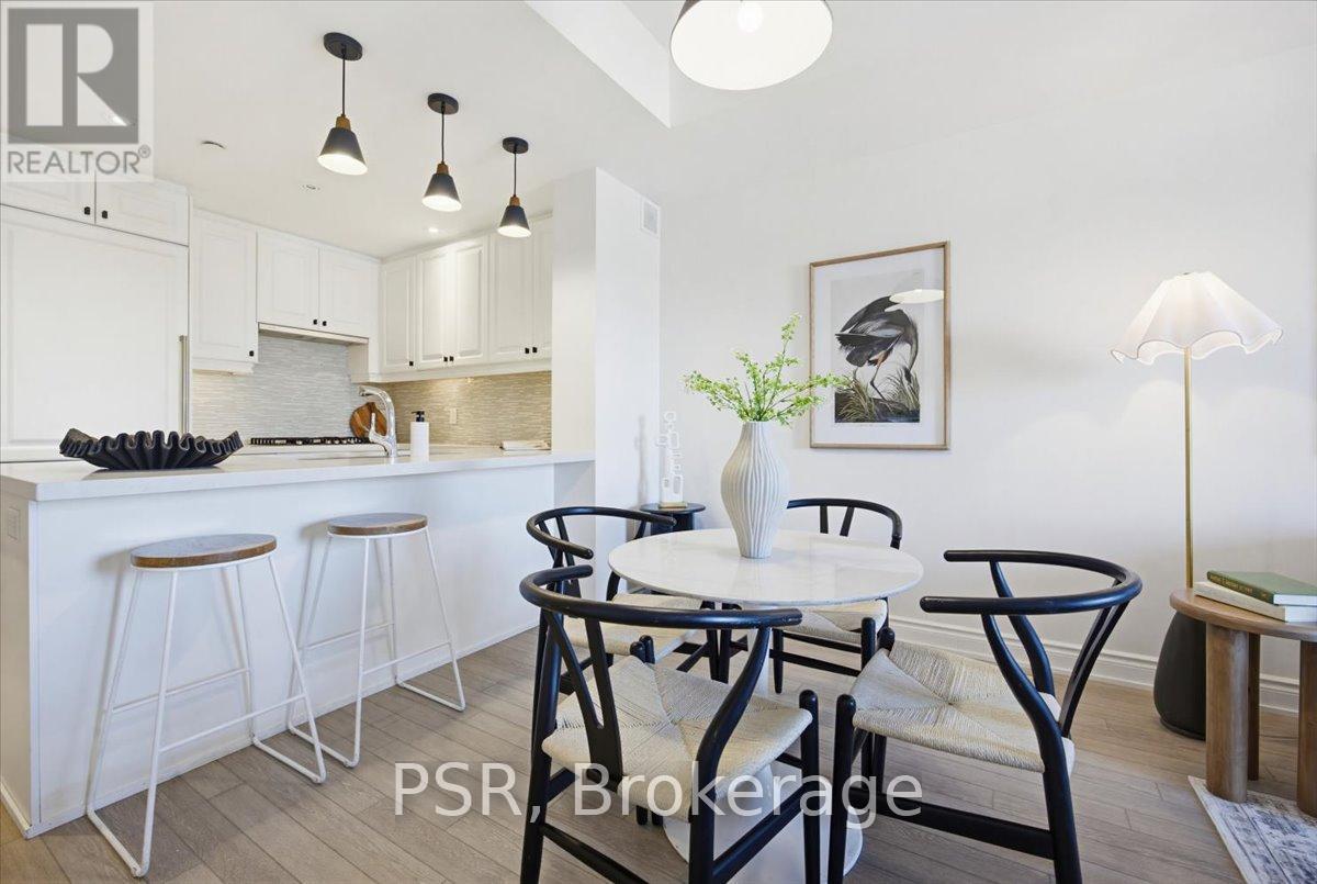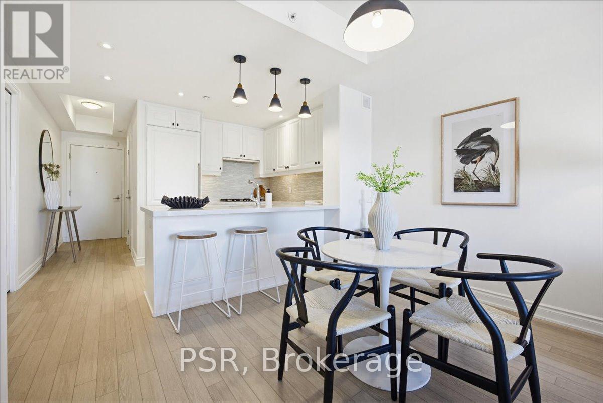 Welcome to Bluwater - Lakeside Living, Elevated. Set within one of the west GTA's most coveted lakefront communities, this rarely available 1+den, 1.5-bath suite offers approximately 785 sq. ft. of thoughtfully designed interior space paired with a private balcony and tranquil northwest exposure. The layout is exceptionally well considered, balancing openness with flexibility. The enclosed den functions beautifully as a home office, guest space, or cozy media room, while the open-concept living and dining area is bathed in natural light and flows seamlessly outdoors-an ideal setting for sunset views and evening relaxation. The kitchen is both elegant and functional, featuring integrated appliances, European-style cabinetry, quartz countertops, a gas cooktop, and a breakfast bar for casual dining and entertaining. A discreet powder room with full-size stacked laundry adds everyday convenience without compromising the aesthetic. The primary bedroom is a calm and inviting retreat, highlighted by a charming bay window, walk-in closet, and four-piece ensuite. Modern laminate flooring, custom window coverings, and timeless finishes create a warm, refined atmosphere throughout. Life at Bluwater extends well beyond your front door. Residents enjoy resort-inspired amenities including private gardens, an outdoor lounge with fireplace and BBQs, a spectacular lap pool with sundeck, spa and sauna, fitness centre, yoga and meditation room, library lounge, elegant party room, and guest suites for visitors. The true luxury? Direct gated access to Lake Ontario, where waterfront trails, parks, and a sandy beach are just steps away. Why escape to the cottage when you can enjoy year-round lakeside living-right at home. (id:4555)