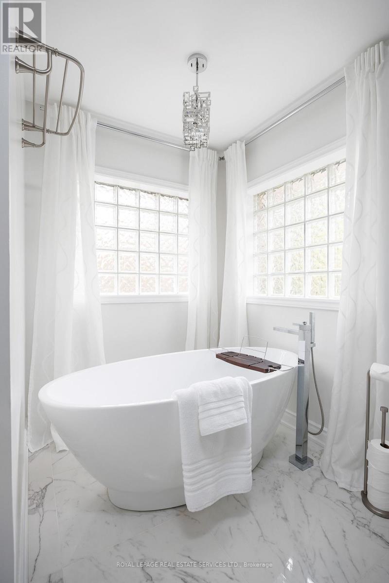 Experience the pinnacle of refined living in one of West Oak Trails most sought-after enclaves of executive homes blending upscale comfort with the tranquillity of nature. Embraced by the lush woodlands of the 16 Mile Creek ravine & within walking distance to the Glen Abbey Golf Club, highly-ranked schools, neighbourhood parks & just minutes from the Oakville Hospital, shopping, restaurants & highways, making the perfect balance of serenity & convenience. Curb appeal abounds with mature, professional landscaping, and an expansive interlocking stone driveway leading to a rarely offered 3-car garage with inside entry. The sun-soaked backyard, perfect for outdoor entertaining, features a brand-new stone patio (2024) & provides a serene retreat. Step inside this beautifully updated 4+2 bedroom, 4.5-bathroom home, where timeless elegance meets modern design. Highlights include hardwood flooring, 9 main floor ceilings, & a stunning Scarlet OHara staircase that sets the tone for the entire home. The formal living room, with its soaring cathedral ceiling, flows effortlessly into a sophisticated dining area with classic crown mouldingsideal for hosting elegant dinner parties. The stunning renovated kitchen (2022) boasts sleek modern cabinetry, quartz countertops, premium stainless steel appliances, & a walkout to the private patio. The spacious family room offers a cozy haven to relax, while the dedicated home office makes working remotely a breeze. Upstairs, the luxurious primary suite is a private sanctuary featuring a spa-inspired 5-piece ensuite complete with a freestanding soaker tub & a frameless glass shower. The professionally finished basement adds incredible versatility, featuring a generous recreation room with a gas fireplace, a vast open-concept area ideal for configuring to suit your lifestyle, a fifth bedroom with access to a 3-piece bath, & a home gym or potential sixth bedroom. (id:4555)