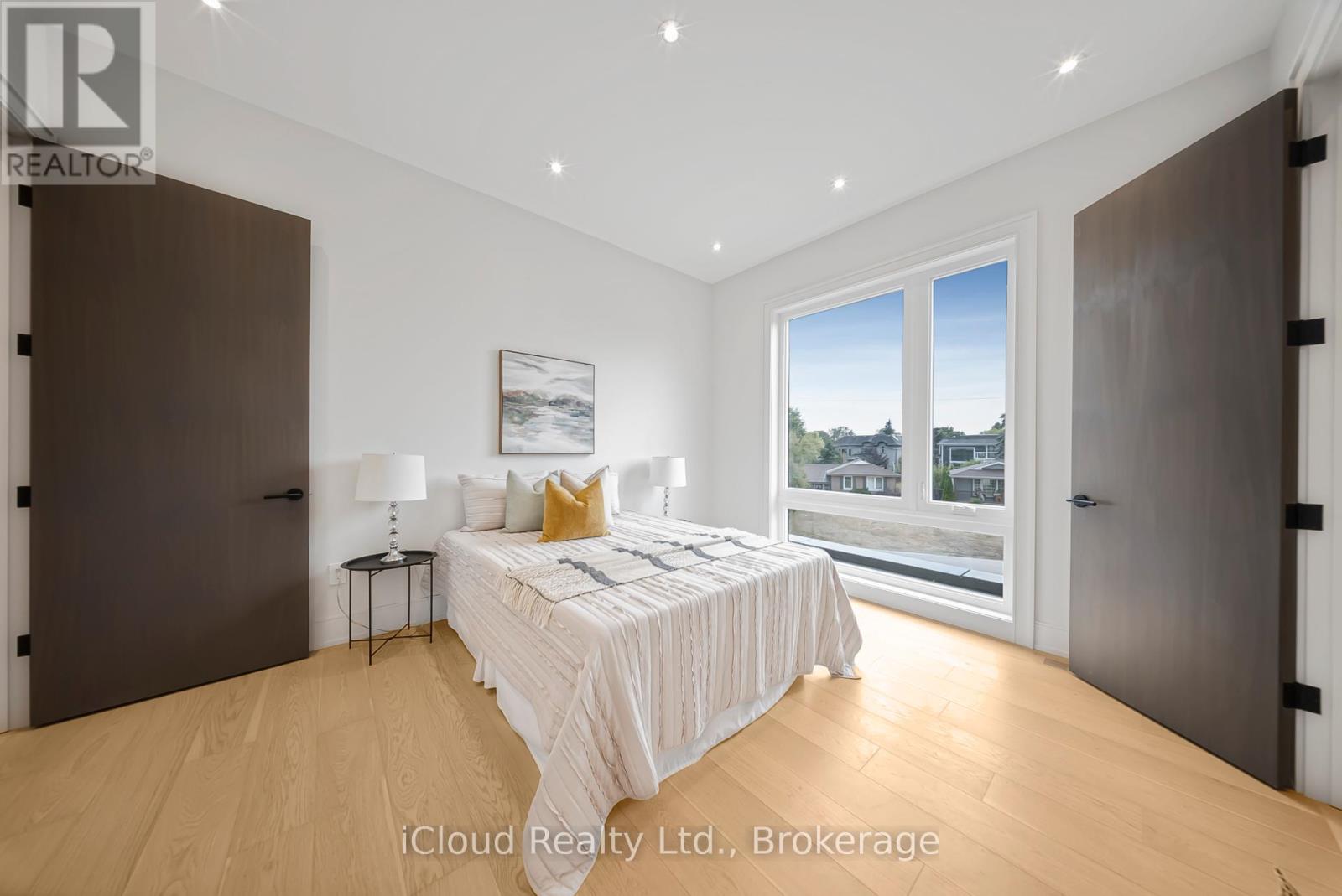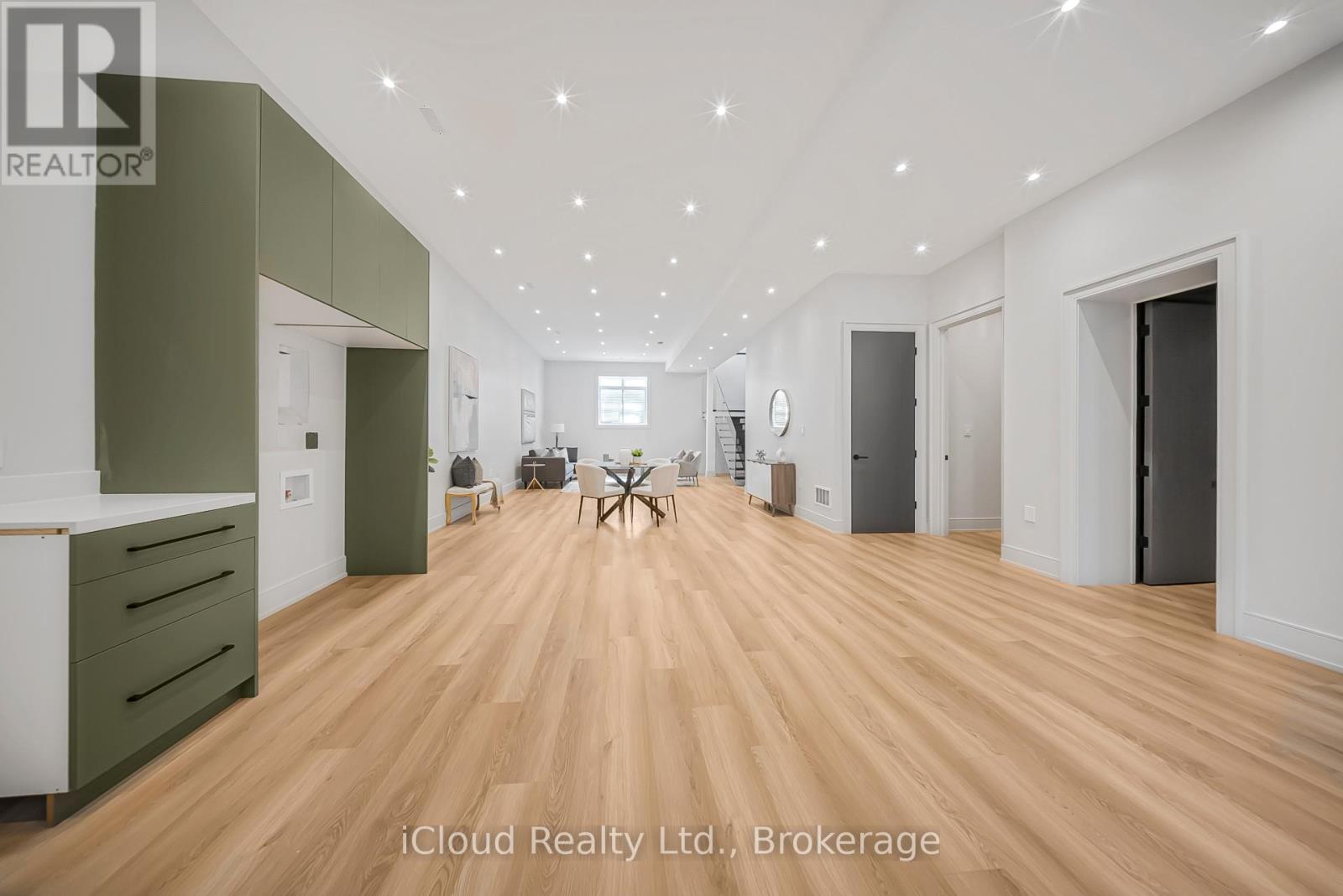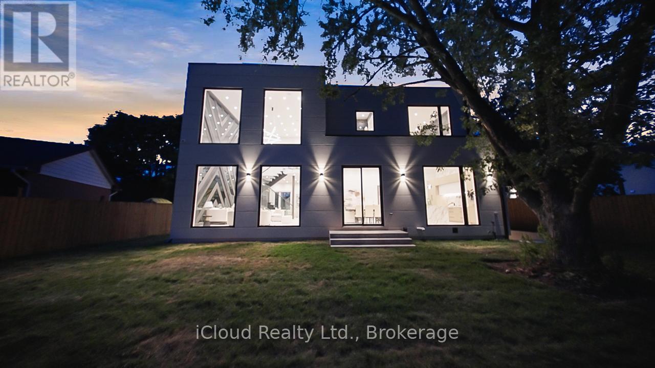 This newly built modern custom home offers over 5000 sqft. of lavish living space. Whether you're commuting, enjoying the outdoors, or raising a family, this location on a quiet street of Oakville offers the perfect balance of convenience and lifestyle. This elite modern home is design and built by Zarina Construction. As you step through the oversized front door, you're welcomed by a dramatic 23-ft foyer with heated Italian tile flooring that flows through the main level. The main level features a private home office, an elegant living room with a stunning marble, wood, and mirror accent wall, and a breathtaking open-to-above family room. Anchored by a custom diamond-pattern feature wall and a double-sided Dimplex fireplace, large windows, this space is the heart of the home -open, bright, and welcoming.The gourmet kitchen is a chefs dream, offering a spacious island, custom cabinetry, and built-in Miele appliances. A separate spice kitchen keeps bold flavors contained and the main kitchen spotless. The layout flows seamlessly into a formal dining area with a walkout to the fully fenced backyard.Upstairs, you will find four generous bedrooms, each with its own ensuite bathroom featuring custom floating vanities, integrated sinks, heated tile flooring, and calming finishes. The primary suite is a luxurious retreat with a custom walk-in closet and a spa-like 5-piece ensuite with a freestanding tub, curbless shower, and dual vanities. A laundry room on this floor adds convenience.The finished basement offers 11.5-ft ceilings, a bright open rec area, a second kitchen, two bedrooms with a shared bath, and for the ultimate movie night experience, there's a dedicated theatre room fully equipped with 4 dedicated speakers for a true cinematic experience. This home also includes 16 built-in speakers throughout. With a basement walkout and large windows bringing in natural light. This home is a reflection of modern luxury tailored to your lifestyle. (id:4555)