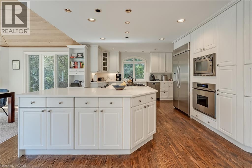 Situated on one of Oakvilleās most sought-after streets, this stately home sits on a premium 91-ft x 208-ft lot with western exposure. This fantastic 5,100+ sq ft home is surrounded by substantial custom-built homes and is within walking distance to both downtown Oakville and the lake. With 4+2 bedroom and 5.1 bathrooms, this family home features a wonderful floor plan, and generous room sizes throughout. On the main floor of the home, a large kitchen with an eat-in breakfast area features a unique cathedral ceiling and walkout to rear patio. The bright family room overlooks the rear yard and provides access to the patio. The separate formal living and dining rooms are both well-appointed and ideal for entertaining. The primary suite completes the main level and is not to be missed, boasting a vaulted ceiling, fireplace, walkout to patio, and large ensuite and walk-in closet. Upstairs, you will find three generously sized bedrooms all with ensuite access. Also located on this level, is a unique den space that can be used as a home office, playroom, library, or additional bedroom for a large family. The lower-level includes a large recreation room and home gym with a walk-up to the rear yard. Ideally situated adjacent to the rec room and gym space, is a sauna and three-piece bathroom, perfect for after your workout. There are two additional bedrooms both with ensuite access on this level. This unique family home offers a very private rear yard, great patios for entertaining, a wonderful in-ground pool and offers lots of room for kids to run and play. Set on nearly a 20,000 sq ft lot, in a premium Southeast Oakville location, this home is a great long term investment opportunity. (id:4555)