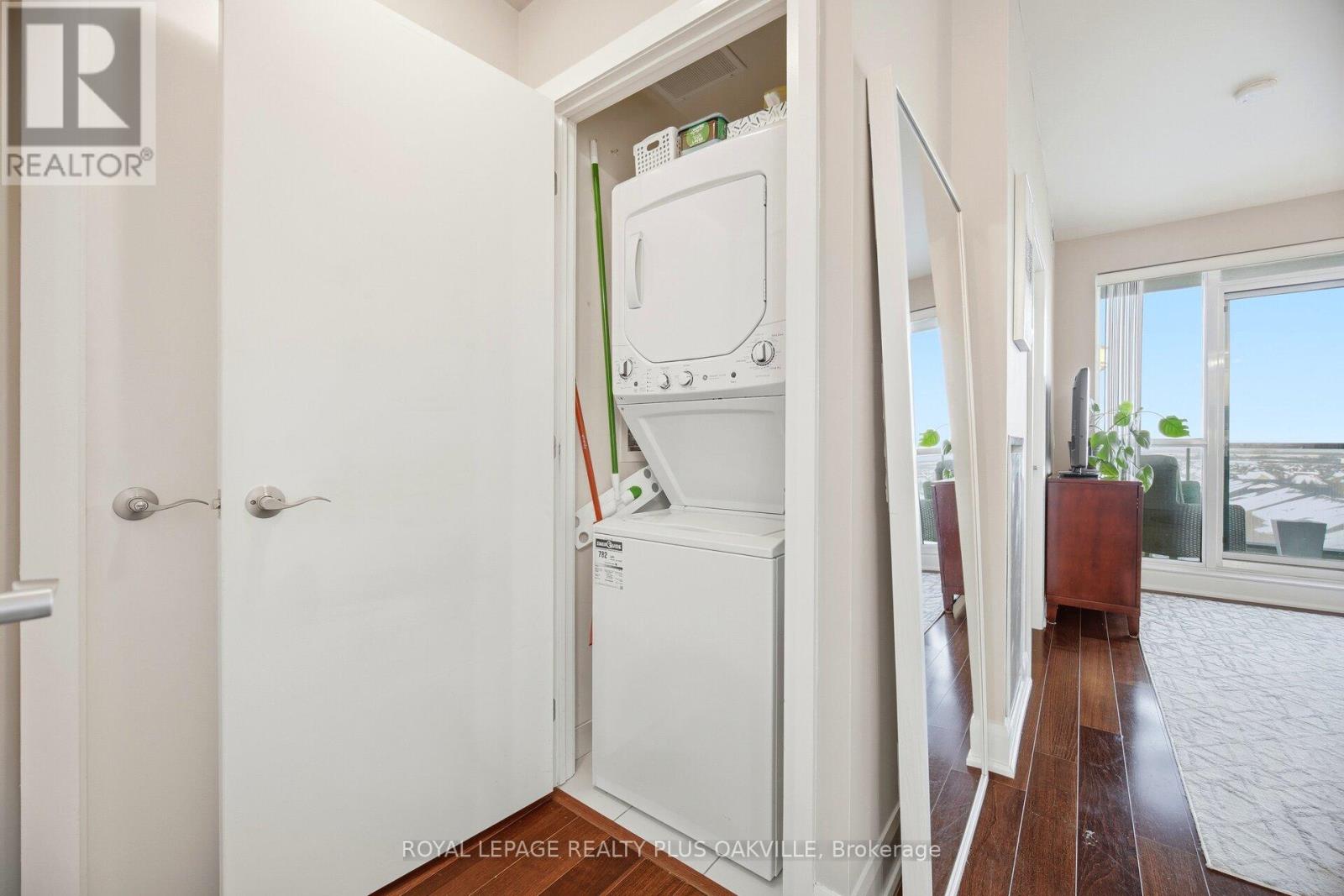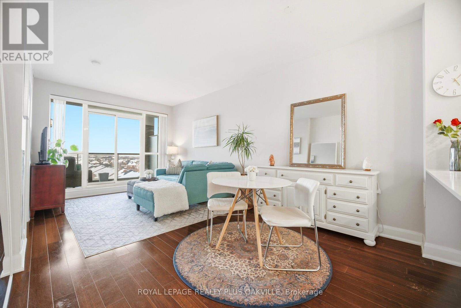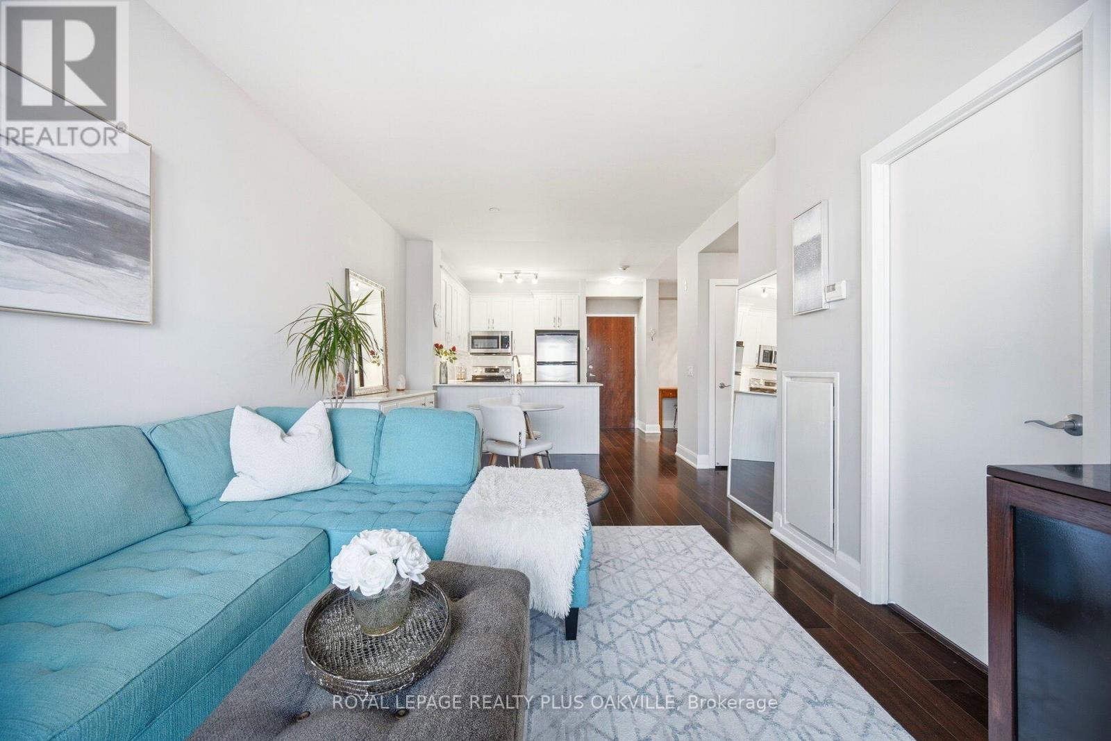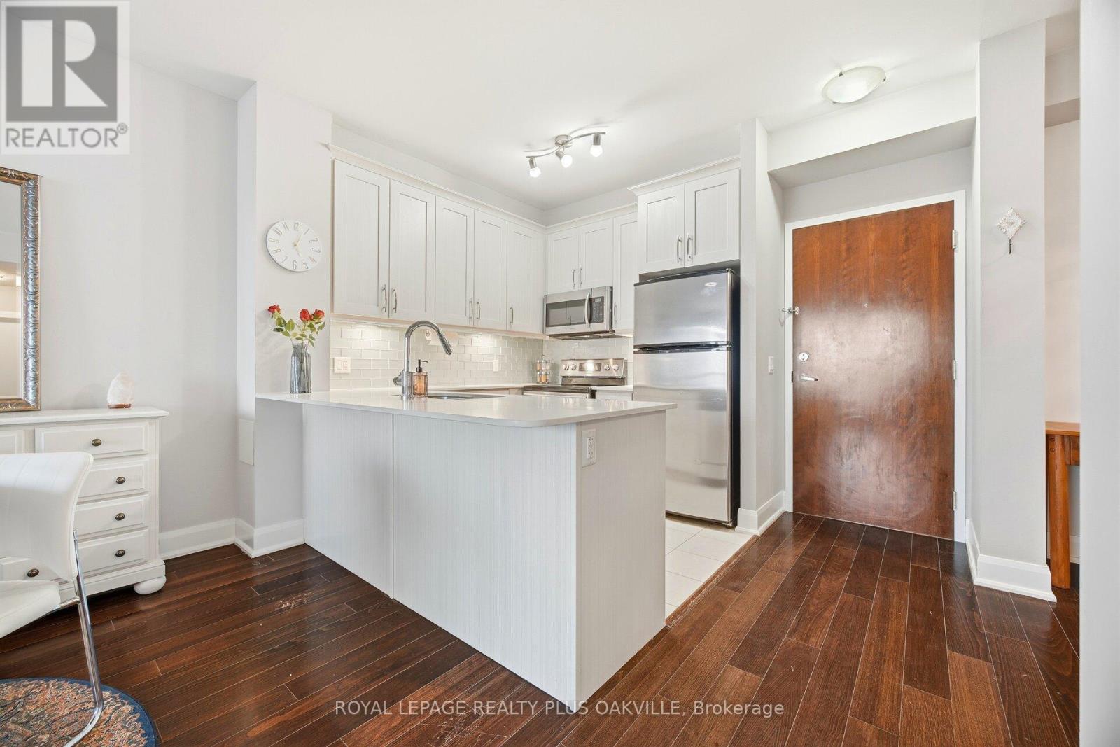 Stunning 1+1 bedroom condo in the Emporium with unobstructed East sunrise views! Enjoy city skyline and lake views! Fully upgraded unit with 9 foot smooth ceilings, hardwood floors & open concept layout! Kitchen features Quartz counters, porcelain floors, recessed lighting, glass backsplash, stainless steel appliances & a breakfast bar! Spacious den! Tastefully decorated! Bedroom has large wall to wall closet with built-in shelving! Amazing amenities include indoor pool, sauna/steam room, gym, party/meeting room, movie theatre, games room, outdoor children's play area and more! Concierge. 24 Hour Security. Walk to Starbucks, Shoppers Drug Mart, TD Bank, salon, spa & more! Quick access to Highways 403, 407 and QEW! 1 underground parking. 1 locker. (id:4555)