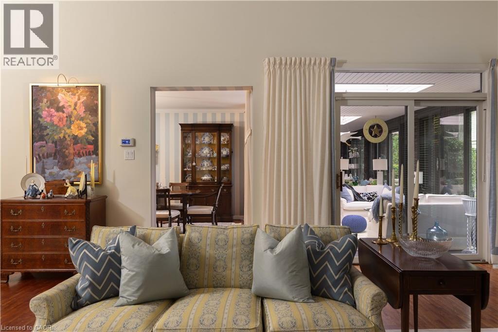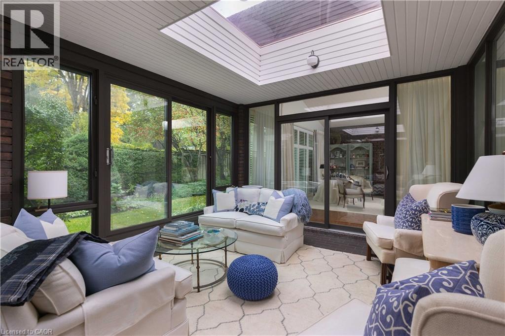 Incredibly well built contemporary home with the finest construction and materials and an interior that boasts a timeless and airy feeling.The entrance welcomes you to the foyer featuring a striking accent wall,setting the tone for design elements that unfold throughout this 3,128 sq ft sanctuary.Natural light becomes the home's greatest asset,flooding every space through expansive floor-to-ceiling windows that create breathtaking sight lines and seamless indoor-outdoor connections.The LR showcases vaulted ceilings,gas f/p with a distinctive brick feature wall that serves as both warmth & an artistic focal point.A separate DR provides versatile entertaining.The kitchen features integrated b/i appliances, skylight,breakfast nook,& w/i pantry for storage.The adjoining FR offers a casual place to relax by the cozy wood burning f/p & w/o to the cozy 4-season Garden Room.The Garden Room emerges as pure enchantment,bathed in natural radiance from its wall of windows overlooking patio spaces,enhanced by 3 skylights that create an almost ethereal atmosphere thru/o changing seasons.Tucked privately away on the east side of the home,the principal bedroom offers,a cathedral tongue&groove willow ceiling, w/i closet and 4 pc ensuite plus yard access through the walkout patio doors. 2 addt'l bdrms feature floor-to-ceiling windows & double closets for optimal storage.Below, the LL maximizes functionality w/ a finished rec room,oversized laundry & craft area,3 pc bath, workshop,w/i cedar closet & addt'l storage areas for all your organizational needs.Exterior craftsmanship shines through with cedar roof,siding & soffits.The double garage features a carport area w/parking for 12 vehicles, granite cobblestone drive hails from streets in Toronto. A very private & special home for special buyers looking for an easy living single story home who aren't looking for cookie cutter. LUXURY CERTIFIED (id:4555)