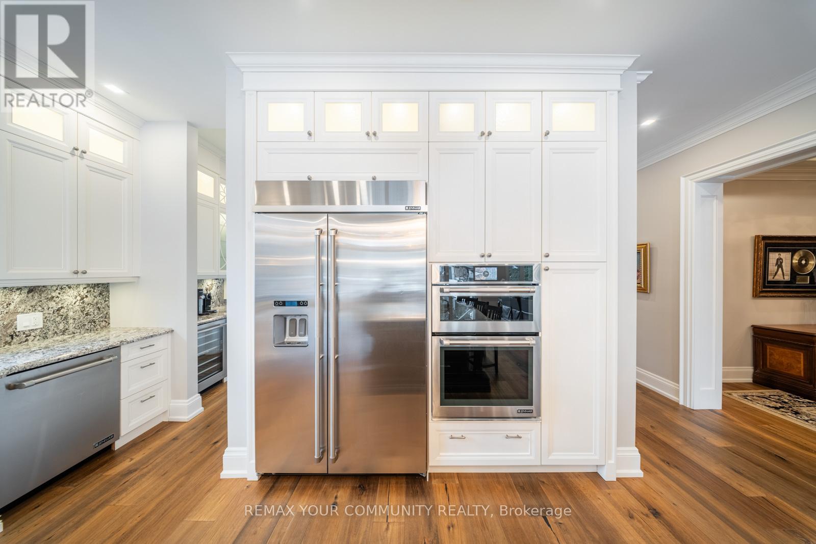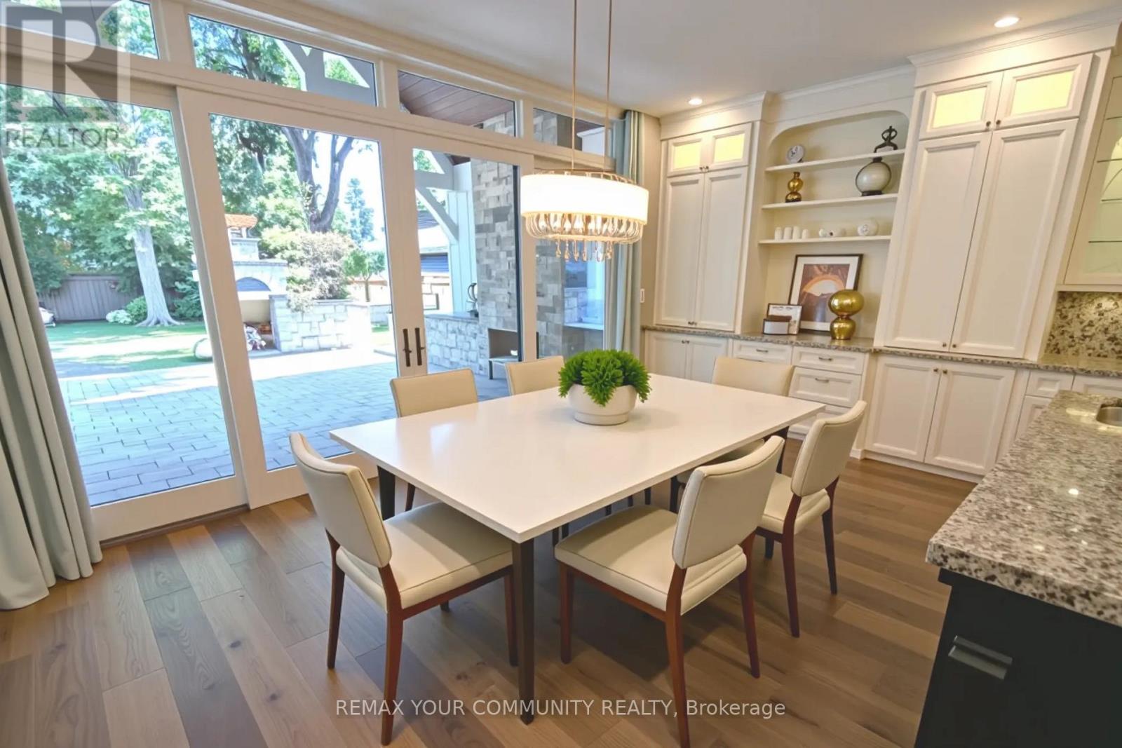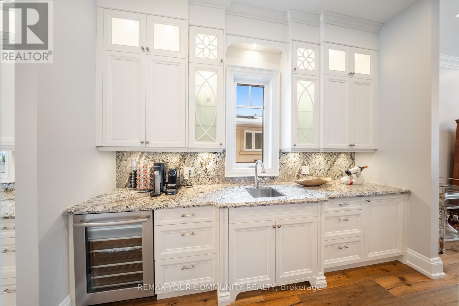 Welcome to 1551 Warland Rd, a stunning custom-built bungaloft in the heart of highly sought-after South Oakville. Nestled just a 5-minute walk from Coronation Park and the serene shores of Lake Ontario, this exceptional residence offers over 5,700 square feet of meticulously finished living space, blending luxury, comfort, and modern convenience. Step inside to discover an inviting main floor where primary rooms exude elegance with coffered ceilings, expansive picture windows flooding the space with natural light, and rich hardwood flooring. The gourmet kitchen is a chefs dream, featuring top-of-the-line JennAir appliances, including dual dishwashers, a gas stove with a custom hoodfan, side-by-side fridge, built-in oven, and microwave. A butlers pantry and servery seamlessly connect the kitchen to the dining room, perfect for effortless entertaining. The bathrooms elevate luxury with quartz countertops, undermount sinks, sleek glass shower enclosures, and heated flooring for year-round comfort. The primary suite, conveniently located on the main level, offers a tranquil retreat with sophisticated finishes and ample space. Downstairs, the lower level impresses with a custom wet bar and wine room, ideal for hosting guests, alongside a dedicated exercise room for your wellness needs. Every detail has been thoughtfully designed to enhance your lifestyle. Step outside to the backyard oasis, where an outdoor patio steals the show with a custom pizza oven, built-in barbecue, and a covered area featuring a cozy fireplace perfect for al fresco dining or relaxing evenings under the stars. Located in one of Oakville's most desirable neighborhoods, this bungaloft combines timeless craftsmanship with modern amenities, all just steps from parks, lakefront trails, and the vibrant South Oakville community. (id:4555)