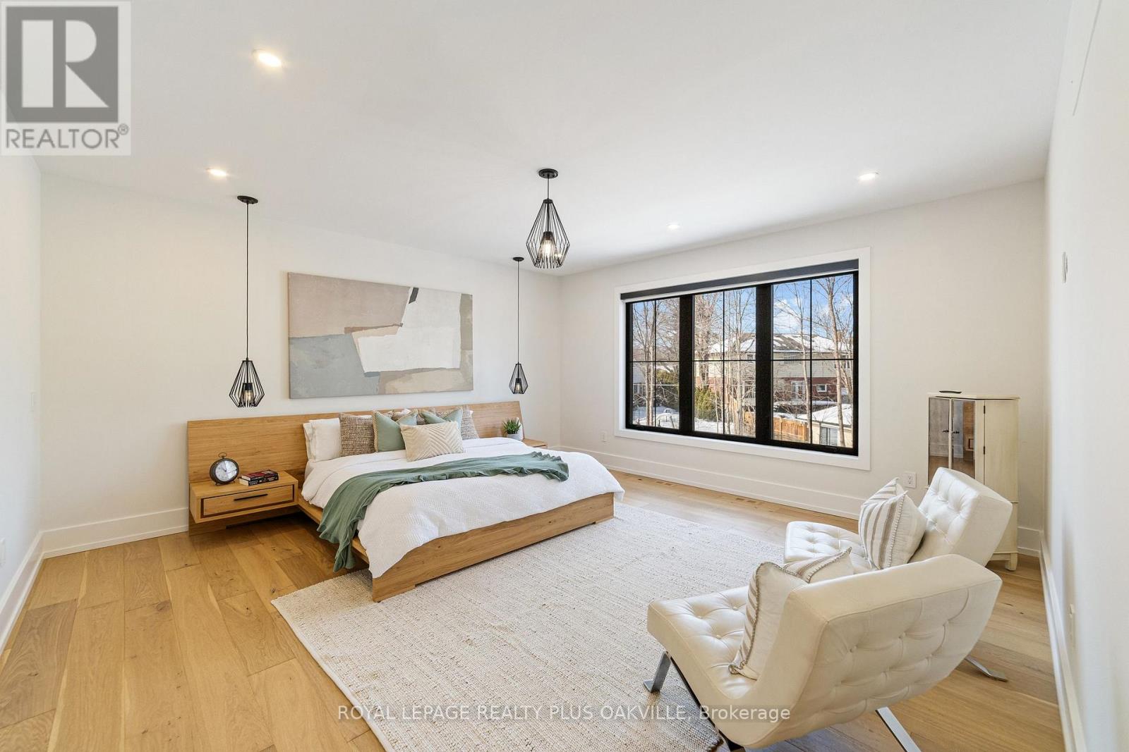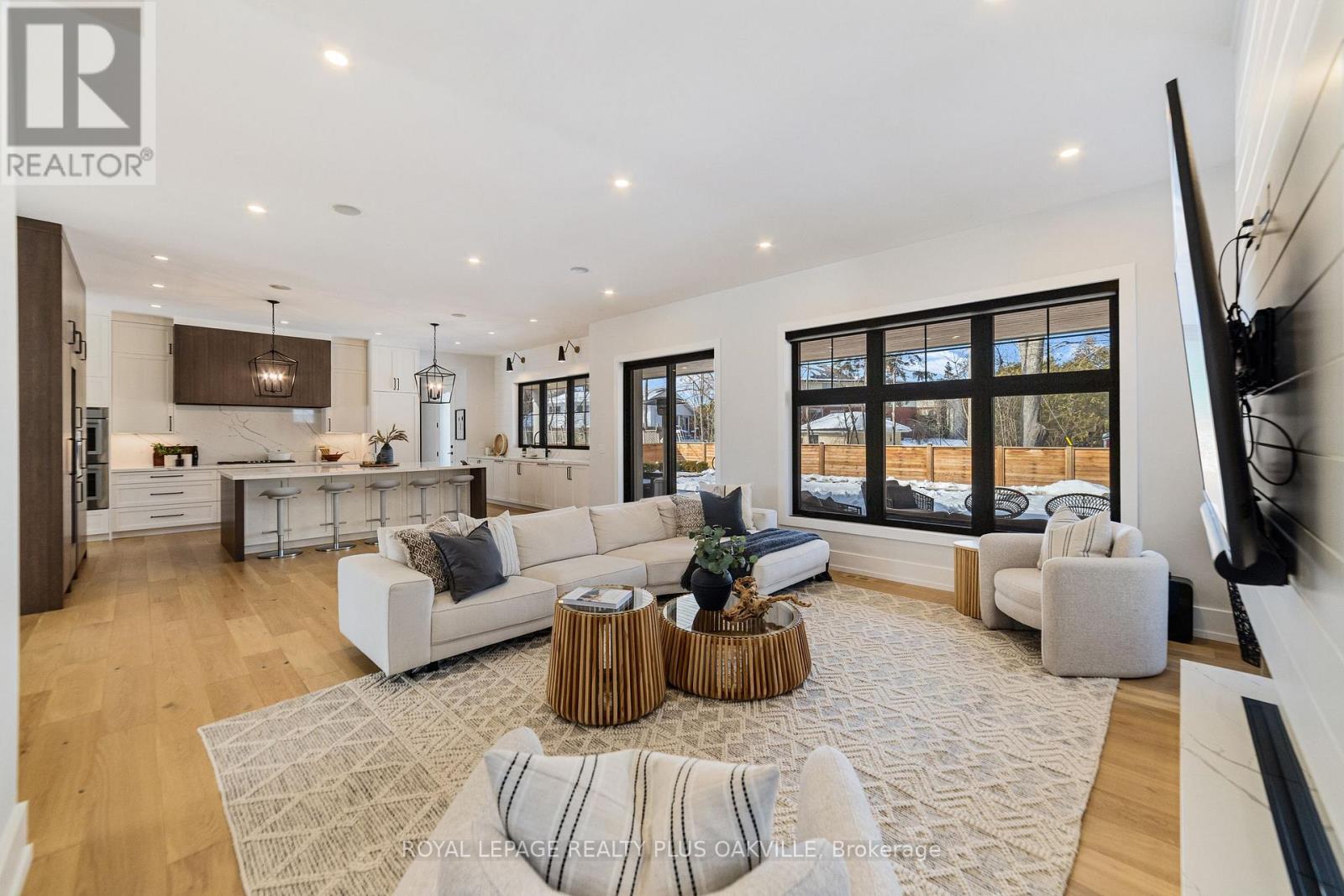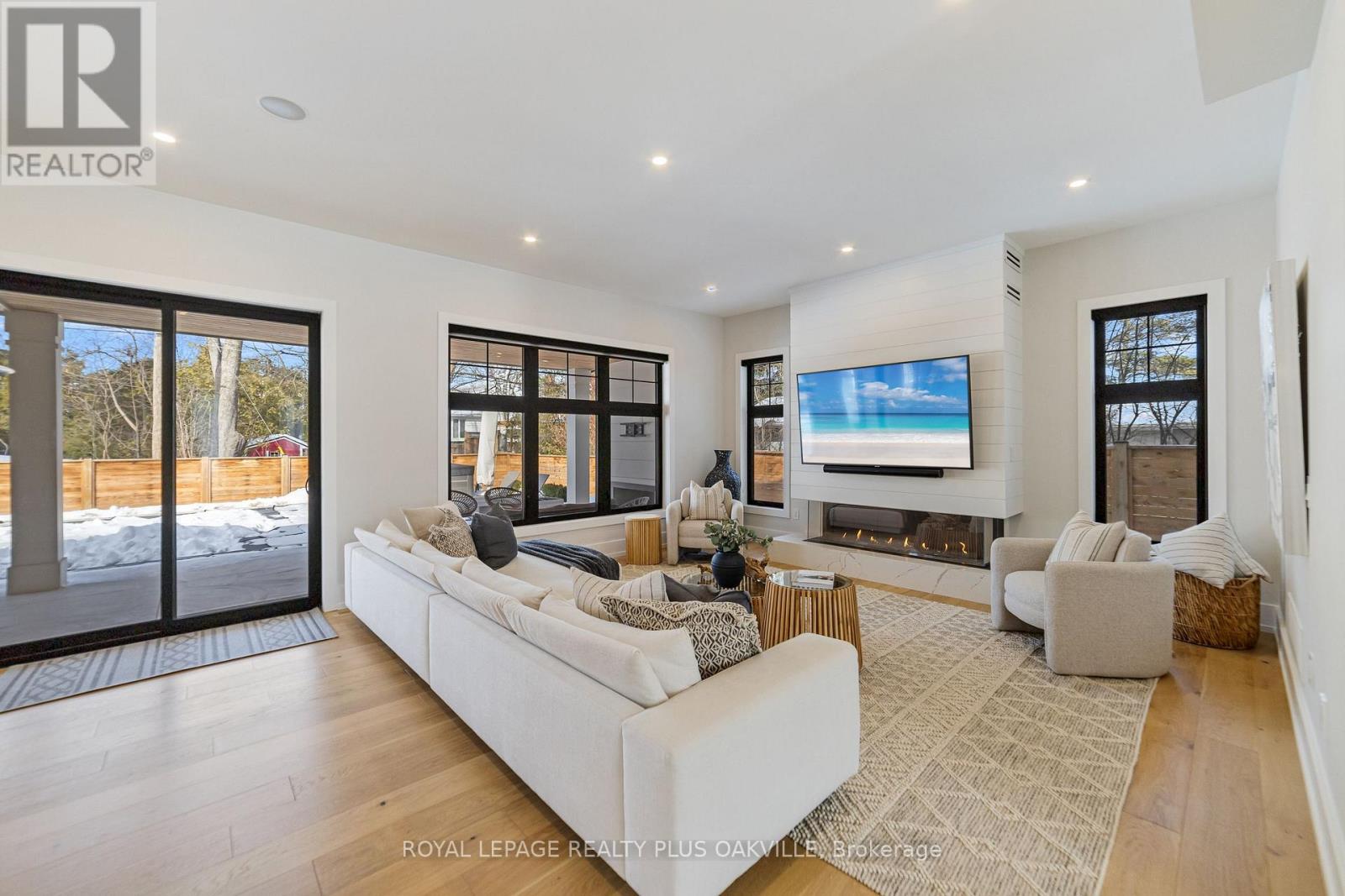 Stunning custom Modern Farmhouse (2022/2023) set on an expansive 85 x 133 ft lot on a quiet, family-friendly street just steps to the lake, Bronte Harbour, and Coronation Park. This exceptional residence blends sophisticated design with premium finishes and state-of-the-art functionality throughout. The open-concept main floor showcases soaring 10 ft ceilings, integrated ceiling speakers, designer farmhouse lighting, and automatic shutters. Sun-filled dining room with accent wall flows seamlessly into a showpiece chef's kitchen featuring Thermador appliances, dual wall ovens, 36" cooktop, integrated fridge, built-in coffee maker, dishwasher, and a Gaganeau wine fridge with 150-bottle capacity. The oversized island with custom storage and microwave drawer is complemented by a fully outfitted walk-in pantry with bespoke cabinetry and full-size stand-alone freezer. The family room is anchored by a dramatic three-sided 60" Napoleon glass fireplace with custom millwork. A private office, two elegant powder rooms, & a custom mudroom with backyard access complete the level. Upstairs offers 9 ft ceilings, skylit hallways, and four spacious bedrooms with walk-in closets and automatic shutters. The luxurious primary suite features custom barn doors, an expansive 12' x 11' dressing room, and a spa-inspired 5-pc ensuite. Two additional bathrooms, including a Jack & Jill, and a well-appointed laundry room provide exceptional convenience. The finished lower level adds approx. 1,500 sq ft of finished space with a gym, 5th bedroom, full bath, and recreation space with built-ins. Advanced HVAC, smart home integration, and ample storage complete the space. The private backyard oasis features a full-width covered living area with gas fireplace and outdoor kitchen with gas BBQ, heated saltwater pool with built-in bench, hot tub, cabana, professional landscaping, lighting, and irrigation. A heated, professionally finished double garage with Tesla charger completes this remarkable home (id:4555)