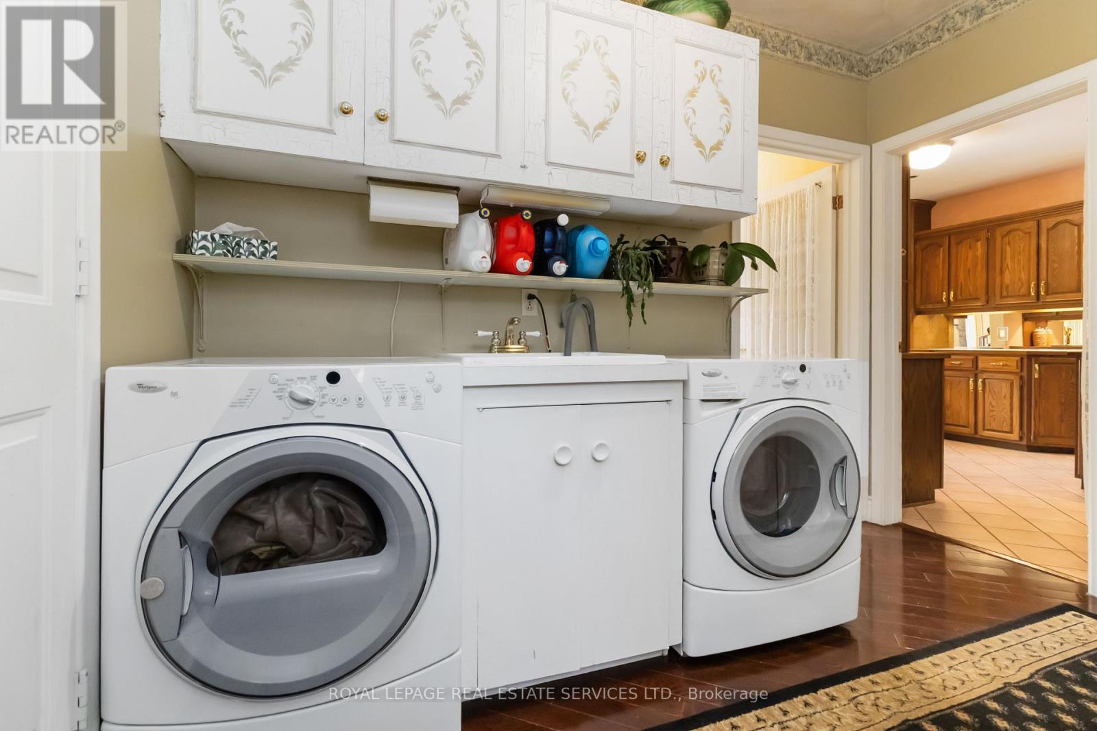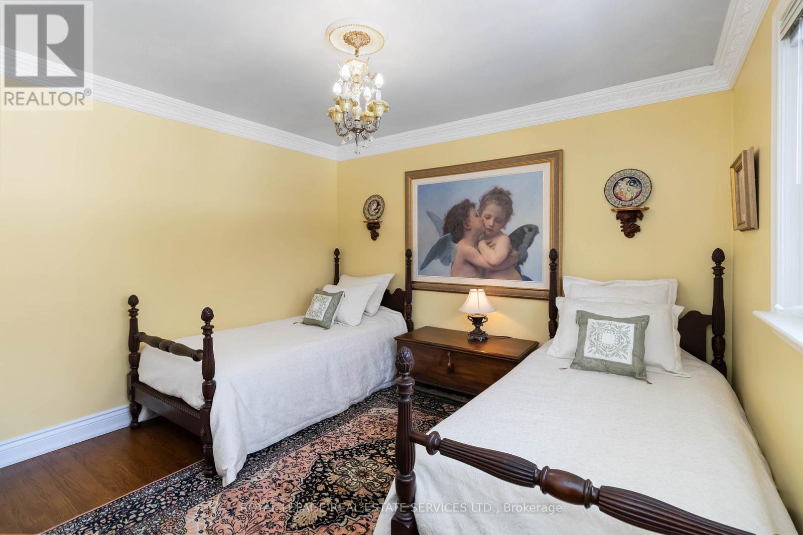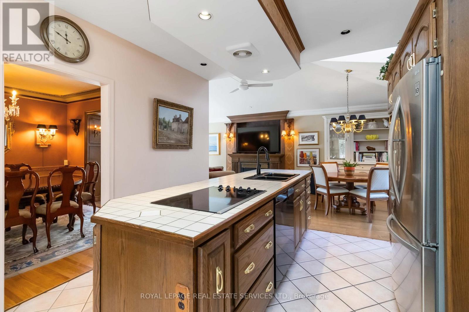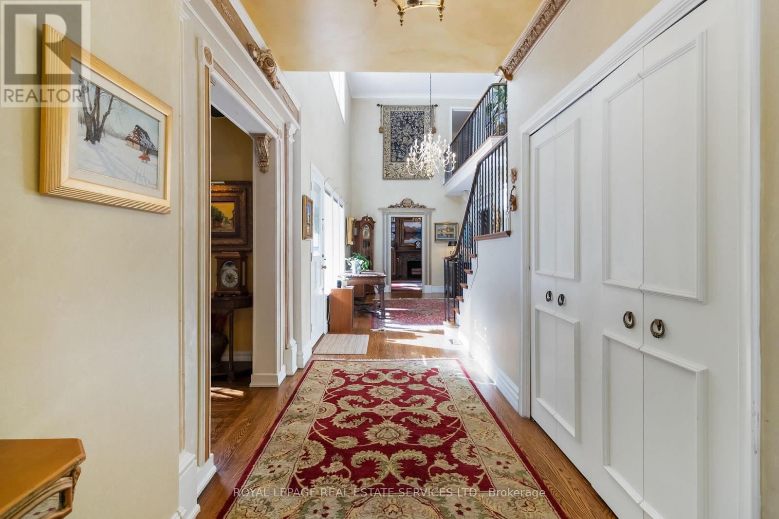 Welcome to 150 Cairncroft, a rare opportunity to own a distinctive property in one of Oakville's most coveted neighbourhoods. Nestled on a stunning 0.4 acre (17,416 sq ft) corner lot, this charming 3,052 sq ft residence is enveloped by mature trees and lush landscaping, offering the perfect blend of privacy and prestige. Set just steps from the lake and picturesque Gairloch Gardens, the location is unparalleled for those seeking an upscale lifestyle surrounded by nature, yet within easy reach of top-rated schools, downtown Oakville, major commuter routes & transit. Whether you're looking to move right in, renovate, or build your custom dream home (RL1-0 zoning), this property delivers exceptional potential. The existing home is rich in character and warmth with its Mediterranean-inspired façade and design, offering 4 bedrooms + den, and 2.5 bathrooms. The living room showcases exposed structural beams set amongst 1 of this home's 4 cozy fireplaces, lending a rustic allure and architectural interest. While the soaring two-storey foyer also offers captivating views of the inviting yet secluded courtyard-style patio - ideal for entertaining or relaxing under the canopy of greenery. Properties of this caliber and location are exceedingly rare. Don't miss your chance to secure a premium foothold in a neighbourhood known for luxury homes, timeless appeal, and rare public lakefront access only steps away! (id:4555)