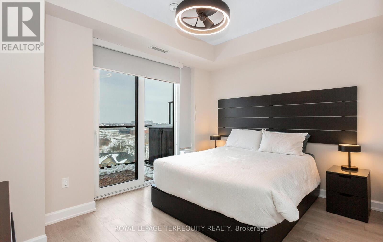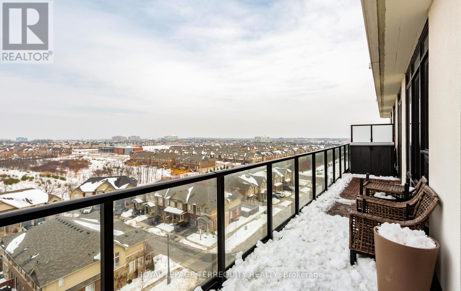 Welcome to the Upper West Side Condominiums in the heart of Oakville. Rarely available, one of only 3 special suites in the building, corner end unit with no other units above; featuring large wrap around windows providing plenty of natural sunlight with east exposure and unobstructed views on the quiet side of the building. 760 Sq. Ft. + private balcony + 2 parking spaces + storage locker. Super spacious 1 bedroom + den! Larger than some 2 bedroom units. Den can be closed off and used as a separate office or bedroom. This suite boasts high ceilings, upgraded stainless steel appliances, extended kitchen island, quartz countertops, glass shower doors, upgraded hardware/finishes throughout, laminate floors throughout, modern finishes, keyless entry and smart living eco-friendly geothermal heating and cooling system. The buildings high tech amenities include: virtual concierge, smart lock connect system, secure automated parcel management solution, meeting room/co-working space/lounge, fitness centre, yoga/movement studio, upscale party room, landscaped rooftop barbecue terrace, pet spa and visitor parking. Conveniently located; Close to all amenities including Oakville Trafalgar Memorial Hospital, Sheridan College, Iroquois Ridge Community Centre, grocery stores, restaurants, highways 407/401/403, Hwy 5, public transportation and more. This suite has always been occupied by the orginal owner. Immaculate, freshly painted, like brand new! Move-in ready! (id:4555)