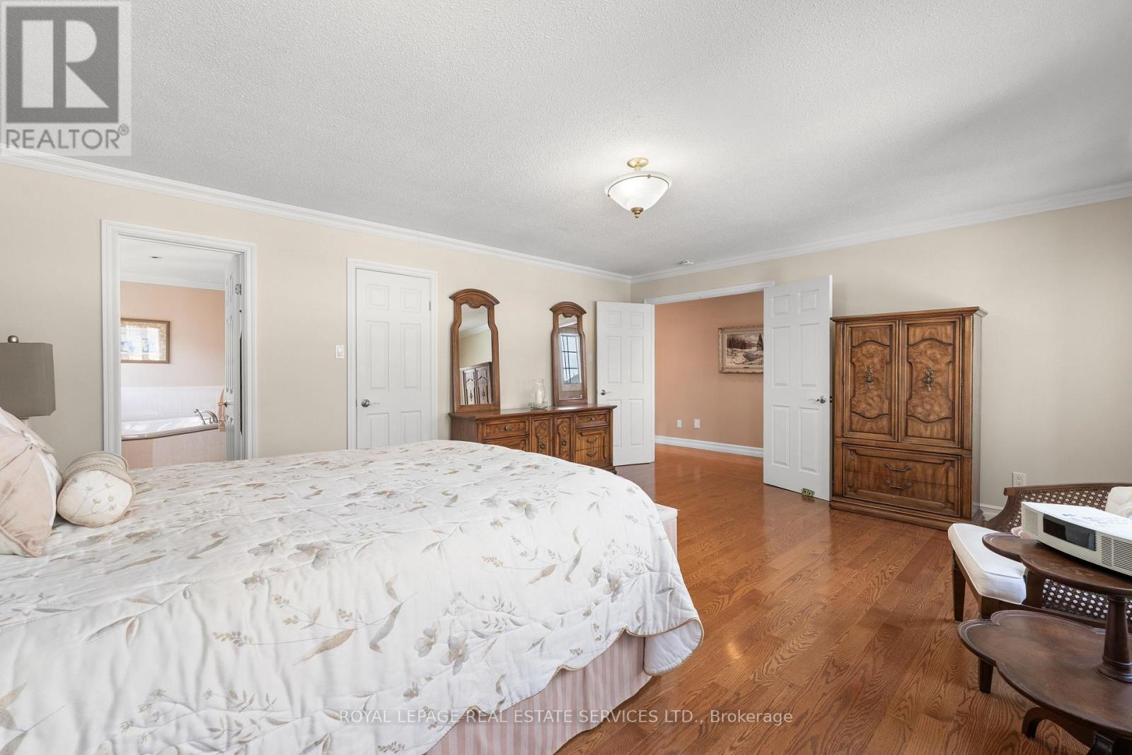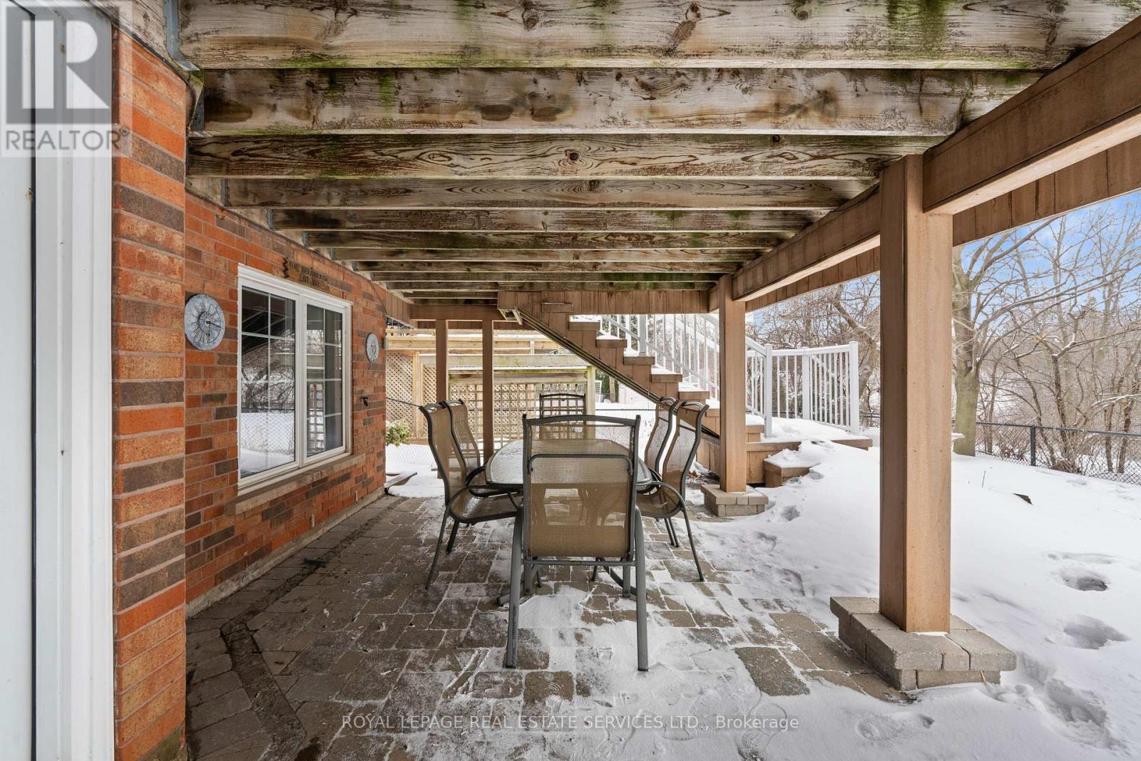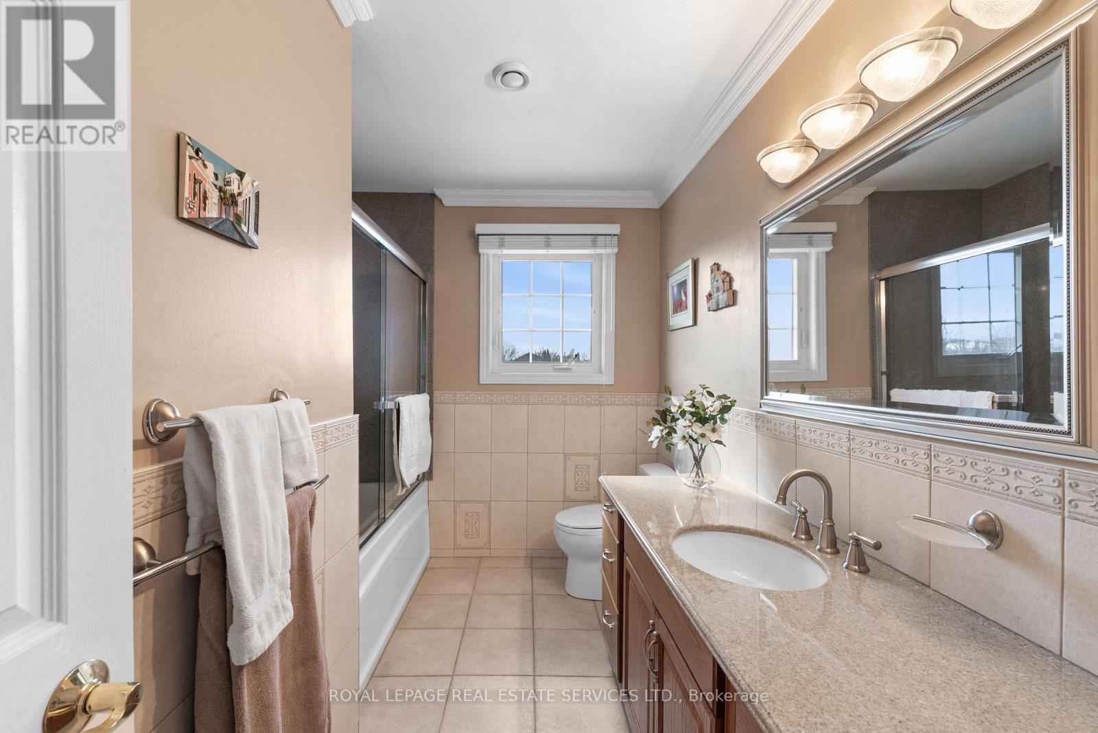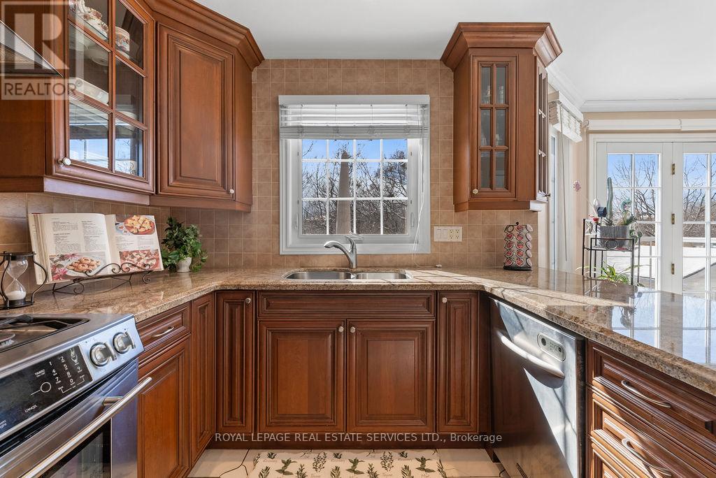 Welcome to Creekside Dr in the prestigious Wedgewood Creek community. Situated on a premium ravine lot beside a catwalk, this beautifully renovated detached home offers over 4,000 sqft of finished living space. Enjoy breathtaking unobstructed views of Valleybrook Park from your living room. A walk-out basement provides seamless access to the backyard for exceptional indoor-outdoor living. The bright main level has a welcoming foyer with double closet, formal living and dining rooms with bay windows and new hardwood flooring. A spacious eat-in kitchen features granite countertops, a peninsula island, custom cabinetry, and stainless steel appliances. Off the kitchen, a generous balcony with composite decking (2001) overlooks the professionally landscaped yard with interlock walkway and back garden - a perfect space to entertain or enjoy the tranquil ravine setting. Equipped with hydro, the garden shed is ready for projects or outdoor work. The adjoining family room offers a cozy gas fireplace and peaceful backyard views. A private office, convenient laundry room with garage and exterior access and a powder room complete this level. No compromises here - a full two-car garage ensures ample space for vehicles and storage. Upstairs, the large primary retreat comfortably fits a king sized bed and features a walk-in closet. Unwind after a long day in the 5-piece ensuite with an air bath tub, heated towel rack and walk-in shower. Three additional well-sized bedrooms, two with walk-in closets and a full main bath accommodates a family. New hardwood stairs and railings add elegance throughout. The finished walk-out basement with direct patio access to the backyard includes a large rec room with gas fireplace, second kitchen, bedroom, and 3-piece bath-perfect for extended family. Close to parks, trails, schools, shops, restaurants, transit and recreation facilities, this home offers convenience in one of Oakville's most sought-after neighbourhoods. (id:4555)