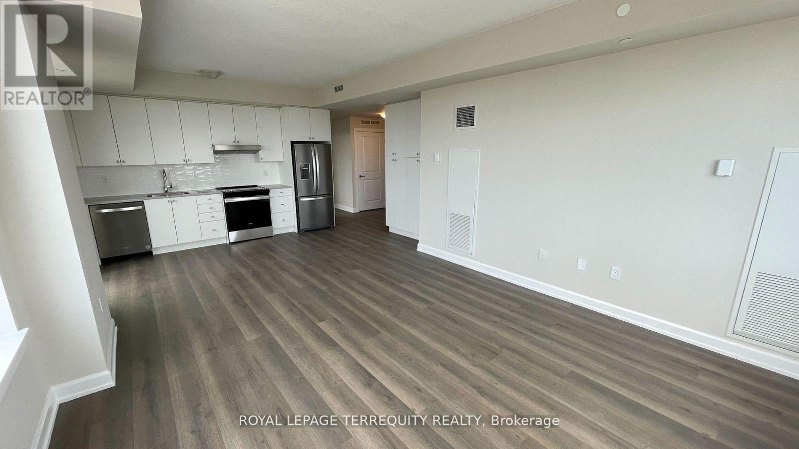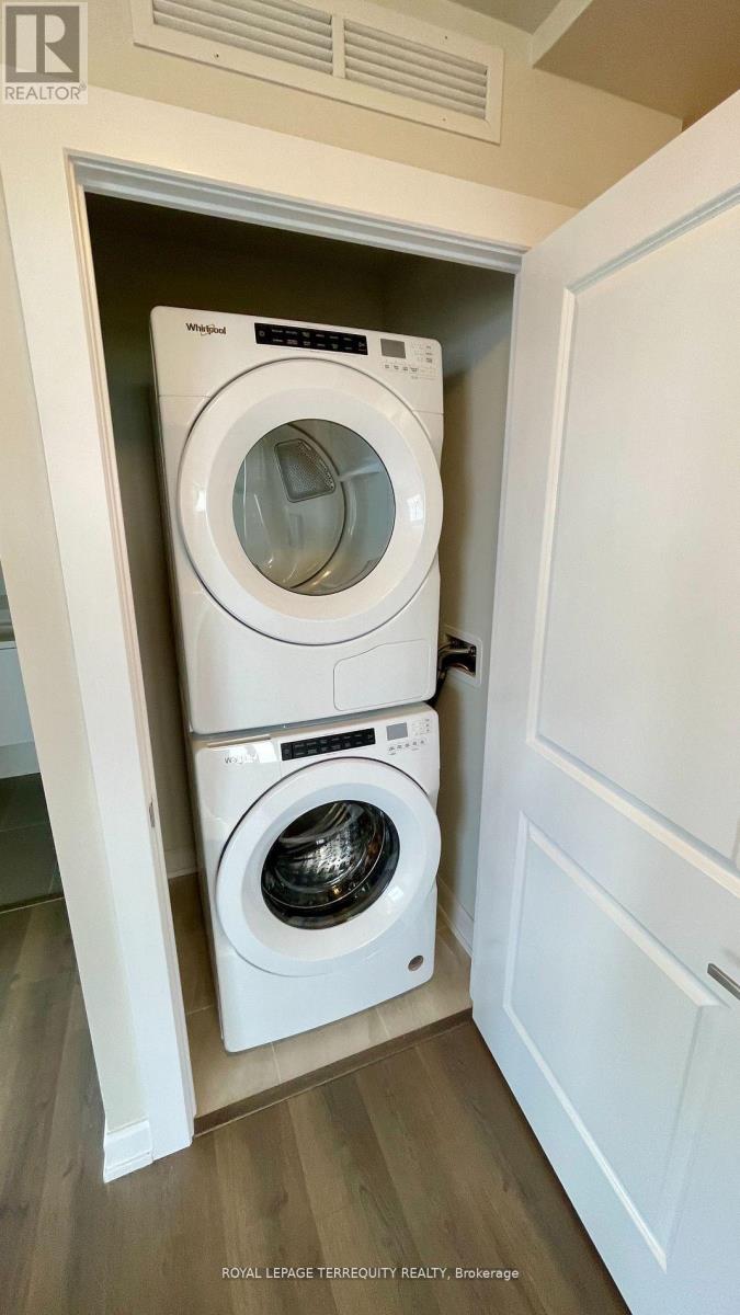 Exceptional Corner Suite at Upper West Side Condos by Branthaven - Joshua Meadows. Step into contemporary elegance with this bright and spacious 960 sq. ft. corner unit, thoughtfully designed for modern living. Located in the highly sought-after Upper West Side Condos, this 2-bedroom, 2-bathroom residence offers a rare combination of functionality, style, and comfort. This open-concept suite features 9-foot ceilings, large South East facing windows that flood the space with natural light, and a private balcony, perfect for relaxing or entertaining. The timeless white kitchen boasts generous cabinetry, stainless steel appliances, and a sleek, modern aesthetic that complements any décor. Full-sized in-suite laundry adds everyday convenience. Equipped with SmartONE home technology, enjoy features such as keyless digital entry, integrated smart locks, and a geothermal heating and cooling system-offering energy efficiency and year-round climate control for peace of mind. Included with the unit: TWO (2) side by side underground parking spaces. One secure storage locker. Residents have access to resort-style amenities, including: Stylish social lounge with an entertainment kitchen, Yoga studio and a fully equipped fitness centre, Impressive 11th-floor chef's kitchen and rooftop terrace with panoramic views. Perfectly situated in the heart of North Oakville, this condo is just steps away from shopping centres, restaurants, grocery stores, parks, and public transit-offering a truly walkable, connected lifestyle in a serene and upscale community. This is an ideal opportunity for discerning buyers seeking a turn-key home that blends convenience, smart design, and elevated urban living. (id:4555)