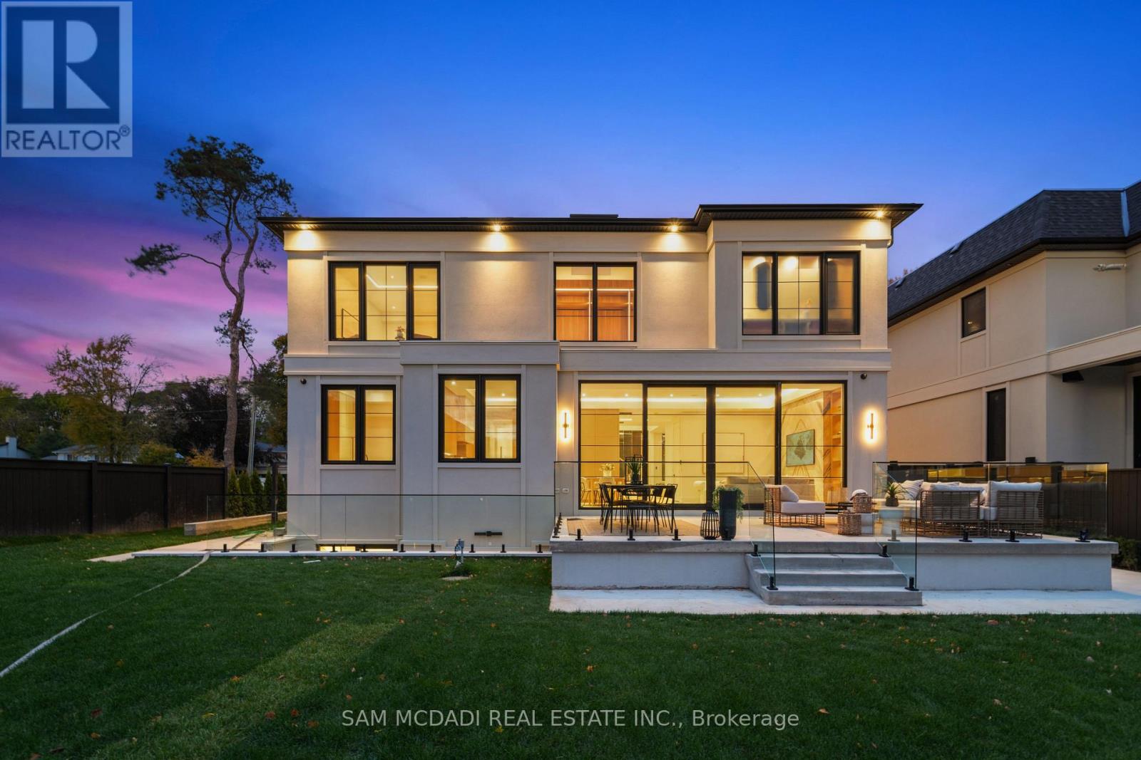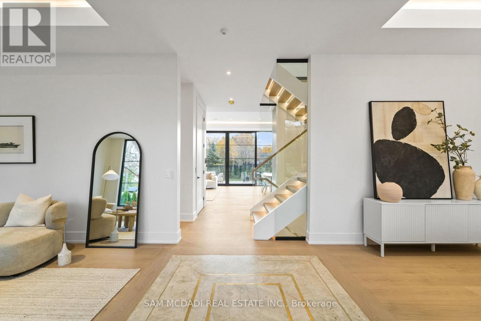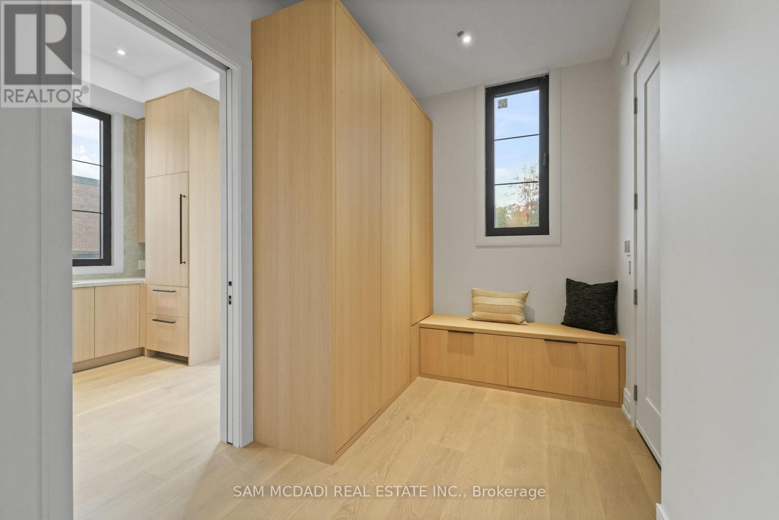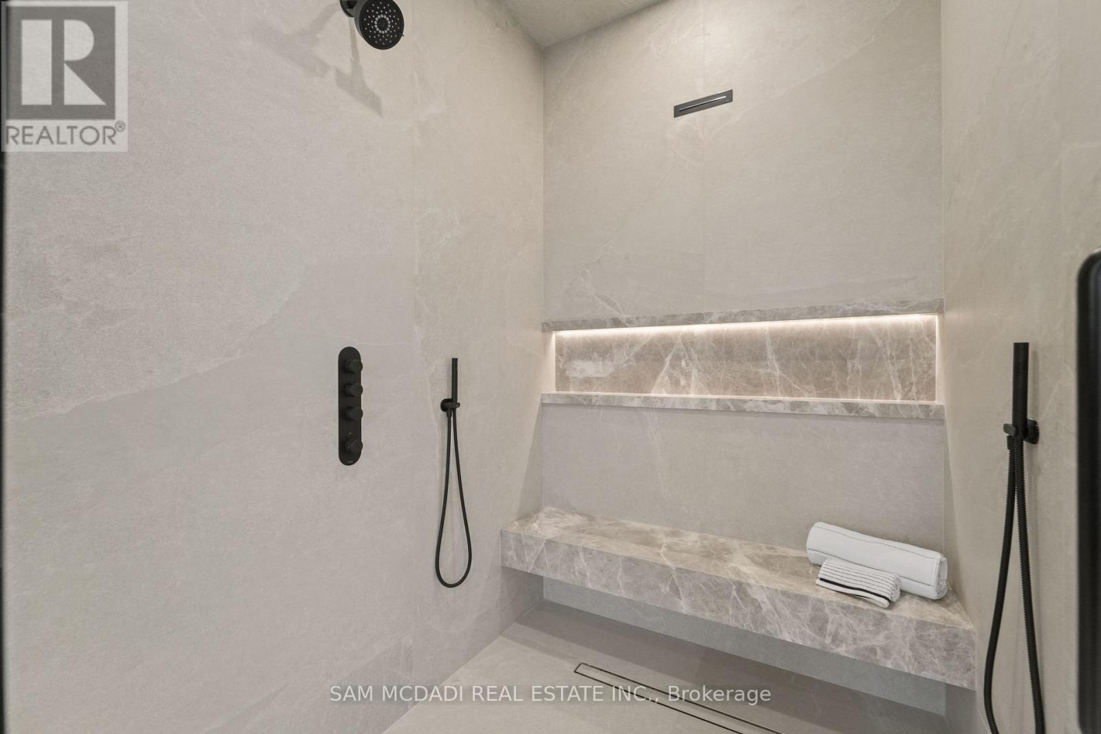 Welcome to 152 Third Line, an architectural masterpiece in Oakville's prestigious Bronte neighbourhood. Set on a 75 x 140 ft lot, this newly built custom home offers over 5,500 sqft. across three levels, blending modern sophistication with timeless craftsmanship. The striking limestone stucco exterior with clean lines and expansive windows creates elegant curb appeal. Inside, a grand foyer with Taj Mahal marble flooring and brass inlay leads to light-filled living spaces with 9" white oak floors and a dramatic book-matched marble fireplace. Two kitchens impress: a show kitchen with Sub-Zero and Wolf appliances and oversized island, and a secondary chef's kitchen with bespoke cabinetry, Taj Mahal marble counters and matching backsplash. A solid oak staircase with glass railings and step lighting connects all three levels, complemented by a private elevator. The 641 sqft. primary suite features a meticulously crafted 5-star hotel-inspired ensuite and custom walk-in closet. Three additional bedrooms have private ensuites and built-in closets. Bathrooms are finished in a curated selection of exquisite marbles, with coordinating stone vanities and niches for a seamless, luxurious look. The finished lower level includes a home theatre, den, recreation room, home office, bar, and walk-out to the rear yard - perfect for entertaining or relaxing. Year-round comfort is ensured with a zoned HVAC system, heat pump, furnace, tankless water heater, HRV, humidifier, and smart thermostat. Control4 smart home integration, integrated audio, smart lighting, and security cameras provide effortless modern living. Outdoors, a 375 sqft. raised patio offers a stylish entertaining space or a private retreat. Sophisticated, functional, and beautifully executed, 152 Third Line redefines modern luxury in one of Oakville's most sought-after communities. (id:4555)
