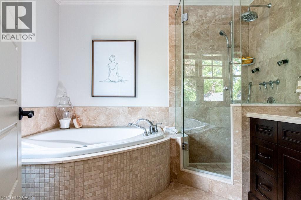 Welcome to 44 Head St—an exceptional residence in the heart of Oakville—just steps to Kerr Village, downtown boutiques, cafés & the lakefront. Here, vibrant walkability meets peaceful, tree-lined charm. Offering nearly 2,200 sq ft above grade + a fully finished 1,015 sq ft lower level, this timeless home blends character with modern comfort. Set behind manicured gardens, dark slate wood siding & crisp white trim frame a welcoming front porch—perfect for morning coffee or evening wine. Inside, 9' ceilings, hardwood floors, crown moulding & high baseboards create an elevated aesthetic. The entertainer’s kitchen features granite countertops, a generous island, professional-grade appliances & abundant storage, flowing seamlessly into bright, open-concept living & dining spaces. A gas fireplace with custom millwork anchors the room, while French doors open to a beautifully landscaped, private rear garden—ideal for relaxing or hosting al fresco. A versatile main-floor room offers flexibility as a home office, den or formal dining room. Upstairs, 3 spacious bedrooms each enjoy their own ensuite with heated floors & walk-in closets—luxury & privacy for all. The lower level with 9' ceilings adds a large family room, 4th bedroom, 3-pc bath & expansive laundry room. Custom built-ins throughout provide exceptional storage. The detached garage includes an EV charger & rare basement storage, while the extra-long driveway accommodates 6 cars. The fully fenced backyard offers a private garden with pretty perennials as well as a stone patio. The unbeatable location places parks, shops, restaurants & the waterfront at your doorstep. Meticulously maintained with thoughtful updates: powder room renovation (2024), driveway resurfaced (2024), exterior freshly stained (2024) & insulation upgraded to R60 (2025). Ideal for empty nesters, downsizers & families alike—this turnkey home is a rare opportunity to experience Oakville’s historic charm at its finest. (id:4555)
