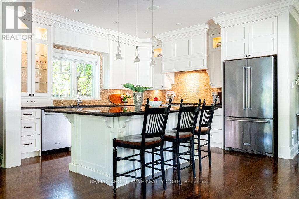 Welcome to 44 Head St - an exceptional home in the heart of Oakville- steps from Kerr Village & downtown. Enjoy walkable access to local shops, dining & the lakefront-the perfect blend of convenience & tranquility. Offering almost 2200 sq ft plus fully finished basement ( 1015 sq ft),this remarkable residence offers timeless charm & modern functionality. Set behind pretty gardens, the Dark Slate wood siding & crisp white trim frame an inviting front porch-perfect for morning coffee or evening wine. Inside, 9' ceilings, hardwood floors, crown moulding & high baseboards create a refined, elevated feel. The entertainer's kitchen showcases granite countertops, a large island, professional-grade appliances &generous storage, seamlessly flowing into the bright, open-concept living & dining areas. A cozy gas fireplace with custom millwork adds warmth, while French doors lead to the beautifully landscaped rear garden-perfect for relaxing or hosting outdoors. A versatile room on the main floor can serve as your personal office or den; it could also be transformed into a separate dining room if desired. Upstairs are 3 spacious bedrooms, each with ensuites with heated floors & walk-in closets . The lower level (9' ceilings) includes a spacious family room plus 4thbedroom, 3pc bath & large laundry room. Storage is no issue in this home with the many custom built-in closets & cabinets. A detached garage with EV charger features a rare basement for even more storage! Plus there is parking for 6 cars on the extra long driveway. A fully fenced private rear yard, & unbeatable walkability to parks, shops, cafés & the waterfront make this turnkey property a rare offering. Meticulously maintained by the current owners, recent updates include powder room renovation (2024), driveway resurfaced (2024), exterior newly stained(2024) & insulation upgraded to R60 (2025). Ideal for empty nesters, downsizers & families. Don't miss this opportunity to experience Oakville's historic charm. (id:4555)