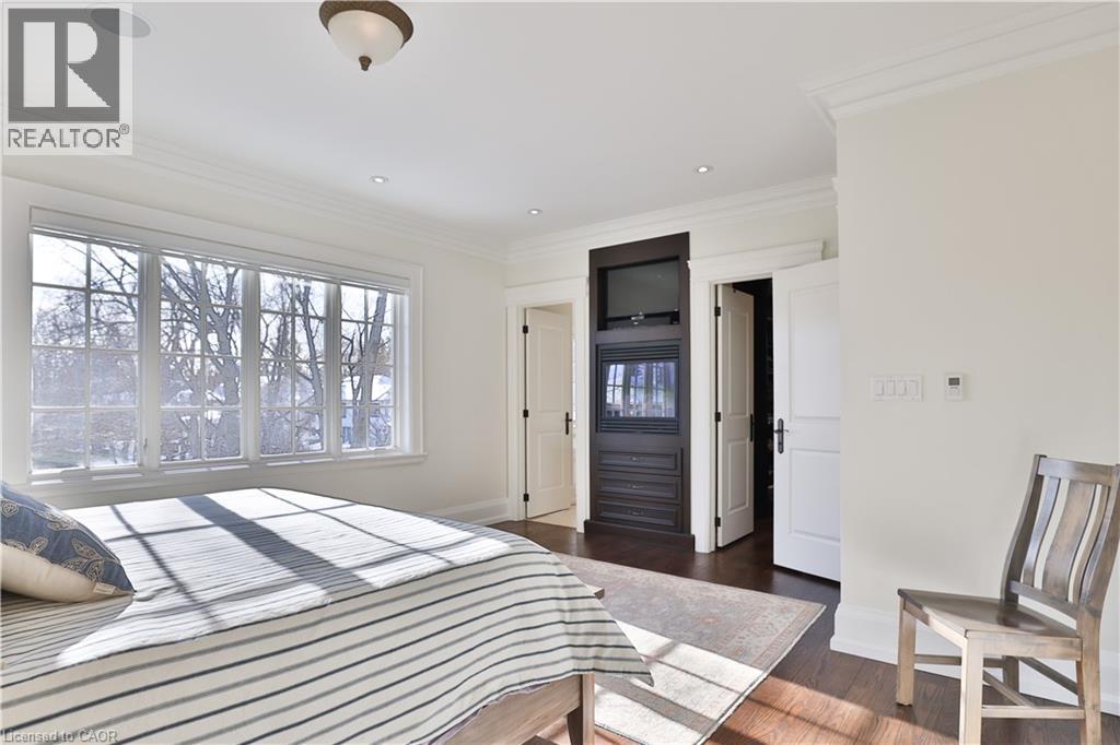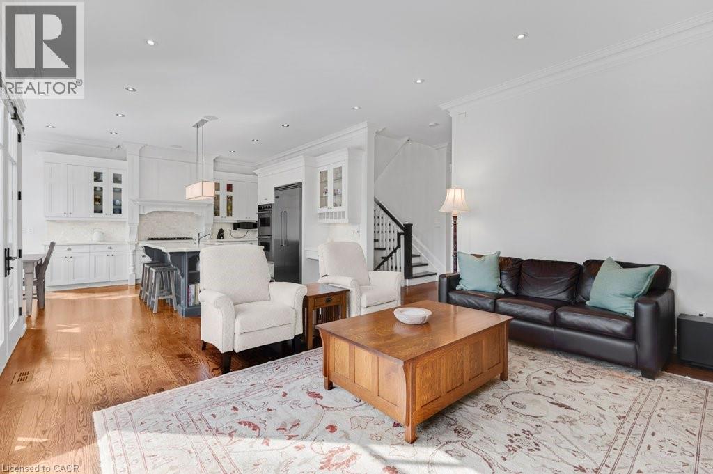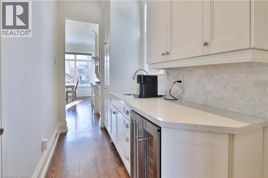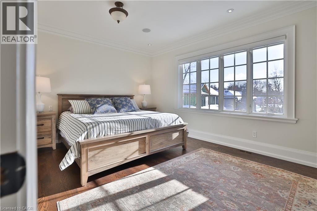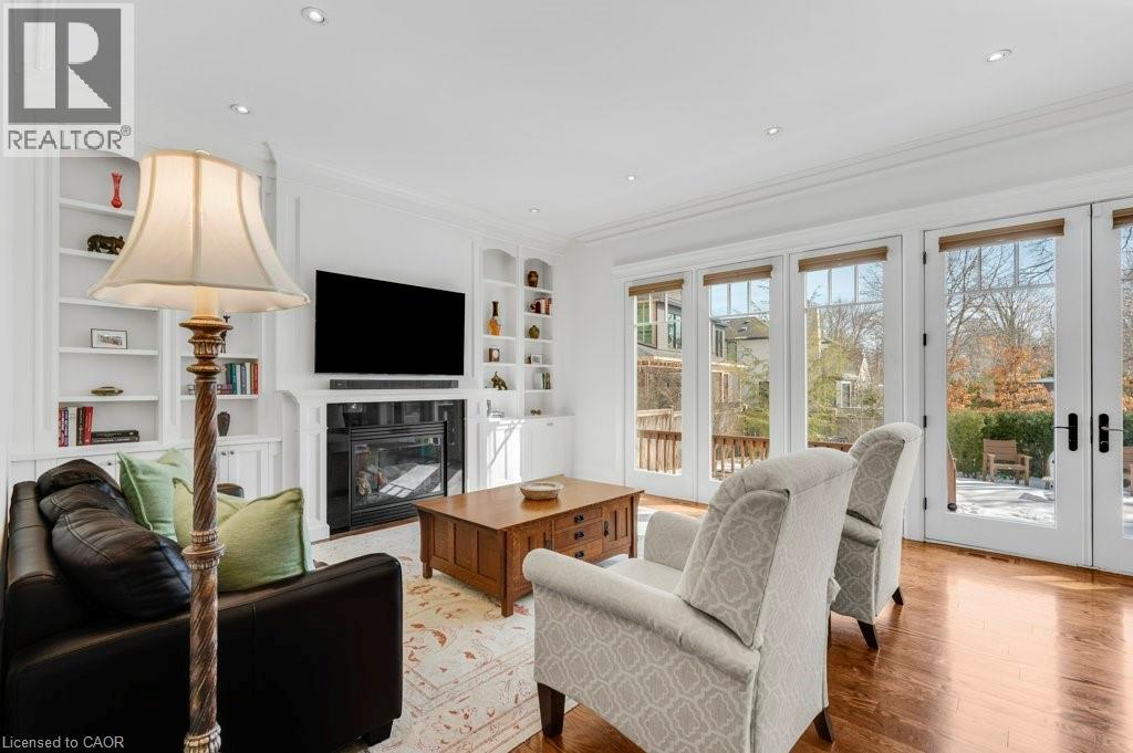 One of the best locations in old Oakville! This exceptional custom home on a quiet side street features a bright freshly painted interior with 10' main floor ceilings, crown mouldings, 3 gas fireplaces, a Control4 full house hard wired entertainment system, elevator rough-in, and site-finished oak hardwood throughout. The main floor features an bright open-concept kitchen, breakfast, and family room area with a full wall of windows overlooking the backyard. The chef’s kitchen has quartz counters, a large centre island, premium cabinetry, and Viking Professional appliances. The family room has a gas fireplace with built-in bookcases. A butler’s pantry with wine fridge and sink leads to the separate dining room finished with a coffered ceiling. The main floor mudroom offers garage access with built-in closet and storage. A powder room completes this level. The second level features 9' ceilings, a bright skylit hallway, laundry with built-ins, and 4 generously sized bedrooms. The spacious primary suite features a gas fireplace, walk-in closet, and spa-inspired ensuite. The lower level has 9' ceilings, radiant floor heating, oversized windows, a separate entrance, recreation room with built-ins, gas fireplace and wet bar. A fifth bedroom, 3-piece bath, cold room, and additional storage complete this level. A private low maintenance backyard has a south facing view which extends a full city block. It is fully landscaped with mature plantings and quality hardscaping (id:4555)