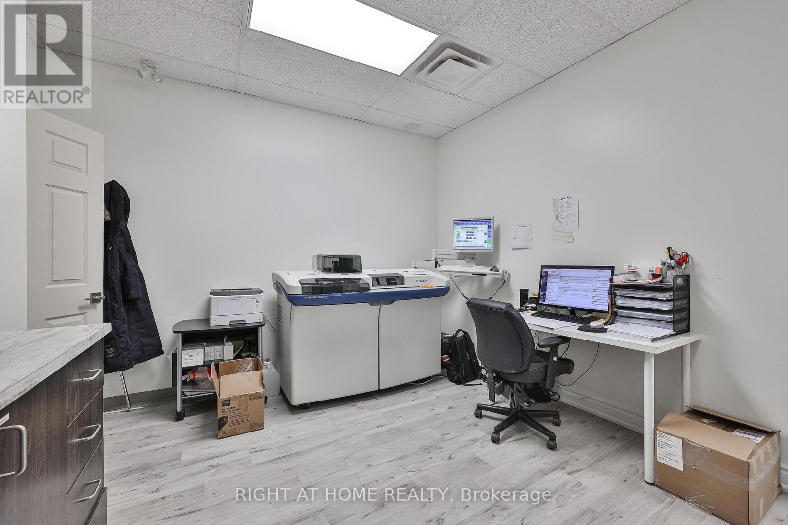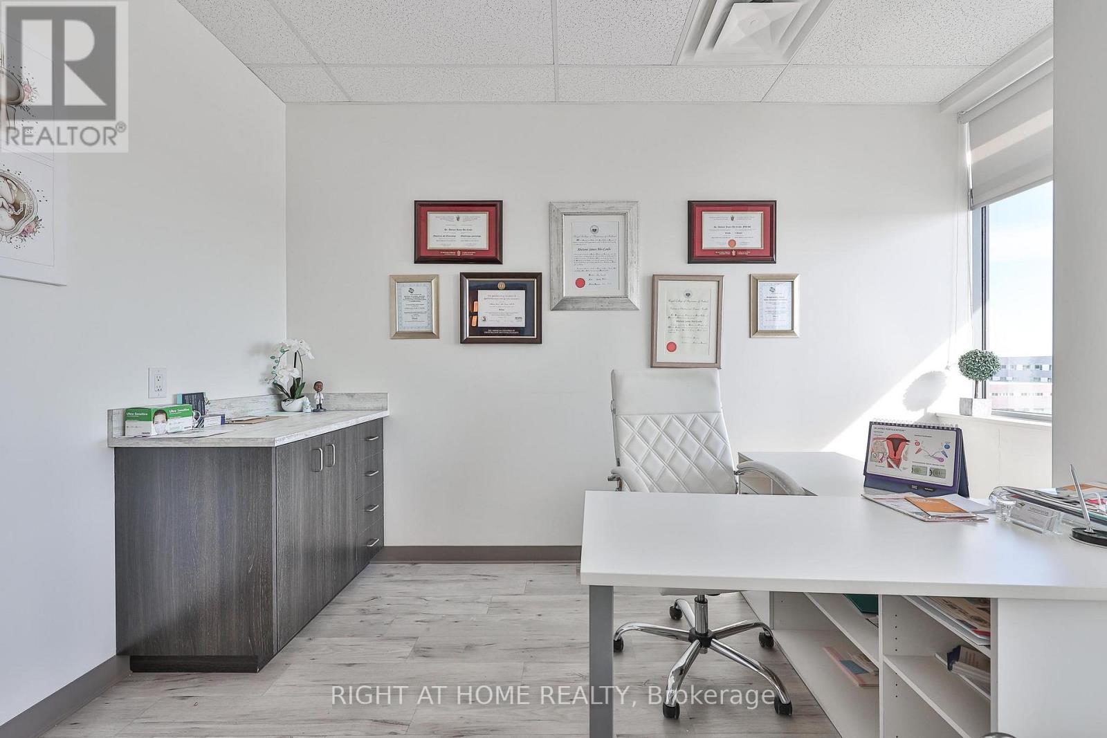 Strategically located steps from Oakville Trafalgar Memorial Hospital, this modern professional office space presents an exceptional opportunity for medical, health, wellness, or professional service users seeking a prestigious and highly accessible location. Currently configured and operating as a clinic, the unit offers a functional layout designed for efficiency, client comfort, and professional workflow. Situated within a well-maintained professional complex, occupants benefit from a strong healthcare-focused environment, ample on-site parking, elevator access, and proximity to major transit routes, retail amenities, and established residential neighborhoods that support steady client traffic. Professionals and investors alike will appreciate this turnkey office space featuring contemporary finishes, a welcoming reception area, multiple treatment/office rooms, and an environment ideally suited for medical or professional practice use. An excellent opportunity to own a strategically positioned office in one of Oakville's most sought-after healthcare corridors. (id:4555)