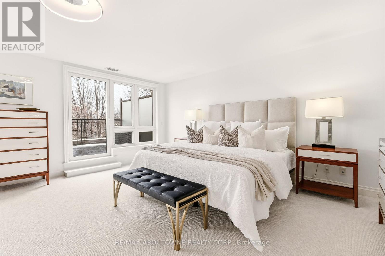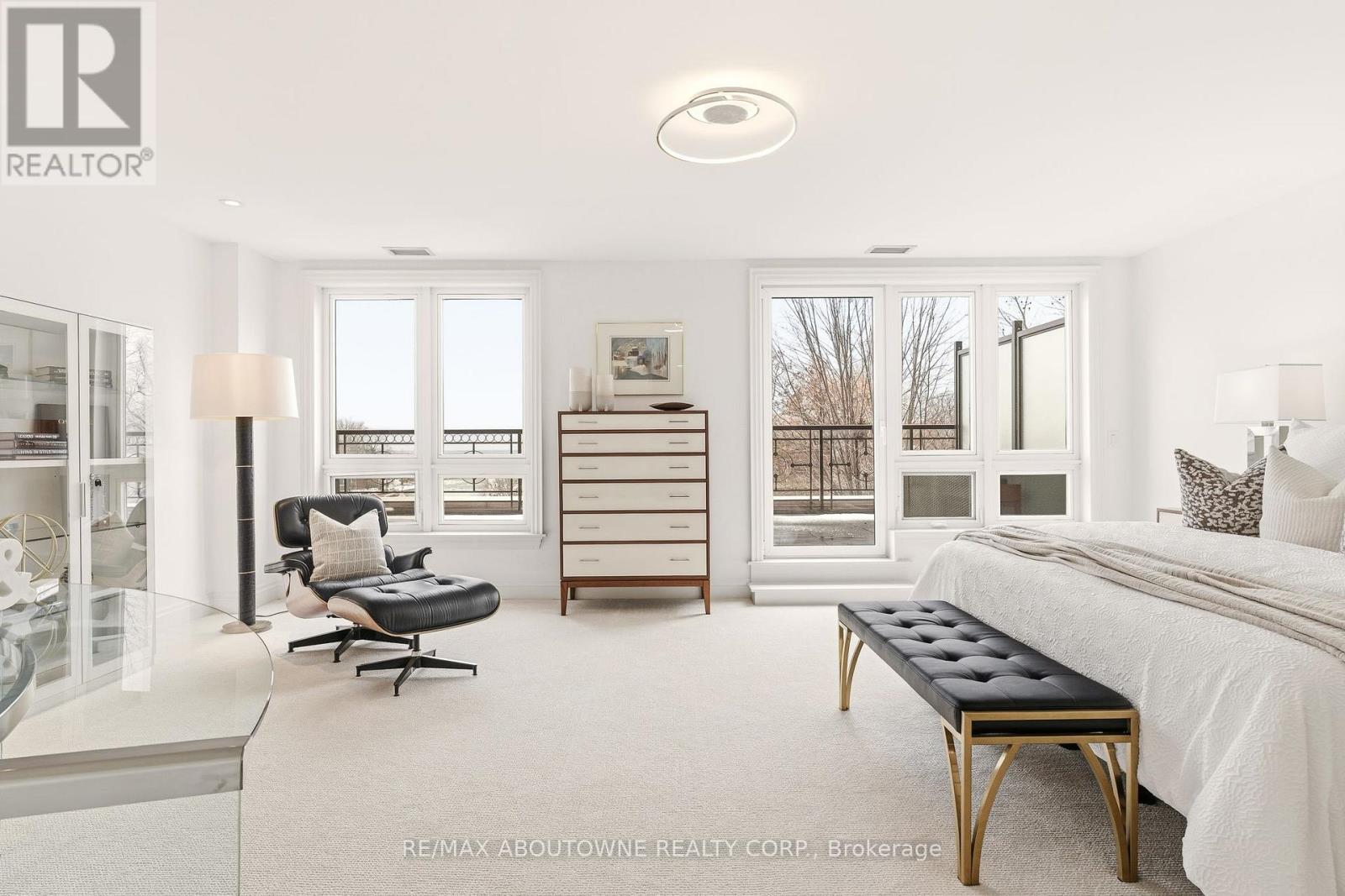 Waterfront living. A truly rare opportunity to own over 2,300 square feet of refined luxury in one of downtown Oakville's most exclusive waterfront residences. This exceptional corner suite showcases a brilliant, flowing layout designed to maximize light, views, and seamless indoor-outdoor living. Enjoy OVER 450 square feet of south-facing private terrace space overlooking the harbour-one of only two residences in the building to offer such a spectacular outdoor extension. As well as a 2nd separate, intimate balcony, both offering captivating water views. From sunrise to sunset, unobstructed south and east panoramic vistas of the lake, harbour, and downtown Oakville unfold from nearly every room. The residence features two generously scaled bedrooms plus a substantial office, easily adaptable as a third bedroom, 2.5 beautifully appointed bathrooms, and a large laundry room with sink. Recently renovated, the home is finished with sophisticated contemporary details that elevate both form and function. Floor-to-ceiling windows bathe the interiors in natural light year-round, creating a bright and uplifting ambiance even in the winter months. The primary suite is a private retreat, complete with a walkout to the terrace-an idyllic setting to unwind while overlooking the water. The expansive terrace is perfectly suited for entertaining, quiet relaxation, or a place to practice your putting, while the secondary balcony offers a serene lounge-like escape. Residents enjoy 24-hour concierge service and refined amenities befitting a luxury lifestyle. Two premium parking spaces and a large, fully private storage room complete this exceptional offering.An unparalleled waterfront lifestyle in the heart of Oakville-rare, elegant, and truly irreplaceable. (id:4555)