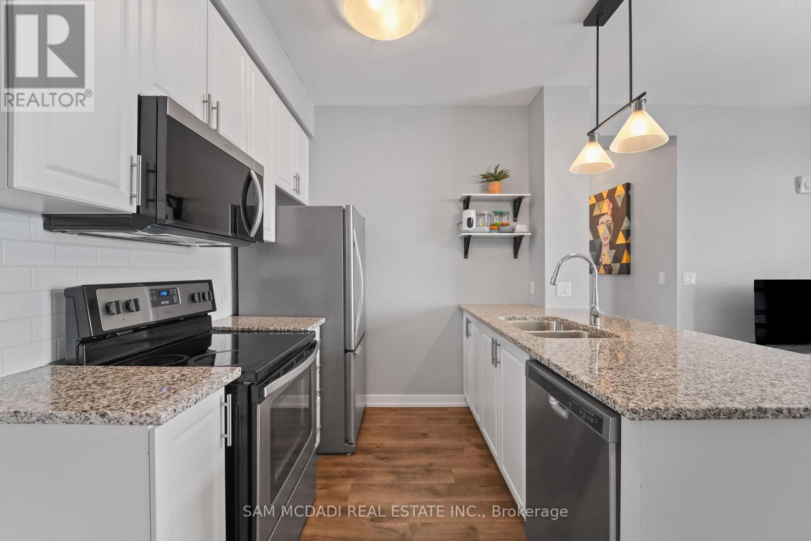 Find your dream condo within the Westmount Community in the town of Oakville. Welcome to this stunning corner unit where modern design meets breathtaking and unobstructed views with a gorgeous sunset. This spacious and carpet free property offers an open-concept layout with modern finishes, 9-ft ceiling, and upscale flooring throughout with quality ceramic flooring in bathrooms. The stylist kitchen features granite countertop, stainless steel appliances, and plenty of storage. The primary bedroom comes with seldom found walk-in closet and a private 3-piece ensuite bathroom with quartz counter on vanity. The 3-piece second bathroom comes with quartz counter vanity and ensuite laundry. The condo comes with two underground, owned parking spots and one underground owned locker. Relax in your private balcony with beautiful and unobstructed views. Building amenities include a gym, a party room, a yoga studio and a rooftop terrace. Ideal for young professionals, healthcare workers in Oakville General Hospital, First time home buyers, down sizers or investors. The condo is within five minutes drive to the Oakville General hospital, and close to community centre, Church, Gurudwara, walking trails, parks, high rated schools, public transit and major highways. (id:4555)