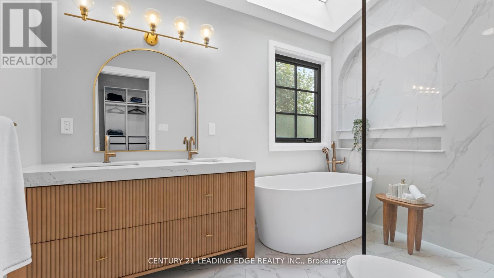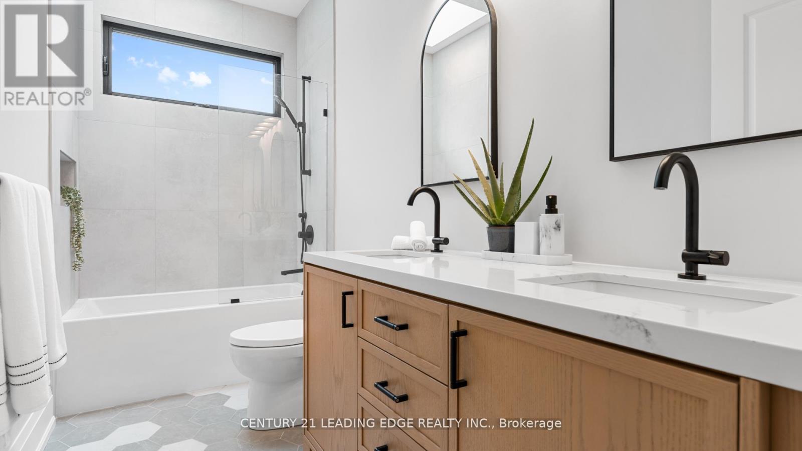 Discover 197 Glen Oak Dr. - an elegant, custom-built residence in South Oakville's prestigious lakeside community. Designed by SMPL Design and crafted by award-winning Pine Glen Homes (2024), this modern masterpiece blends refined style, luxury finishes, and enduring craftsmanship on a commanding 78 x 140 ft corner lot.Just under 2,000 sq. ft. of thoughtfully planned living space flows seamlessly from an impressive hand-crafted marble foyer to an exquisite kitchen featuring a waterfall-edge quartz island, premium integrated appliances, Perrin & Rowe English Gold fixtures, and custom cabinetry. Perfect for entertaining, the kitchen connects to open-concept living and dining spaces enhanced by rich oak flooring, 10-ft ceilings, and Sunrise custom windows that fill the home with natural light. A sleek Optimist fireplace, private home office, butler's pantry, and French doors leading to a covered patio and landscaped backyard complete the main level.Upstairs, three generous bedrooms include a primary suite with wraparound windows, vaulted ceilings, custom wardrobes, and a spa-inspired ensuite with skylights, a glass-enclosed curb-less shower, and a designer soaker tub.Located steps from Lake Ontario, Coronation Park, and downtown Oakville, this rare offering is close to Appleby College, top-rated schools, and major commuter routes (QEW/403, GO Station). A seamless fusion of design, location, and lifestyle awaits at 197 Glen Oak Drive. (id:4555)