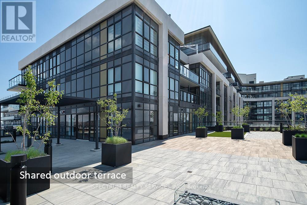 Welcome to this stunning 1-year-new, 2-bedroom, 2-bathroom condo offering 770 sq. ft. of beautifully designed living space at Distrikt Trailside in Oakville. Showcasing award-winning finishes and soaring 15-foot ceilings, this suite feels bright, expansive, and effortlessly modern. A true standout feature is the rare 250+ sq. ft. private executive terrace with ground floor entry - complete with a gas BBQ hookup and walk-out access directly from the living room - creating a seamless indoor-outdoor living experience perfect for entertaining, dining, or relaxing in your own private retreat. The thoughtfully designed layout maximizes space and functionality. The primary bedroom overlooks the terrace and features a stylish 3-piece ensuite. A well-planned split-bedroom design offers privacy, making this home ideal for professionals, small families, downsizers or investors alike. This unit also includes one owned underground parking space and locker for added convenience and value. Residents enjoy an exceptional collection of amenities including 24-hour concierge service, a state-of-the-art fitness centre, rooftop terrace with BBQs and panoramic views, pet spa, secure bicycle storage, and ample visitor parking. The beautifully curated common areas evoke the sophistication of a boutique hotel. Ideally located just steps to Fortinos, Starbucks, fine dining, and community centres, and moments from the scenic trails of 16 Mile Creek. Close to Oakville Trafalgar Memorial Hospital, GO Transit, Highways 407 & 403, and just a short drive to Lake Ontario, this residence offers the perfect blend of luxury, lifestyle, and convenience. An exceptional opportunity to own a nearly new condo with rare outdoor space in one of Oakville's most desirable communities. (id:4555)