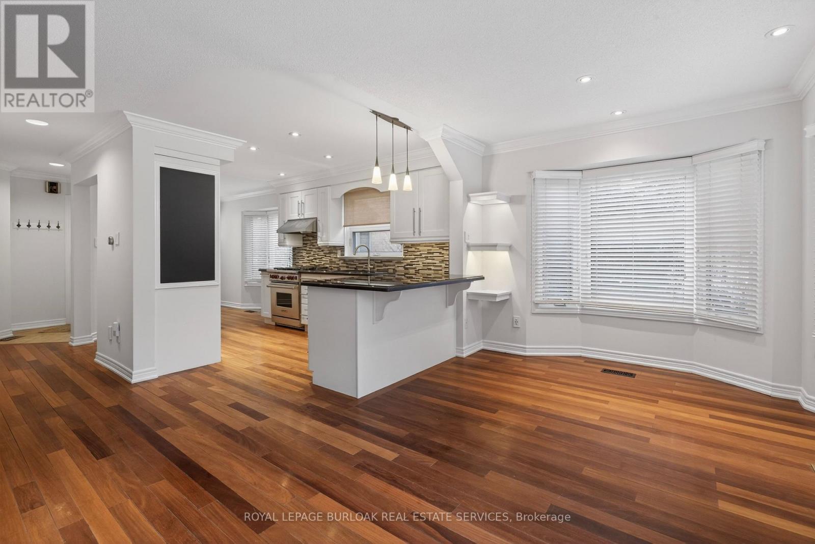 Lovely end-unit townhome in the highly desirable, family-friendly River Oaks community, backing onto ravine for added privacy and peaceful views! This well-maintained home offers a bright and spacious layout with 3 bedrooms, plus a finished basement, perfect for families or those needing extra living space. The main level features an upgraded kitchen with bright, new kitchen cabinetry and ample workspace, crown moulding, pot lights, and a cozy gas fireplace. Renovated bathrooms add modern appeal throughout. The primary bedroom retreat boasts a cathedral ceiling and an oversized soaker tub for ultimate relaxation. Freshly painted throughout and includes a brand new washer and dryer. Enjoy parking for two vehicles and low-maintenance living in a prime location. Just a short walk to Oakville Place Mall, top-rated schools, parks, trails, and public transit, with easy access to major highways and everyday amenities. A fantastic opportunity to own a move-in-ready home in one of Oakville's most sought-after neighbourhoods! (id:4555)