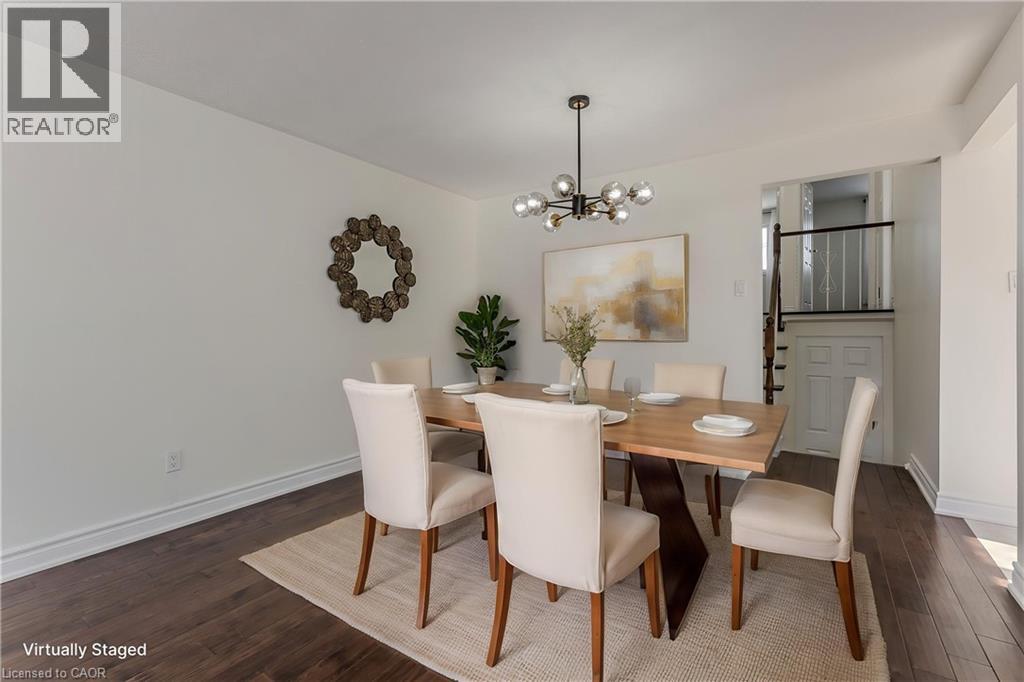 Welcome to this fully updated family home nestled on a quiet, private street in a highly desirable Oakville neighbourhood. Perfectly positioned close to schools, parks, transit, and everyday amenities, this home offers an exceptional lifestyle for growing families seeking comfort, convenience, and versatility. The inviting exterior features mature trees, a welcoming front walkway, and parking for up to five vehicles—ideal for busy households and visiting guests. Step inside to discover a bright and welcoming main level with hardwood flooring throughout and a functional open-concept layout designed for everyday living and entertaining. The kitchen is both stylish and practical, showcasing marble countertops, a tile backsplash, stainless steel appliances, ample cabinetry, and a cozy breakfast nook—perfect for casual family meals or morning coffee. The open living and dining area is filled with natural light from the large front window, creating a warm and inviting space for gatherings. Upstairs, hardwood flooring continues through three spacious bedrooms, offering comfortable retreats for the whole family. A well-appointed 4-piece bathroom serves the upper level. The fully finished lower level adds incredible flexibility with a separate entrance and in-law suite potential—ideal for extended family, guests, or additional rental income. This level features a family room, second kitchen, bedroom, and a 4-piece bathroom, along with a walkout to the backyard. Outside, the fully fenced rear yard provides a private outdoor escape with an interlock stone patio, garden spaces, and a shed for additional storage. It’s the perfect setting for summer BBQs, gardening, and safe play for kids and pets. A wonderful opportunity to enjoy comfortable family living in a peaceful neighbourhood close to everything Oakville has to offer. (id:4555)