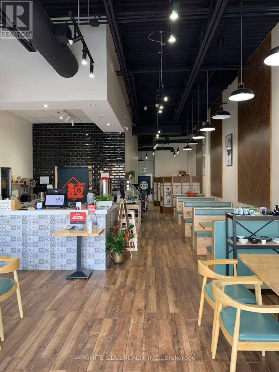 Business for sale in leased real property. An exceptional opportunity to acquire a fully equipped, move-in-ready restaurant located in the highly desirable Maple Grove Village Shopping Centre in Oakville's prestigious Eastlake neighborhood. This prominent retail plaza enjoys high visibility and foot traffic, anchored by national tenants including Sobeys, Dollarama, Tim Hortons, and Pet Valu. The unit comes with 1,440 Sqft capacity 40 seats, and offers a functional layout suitable for dine-in, take-out, and catering services, making it ideal for a variety of culinary concepts or franchise operations. Current Monthly Rent is $7,068.40 Including TMI and HST. Don't miss this rare chance to establish your business in one of Oakville's most vibrant retail destinations. (id:4555)