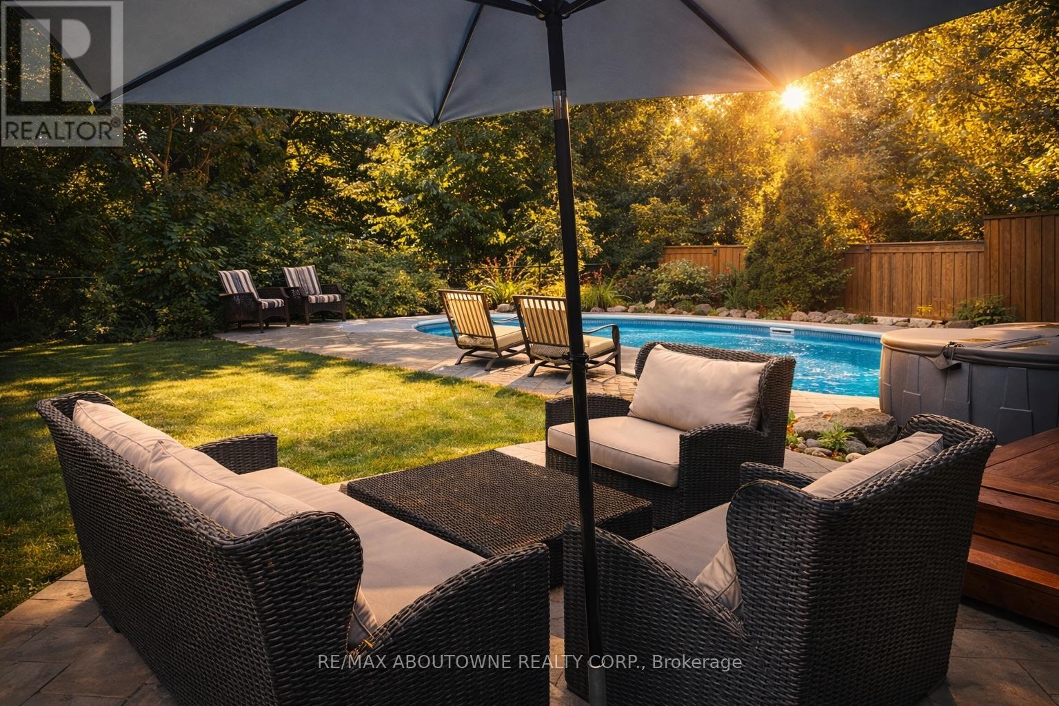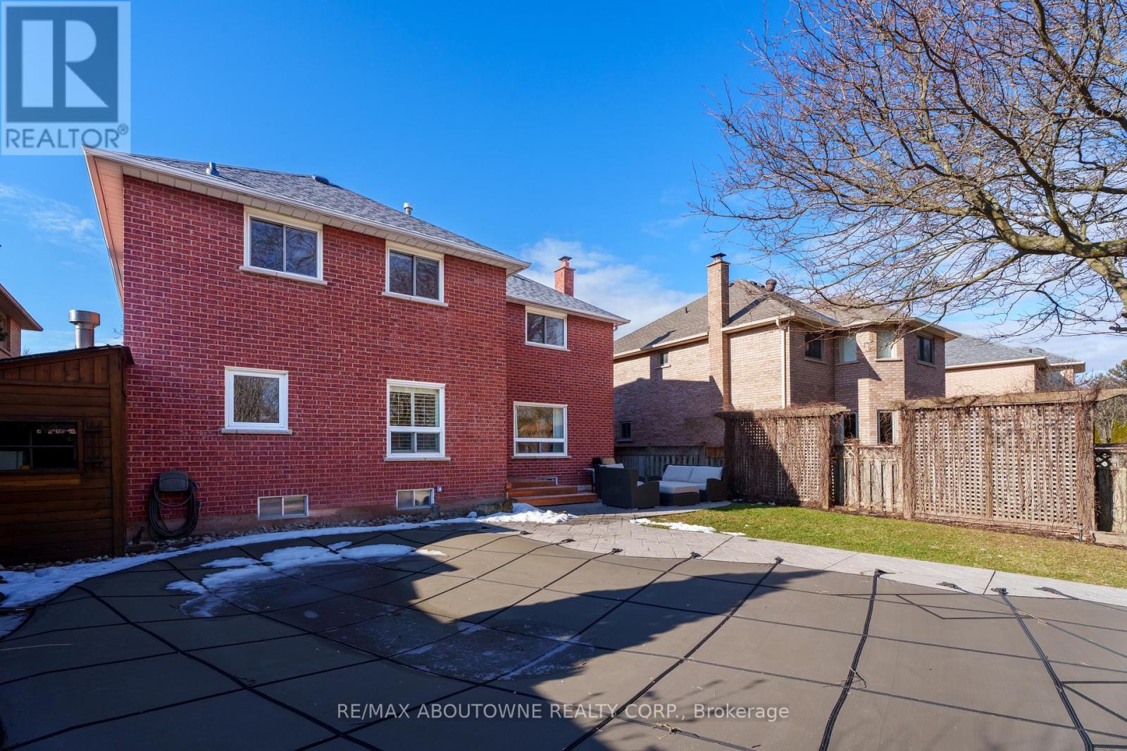 Nestled on a quiet, family friendly street in Oakville's prestigious Glen Abbey community, this beautifully maintained 4+1 bedroom, 4 bathroom detached home sits on a premium RAVINE LOT offering exceptional privacy and scenic views. A short 5 minute trail walk leads to Pilgrim Wood Public School, while Abbey Park High School, one of Ontario's top ranked schools, is just 10 minutes away, making this home ideal for families seeking both nature and excellent education.Step inside to an impressive 18 foot grand foyer featuring a striking curved staircase that sets the tone for the home's elegant design. The bright living room showcases a picturesque window overlooking the front garden, while the formal dining room provides an inviting setting for entertaining.The Upgraded kitchen features custom cabinetry, granite countertops, and stainless steel appliances. The spacious family room, complete with a cozy wood burning fireplace, offers the perfect gathering space for family and friends.Ascending the elegant wood staircase, the second floor features a spacious primary suite with his and hers walk in closets and a Upgraded 4 piece ensuite including a double vanity and glass walk in shower. Convenient second floor laundry adds everyday functionality. Three additional generously sized bedrooms, each with large windows and closets, share a well appointed 4 piece bathroom.The finished basement offers additional versatile living space with a large recreation room, a fifth bedroom, and a full bathroom, ideal for guests, teenagers, or a home office.Step outside to your private landscaped backyard retreat featuring a stamped concrete patio, a heated pool, and serene ravine and forest views, offering exceptional privacy.Conveniently located close to provincial parks, scenic trails, new hospital, major highways including QEW and 403, and award winning golf courses.Move in ready, this Glen Abbey gem blends luxury, nature, and top tier education in a rare ravine lot setting. (id:4555)