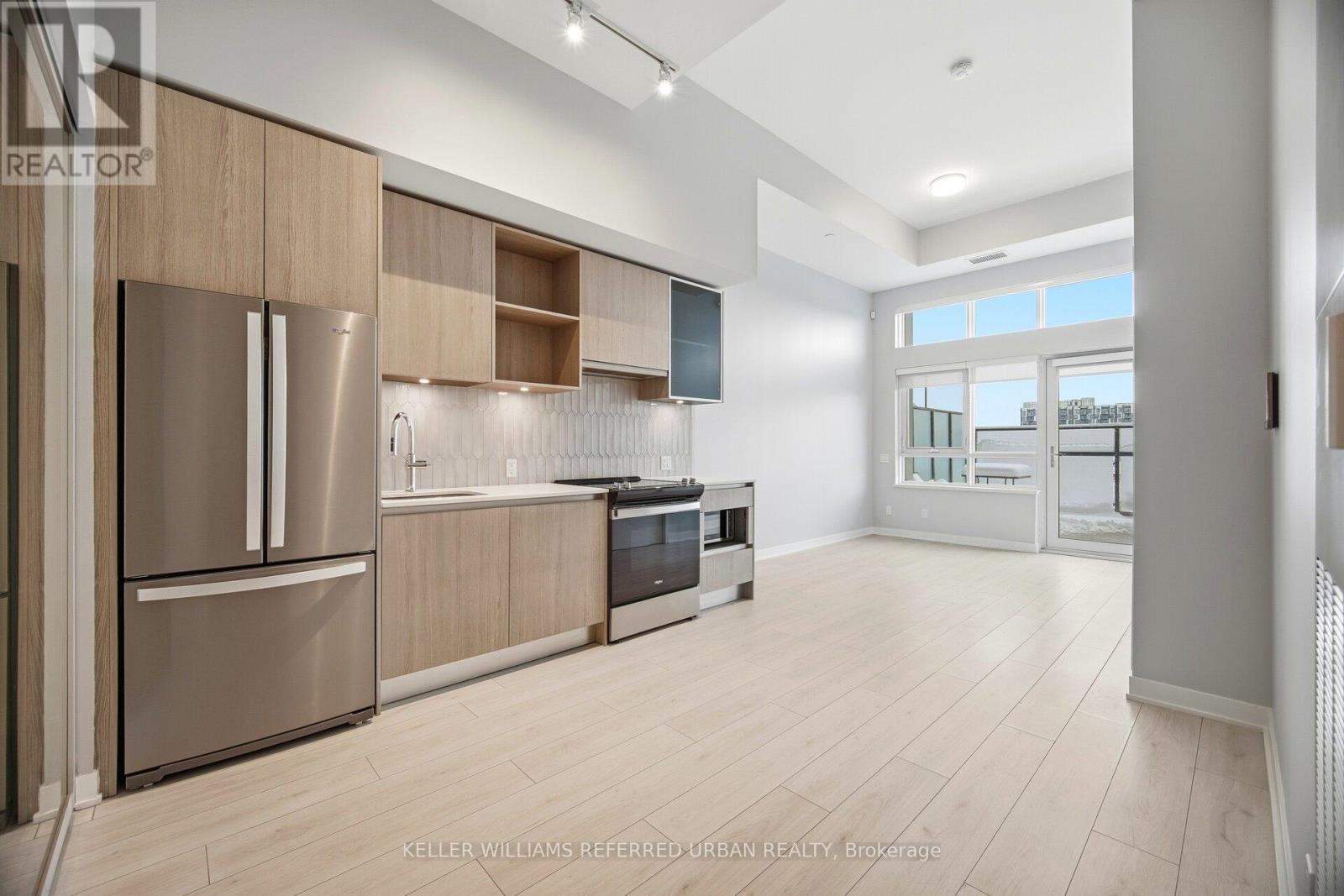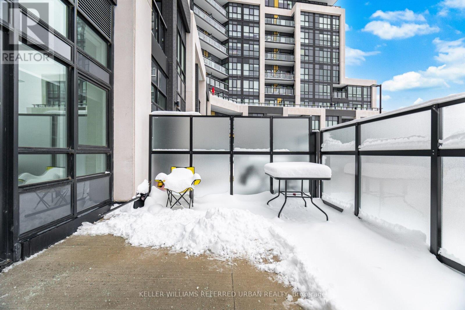 Welcome to Distrikt Trailside. This beautiful main-floor 2-bedroom, 2-bathroom residence offers the rare convenience of a private walk-out to an expansive 263 sq' terrace, with gas line for BBQ's, seamlessly extending your living space outdoors. Inside, 10-foot ceilings, oversized windows, and a freshly painted interior create a bright, airy atmosphere throughout. The open-concept layout is thoughtfully designed, anchored by a modern kitchen featuring quality, full-size appliances, and modern finishes including newly installed quality flooring throughout. The spacious primary includes a 3pc ensuite, and double mirrored closet, while the second bedroom is ideal for guests, a home office, or flexible living needs. Additional highlights include in-suite laundry, underground parking, a storage locker, and integrated smart home technology for lighting, climate control, and security. Distrikt Trailside is a contemporary, well-managed building offering premium amenities such as concierge service, a rooftop terrace, fitness centre, resident lounge, party rooms, pet wash, and secure bike storage. Ideally located steps from scenic walking and biking trails, parks, and green spaces. Easy access to top-rated schools, Oakville Trafalgar Memorial Hospital, Whole Foods, and Glen Abbey Golf Club. (id:4555)