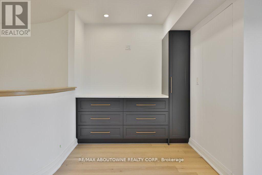 Luxury lakeside living in Bronte's coveted Schooner's Reach. Completely reimagined from top to bottom, this exceptional freehold townhome offers nearly 3,000 square feet of beautifully renovated living space just moments from the lake, marina and the vibrant shops and restaurants of Bronte Village. The main level unfolds with wide-plank flooring, expansive sightlines and a stunning redesign of the kitchen and living spaces. The kitchen has been opened and rebuilt with custom cabinetry, quartz surfaces, integrated wall ovens, gas cooktop and striking two-tone finishes that feel both warm and contemporary. Two additional windows were added in the family room to enhance natural light, while a fully rebuilt staircase with hardwood treads and modern railings now acts as an architectural focal point. Extensive pot lighting and thoughtful electrical upgrades further elevate comfort and functionality throughout the home. The second level offers three well-proportioned bedrooms, a beautifully renovated full bath and convenient laundry. Above it all, the entire third floor is dedicated to a remarkable private primary retreat featuring a spacious bedroom, custom dressing space, two walk-in closets, a luxurious five-piece ensuite and its own balcony. A lower-level office, abundant storage, interior access to the double garage and an oversized terrace ideal for outdoor dining and entertaining complete the home. This freehold townhome community offers the convenience of coordinated landscaping, snow removal and seasonal exterior window cleaning without monthly condo fees, a rare opportunity to enjoy the Schooner's Reach lifestyle in a home that has been entirely transformed. (id:4555)
