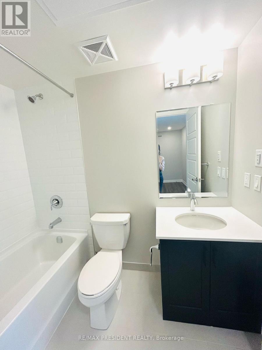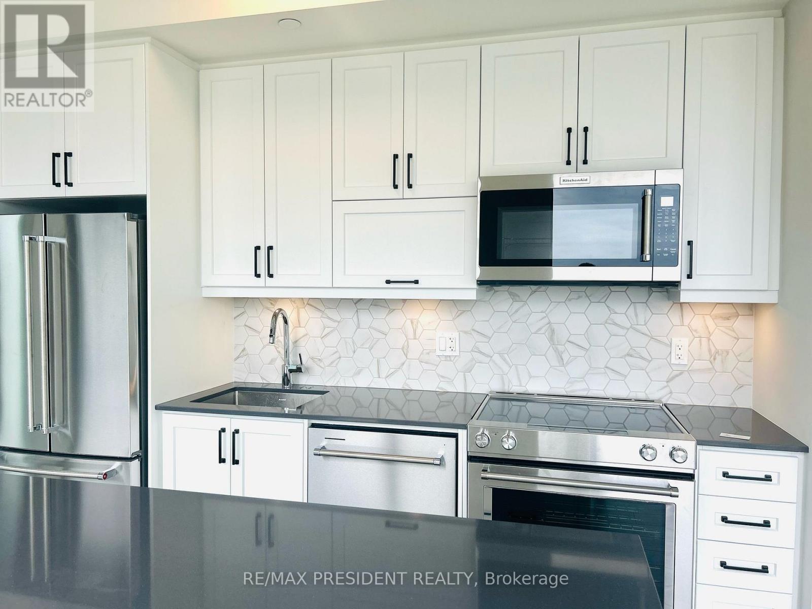 Brand-new 1+1 bedroom, 2 full bathroom condo in a prime Oakville location, never lived in and upgraded with nearly $20,000 in premium finishes. Located on the 5th floor, this bright and modern unit features 9-foot ceilings, hardwood flooring, and a stylish kitchen with granite countertops, stainless steel appliances, and a large island. The open-concept living and dining area leads to a spacious private balcony, perfect for relaxing or entertaining. The primary bedroom offers ample closet space and a sleek ensuite bathroom with a glass shower, while the versatile den can serve as a home office or guest space. Additional highlights include a second full bathroom, in-suite laundry, and a smart home system. Residents enjoy access to top-tier amenities including a fitness center, yoga studio, pet spa, party room, and rooftop patio. The unit also includes 1 underground parking space, 1 locker, and internet. (id:4555)