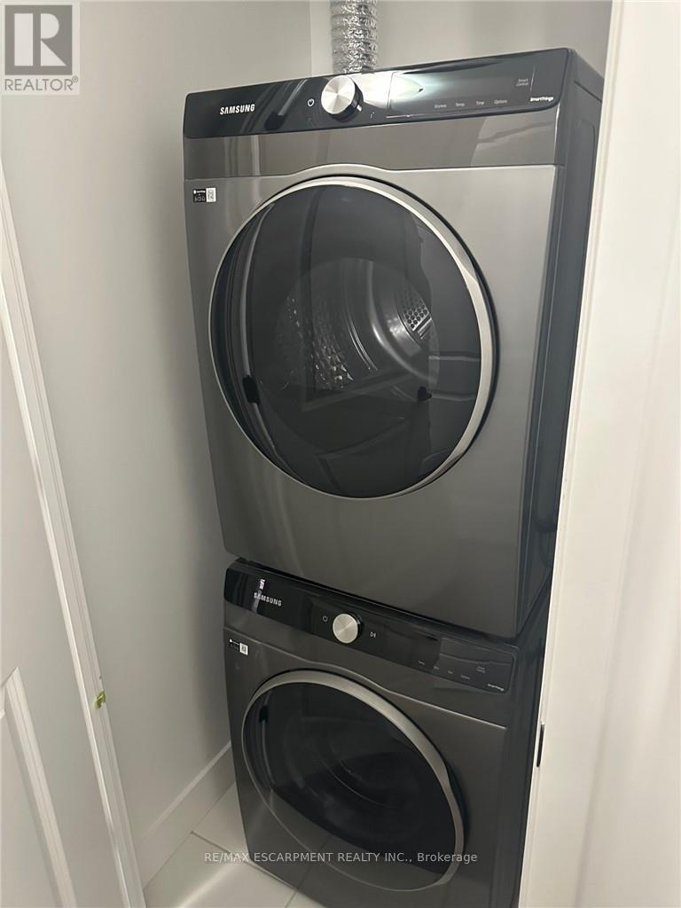 Welcome home to this newer stunning 2 bed/2 full bath condo in sought after Nuvo Condos by Fernbrook. This condo is heavily upgraded with designer finishes which include hardwood floors throughout and quartz countertops in the kitchen and bathrooms. The bathrooms feature a soaker tub and glass shower. The east view allows for a lot of natural light. The unit also features in suite laundry with upgraded washer and dryer. The building features premium hotel like amenities such as boutique gym with pelotons, putting green, rooftop pool and much more. The building is located near shopping, schools and highways. 1 underground parking and storage locker included. (id:4555)