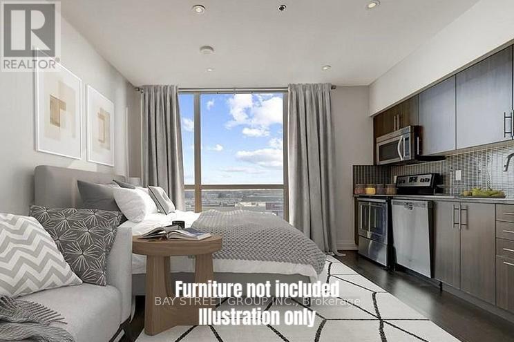 Rarely Offered Studio Suite In The Sought-After Rain Condos, Ideally Located In The Heart Of Trendy Kerr Village. This Thoughtfully Designed Unit Features Tall Ceilings, Dark Flooring, Stainless Steel Appliances, In-Suite Laundry, And An Oversized West-Facing Floor-To-Ceiling Window With Unobstructed Views, Filling The Space With Natural Light. The Building Offers Premium Amenities Including 24-Hour Concierge, Indoor Pool, Gym, Party Room, Rooftop Terrace. One Parking Space And One Locker Included. Steps To Grocery Stores, Cinema, And The Vibrant Dining Scene Along Kerr Street, With Easy Access To The GO Station, Public Transit, Major Highways, And The Oakville Waterfront. (id:4555)