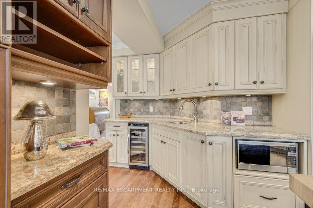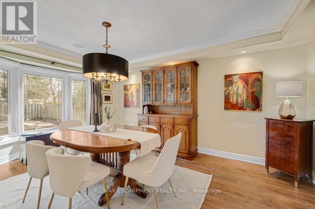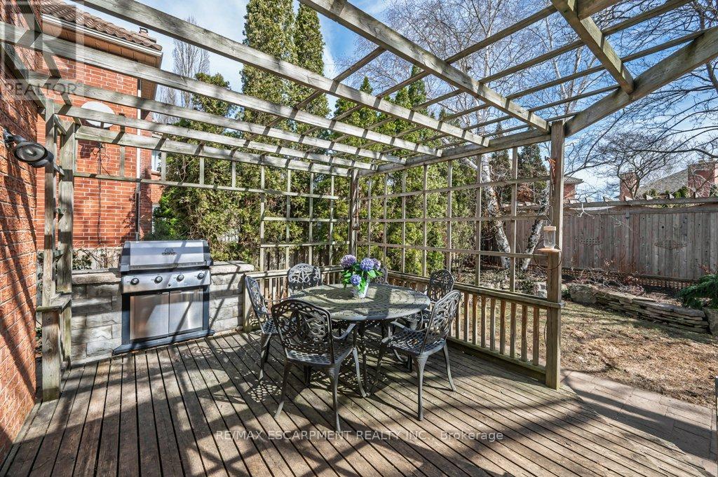 Welcome to this beautifully maintained home in the highly desirable Eastlake community in southeast Oakville. Designed for comfortable family living and effortless entertaining, this inviting home offers three bedrooms, three bathrooms, gleaming hardwood floors, and a spacious foyer that creates an immediate sense of warmth and elegance. The living and dining area features pocket doors that provide flexibility for entertaining or enjoying quiet evenings at home. At the heart of the home is a thoughtfully designed kitchen with abundant cabinetry, quartz countertops, and high-end appliances. A generous breakfast bar is perfect for morning coffee, casual meals, or after school conversations. The kitchen flows seamlessly into the family room where a wood burning fireplace adds charm and comfort while offering direct access to the private backyard. The main floor also includes a powder room and convenient laundry room. Upstairs a graceful staircase leads to a spacious primary suite designed as a peaceful retreat with a dressing area, built in closets, and a bright sitting nook perfect for reading or a quiet start to the day. The 5 piece ensuite includes dual sinks, a makeup vanity, a glass shower, and a deep soaker tub for relaxing at the end of the day. Two additional bedrooms and a full bath complete this level along with a large flexible room with a gas fireplace that can serve as a media room, home office, or family lounge. The lower level expands the living space with a recreation room, two versatile rooms, storage and a utility area. Outside, a tranquil backyard features a sunlit deck, well kept landscaping, lit privacy screens, shed, built in gas BBQ and a child and pet friendly play area. Located in the sought after Eastlake community, this home is surrounded by mature tree lined streets and generous lots and offers close proximity to excellent schools, parks, waterfront trails, boutique shopping, and convenient commuter routes to downtown Oakville and beyond. (id:4555)