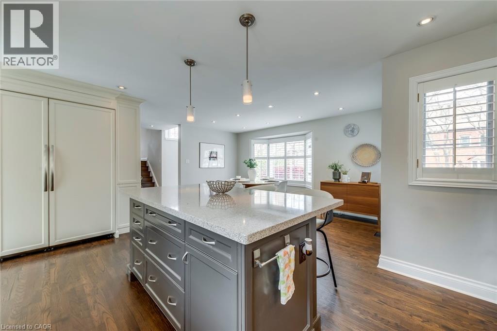 Stunning Custom-Built Home in Prime Downtown Oakville Location! This fully renovated 4-bedroom, 4-bathroom home is nestled in the heart of desirable Downtown Oakville. Boasting an impressive open-concept layout, this residence combines timeless charm with modern luxury. The main level features a spacious living and dining area with hardwood floors, designer lighting, and large windows that flood the space with natural light. The gourmet eat-in kitchen is a chefs dream, showcasing high-end stainless steel appliances, quartz countertops, custom cabinetry, and a massive centre island perfect for entertaining. Upstairs, the primary suite offers a spa-like ensuite with a walk-in shower, freestanding tub and double vanity, along with ample closet space with custom built-in cabinetry . Two additional bedrooms provide comfort and privacy for family or guests and share a private four piece bathroom. The top floor features a massive loft space with large windows only limited by your imagination with a potential for a fourth bedroom with en suite bathroom. A large landing doubles as your mudroom with access to the garage and additional closet space. The spacious fully finished basement features oversized above ground windows and a gorgeous three-piece bathroom with steam shower. Extensive updates and renovations include: all bathrooms renovated (2018), laundry room renovated (2018), new flooring throughout (2018, 2019, 2025), new garage door (2025), new roof (2025), new windows (2025), new basement window wells (2024), and a new freezer (2024).Enjoy seamless indoor-outdoor living with walkouts to a private maintenance-free backyard oasis, ideal for summer gatherings or quiet relaxation. Steps to the lake, Oakville Harbor, boutique shops, fine dining, parks, and top-rated schools, this home offers the perfect blend of urban lifestyle and suburban tranquility. A rare turnkey opportunity in one of Oakville's most prestigious neighbourhoods move in and enjoy! (id:4555)