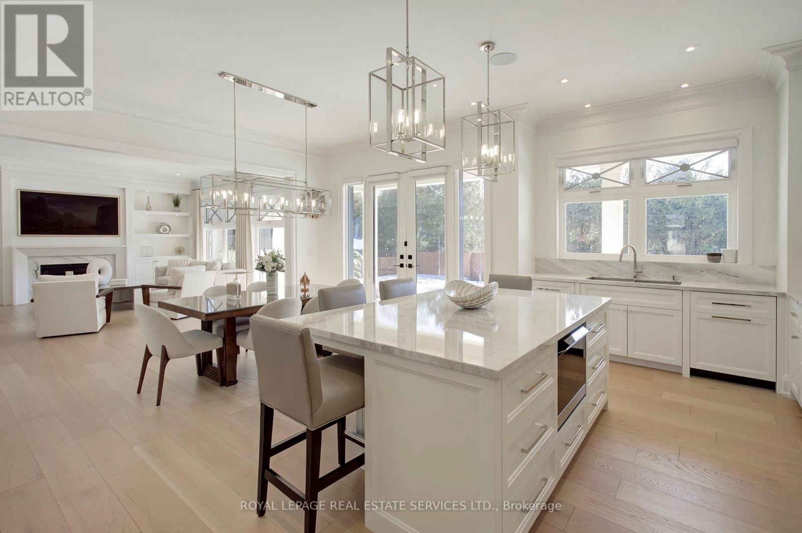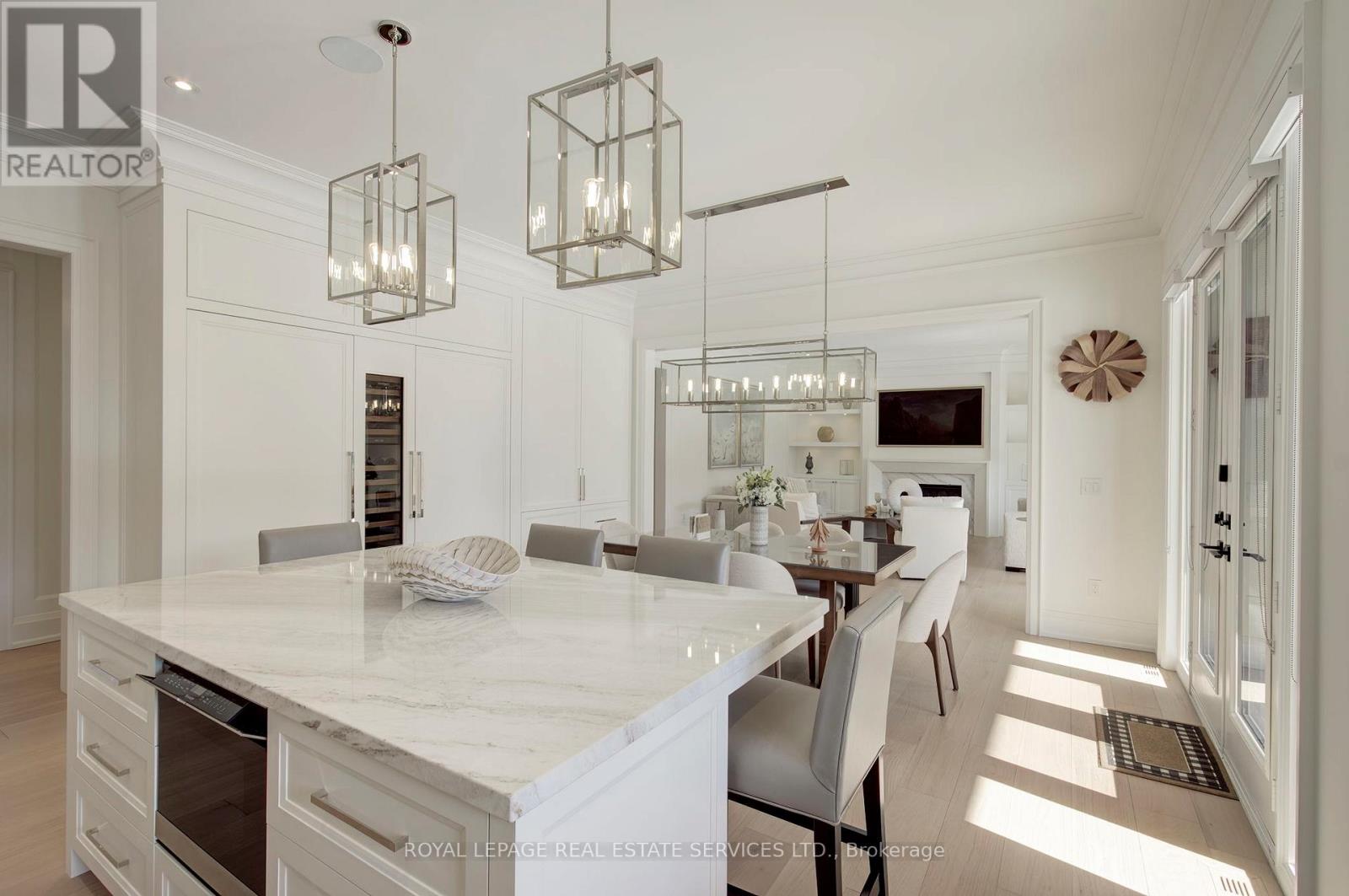 Welcome to 1504 Warren Dr., a spectacular custom-built residence in the heart of Oakville offering approximately 6,300 sq.ft. of luxurious living across three beautifully finished levels. Perfectly positioned on a premium 100 x 150 ft lot, this exceptional home blends timeless elegance, master craftsmanship, and sophisticated smart-home technology. The professionally landscaped grounds create a private outdoor oasis featuring LED nightscape lighting, Wi-Fi controlled irrigation, and a fully fenced backyard retreat. Enjoy effortless entertaining beneath the expansive covered porch with a gas fireplace, natural gas BBQ line, and a Beachcomber hot tub complete with waterfalls, jets, speakers and ambient lighting. The triple car garage features epoxy flooring, LiftMaster openers, Gladiator storage systems, and EV-ready electrical. Inside, a 9-ft mahogany entry door opens to soaring 10-ft ceilings, elegant wall paneling, crown mouldings, and wide plank engineered oak floors. The chef's kitchen is a true showpiece with a 48" Wolf 8-burner dual fuel range, Sub-Zero fridge and freezer columns, Sub-Zero wine column, built-in Sharp microwave/convection oven, Miele dishwasher, and a separate servery with beverage centre. Upstairs, four spacious bedrooms showcase custom vaulted ceilings and built-in closets, complemented by a sky-lit hallway and a convenient laundry room with LG front-load washer and dryer. The fully finished lower level is designed for ultimate entertainment, offering radiant heated floors, a custom home theatre, wet bar ice maker, home gym, additional bedroom, and a spa-inspired bathroom with steam shower, rain head, body jets, LCD integrated panel and speakers. Complete with Control4 8 zone smart sound automation, security film on all windows, multiple gas fireplaces, marble surfaces with protective scratch-proof film and Lennox climate systems, this remarkable residence delivers refined luxury living in one of Oakville's most prestigious neighbourhoods. (id:4555)