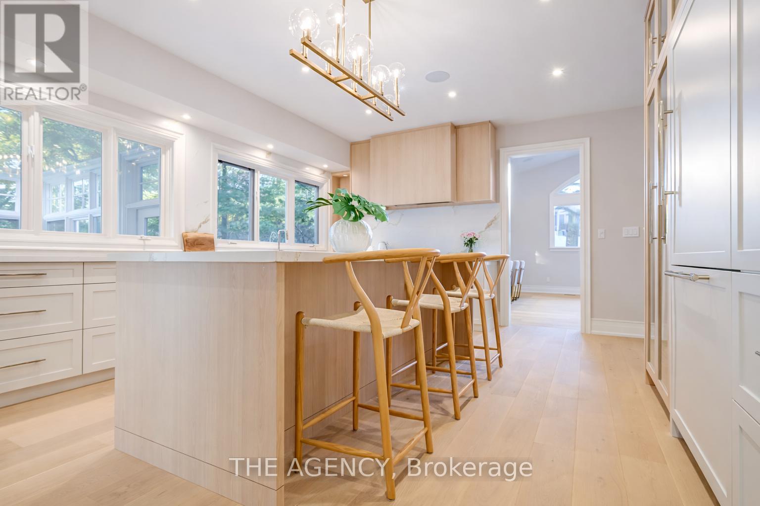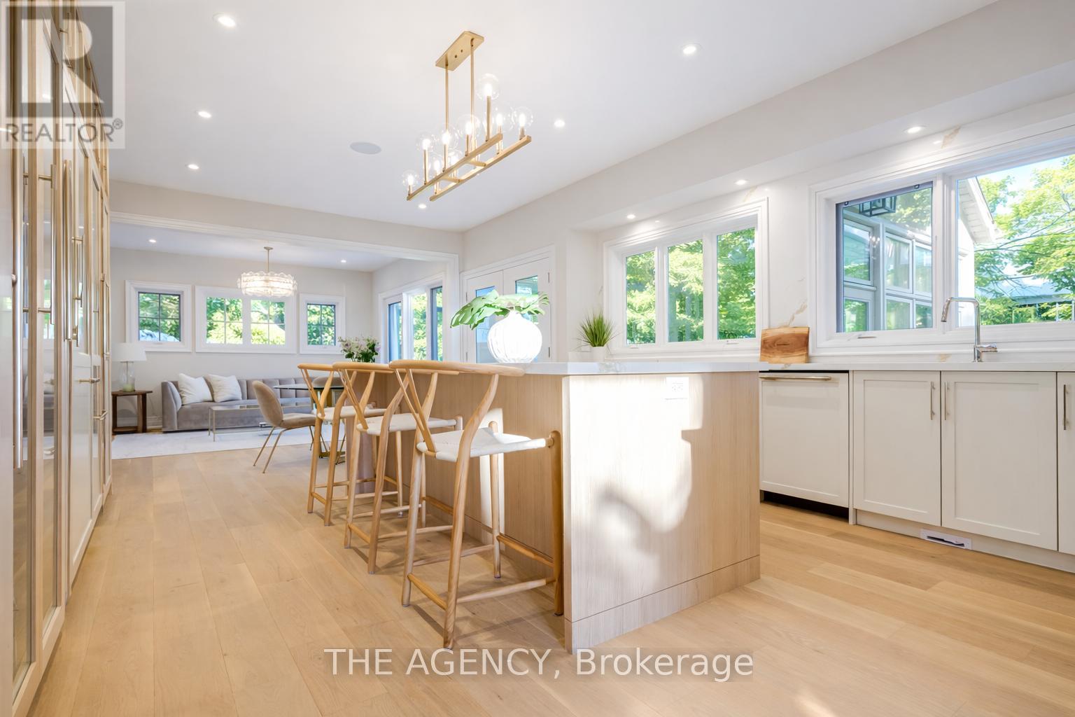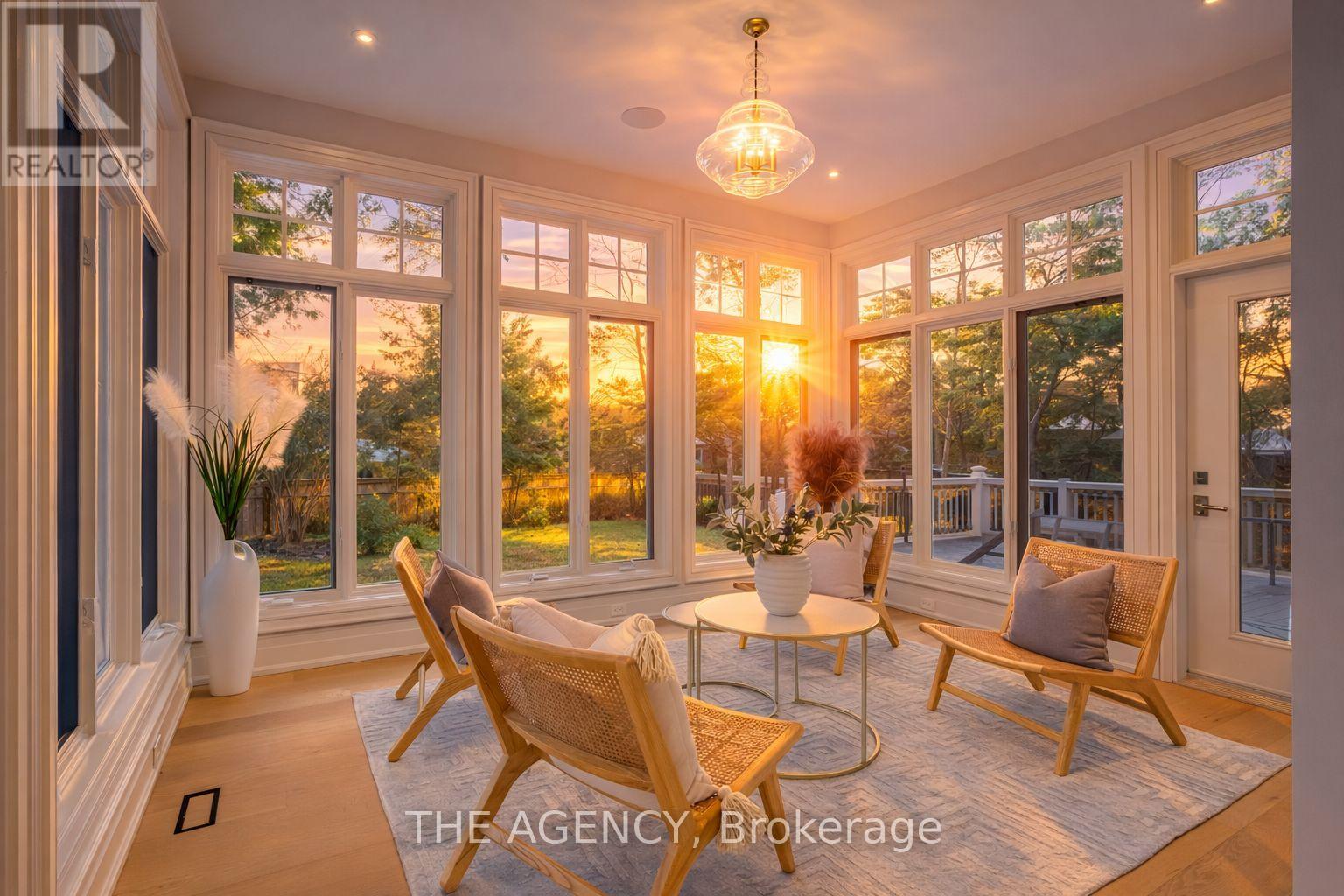 Spectacular fully renovated residence taken down to the studs, offering a thoughtfully redesigned floor plan with timeless elegance and modern functionality. Set on a premium 75 x 150 south-facing lot, just steps to Oakville's top-rated schools. Striking exterior features new stucco, natural stone accents, oversized windows, and exceptional curb appeal. The open-concept interior boasts a grand living and dining area with soaring 13-ft ceilings and a wood-burning fireplace, flowing seamlessly into a custom chef's kitchen and family room. The kitchen features a massive centre island, custom hardwood cabinetry, Wolf gas range, Fisher & Paykel Fridge, and walkout to a sun-filled cedar deck. A year-round sunroom with full HVAC overlooks beautifully landscaped gardens, mature trees, ponds, and stone pathways. Upper level offers two luxurious primary suites, each with spa-inspired ensuites, heated floors, and walk-in closets. Designer finishes throughout include custom millwork, accent lighting, premium hardwood floors, California shutters, and high-end hardware. Finished lower level includes a nanny/in-law suite with in-floor heating, recreation space, and ample storage. Extensive upgrades include spray foam insulation, new electrical panel, sump pump, tankless hot water system, pot lights, built-in speakers, and luxury tile bathrooms. A truly one-of-a-kind home in one of Oakville's most prestigious neighbourhoods. (id:4555)