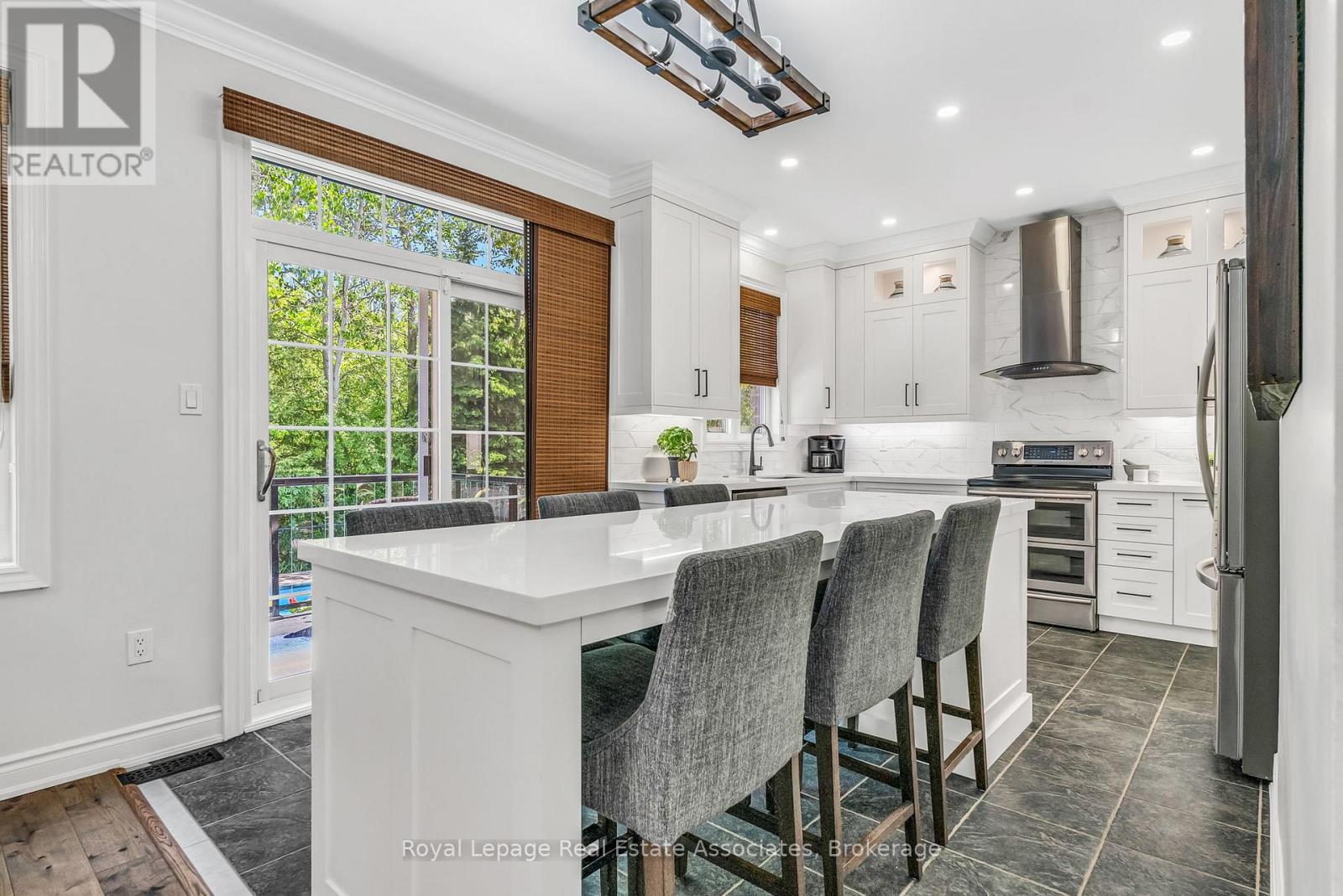 Live the lifestyle you have been dreaming of in this impressive ravine lot home in Oakville's sought after Lakeshore Woods community. Backing onto tranquil green space, this rare offering provides the perfect balance of privacy and convenience just minutes from the lake, Bronte Harbour, and scenic wooded trails. The main floor features a bright open concept layout with rich hardwood flooring and expansive windows that frame serene ravine views. At the heart of the home is a fully renovated chef's kitchen with quartz countertops, stainless steel appliances, a stylish backsplash, and an oversized island with seating for six. This impressive space is ideal for both everyday living and effortless entertaining. The kitchen flows seamlessly into the inviting family room where a cozy gas fireplace and peaceful forest views create the perfect place to relax. Step outside to your private backyard retreat. Designed for both relaxation and entertaining, this resort inspired setting features a saltwater pool, lush landscaping, and multiple spaces for dining, lounging, and gathering with friends and family, all surrounded by the natural beauty of the ravine. Upstairs you will find four spacious bedrooms, including a luxurious primary suite with dual closets and a spa inspired ensuite featuring an oversized glass shower, corner soaker tub, and heated towel bar. A second well appointed bathroom with double sinks and a glass shower serves the additional bedrooms. The finished lower level extends the living space with a home theatre, a dedicated office with a walk in closet, and a fifth bedroom that is ideal for guests, teens, or extended family. Located in one of Oakville's most desirable communities, known for its natural beauty, family friendly amenities, and welcoming atmosphere, this exceptional home offers a rare opportunity to enjoy luxury living in an incredible ravine setting. (id:4555)