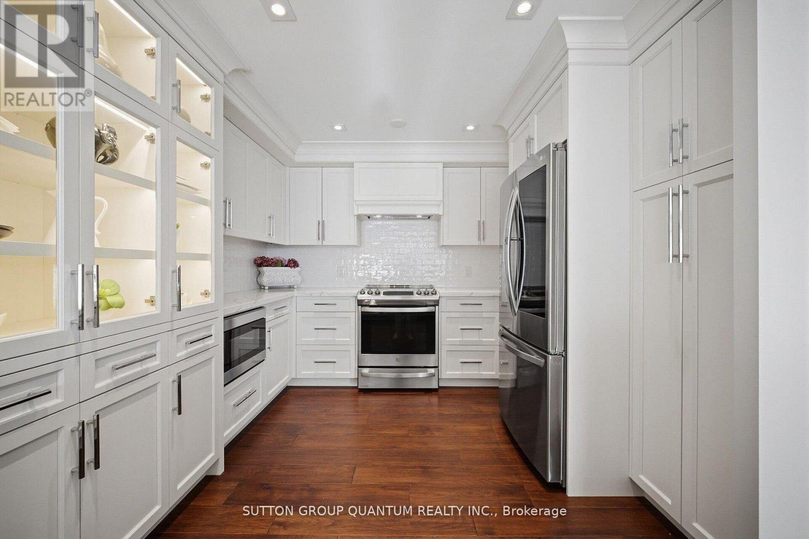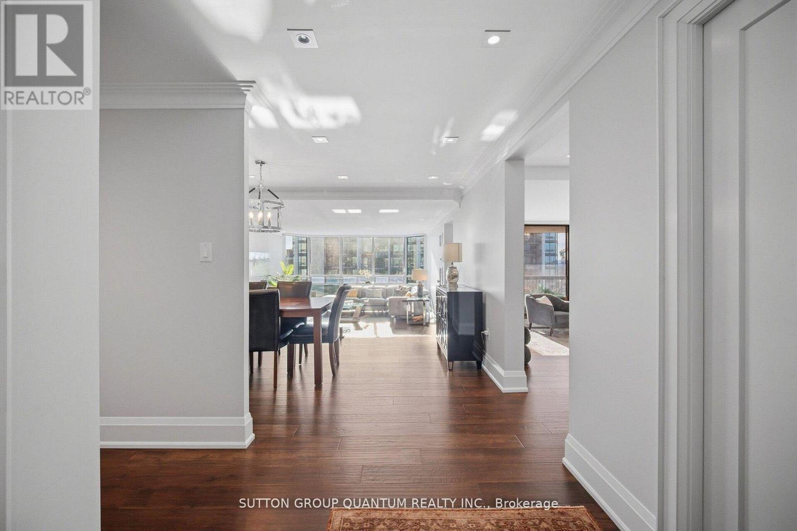 Completely renovated luxury condo in the prestigious Ennisclare II on the Lake, showcasing exceptional craftsmanship and high-end finishes throughout. This exquisite 2-bedroom, 2-bath residence offers elegant living space designed for comfort, convenience, and entertaining. The airy layout features hardwood floors throughout, smooth ceilings, crown moulding, custom millwork, 8 inch baseboards, glass railings, pot lights, floor-to-ceiling windows, motorized blinds integrated with home automation. The gourmet kitchen includes quartz countertops, designer backsplash, premium stainless steel appliances, hidden built-in microwave, extensive cabinetry, pot drawers, built-in organizers, glass display cabinets with accent lighting, and an eat-in breakfast area overlooking the family room. Spacious family room with floor-to-ceiling sliding doors walks out to a balcony offering breathtaking, lake views. Formal living and dining area features large picture windows and elegant architectural detailing. The primary bedroom retreat offers a custom feature wall, and an expansive walk-in closet. Spa-inspired ensuite includes a double vanity with quartz counters and a stand-alone shower. Generous second bedroom, additional 3-piece bath, and convenient ensuite laundry with sink and storage complete the suite. Includes one underground parking space equipped with a Level 2 EV charger and access to a private locker. Residents enjoy resort-style amenities including 24-hour gated security, indoor pool, hot tub, sauna, fitness and yoga studios, tennis and squash courts, party and games rooms, library, golf driving range, woodworking and art studios, car wash, and terraced gardens and private access to the public walkway and paths along the lake and a clubhouse overlooking Lake Ontario. Ideally located steps to Bronte Harbour, Lake Ontario, waterfront trails, parks, boutique shopping, dining, QEW, and transit. Must be seen! (id:4555)