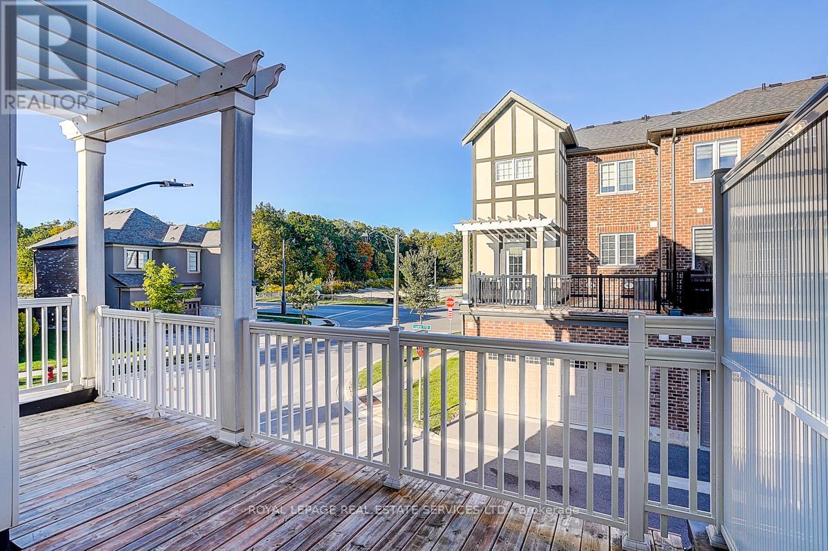 Impressive Mattamy Tamarack Model Townhome in Oakville's Desirable Preserve. This rare premier corner-lot home with a double-car garage offers nearly 2,000 sq. ft. of thoughtfully designed living space, filled with abundant natural sunlight. Highlights include 9-foot ceilings and an expansive corner porch. The versatile main-level suite with a closet and full 3-piece ensuite is ideal as a 4th bedroom or a private office. The upper level showcases a modern eat-in kitchen with granite countertops, stainless steel appliances, and a pantry, perfect for everyday living and entertaining. French doors open to an oversized second-floor terrace with serene forest views, a fantastic spot for BBQs and gatherings. Two bedrooms also overlook the forest, creating a peaceful retreat. For added convenience, this level includes an upper-level laundry room. The third floor offers three spacious bedrooms, including a well-appointed primary suite. With upgraded window coverings, newer finishes, and direct interior access to the garage, this home blends comfort, functionality, and style. Ideally located close to top-rated schools, parks, trails, and all amenities, this property is a must-see! (id:4555)