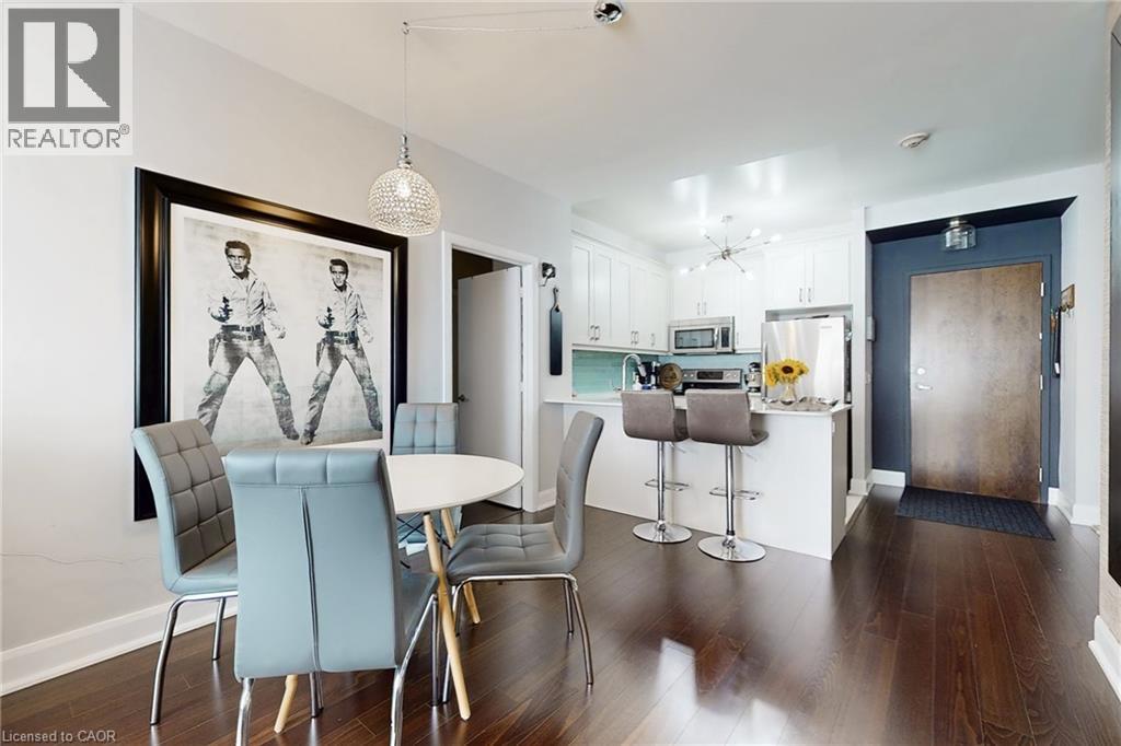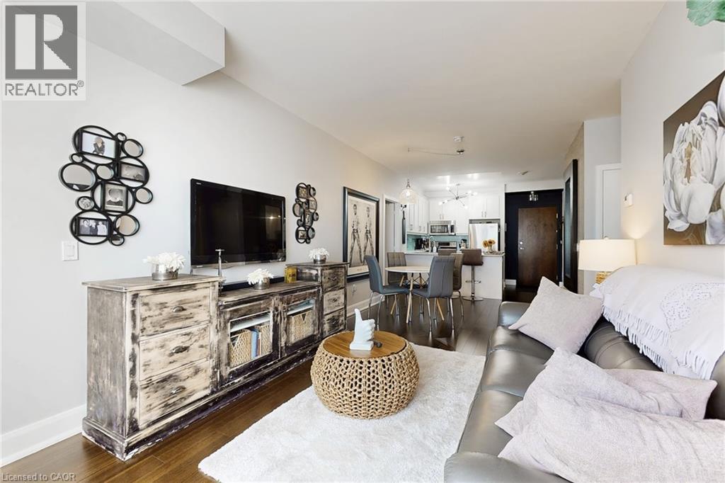 Welcome to this bright and stylish 2-bedroom plus den condo in the sought-after Emporium at Joshua Creek. Featuring a well-designed split-bedroom layout for added privacy, soaring ceilings, and a modern neutral finish throughout. The kitchen is both functional and elegant with stainless steel KitchenAid appliances, quartz countertops, and a glass tile backsplash. Enjoy two walkouts to a spacious west-facing balcony, perfect for morning coffee or evening unwinding. The primary bedroom offers a walk-in closet and a spa-inspired ensuite with a sleek glass shower. Residents enjoy top-tier amenities including a fitness centre, pool, saunas, party room, guest suite rental, and 24-hour concierge. Ideally located close to shopping, restaurants, schools, and parks. (id:4555)