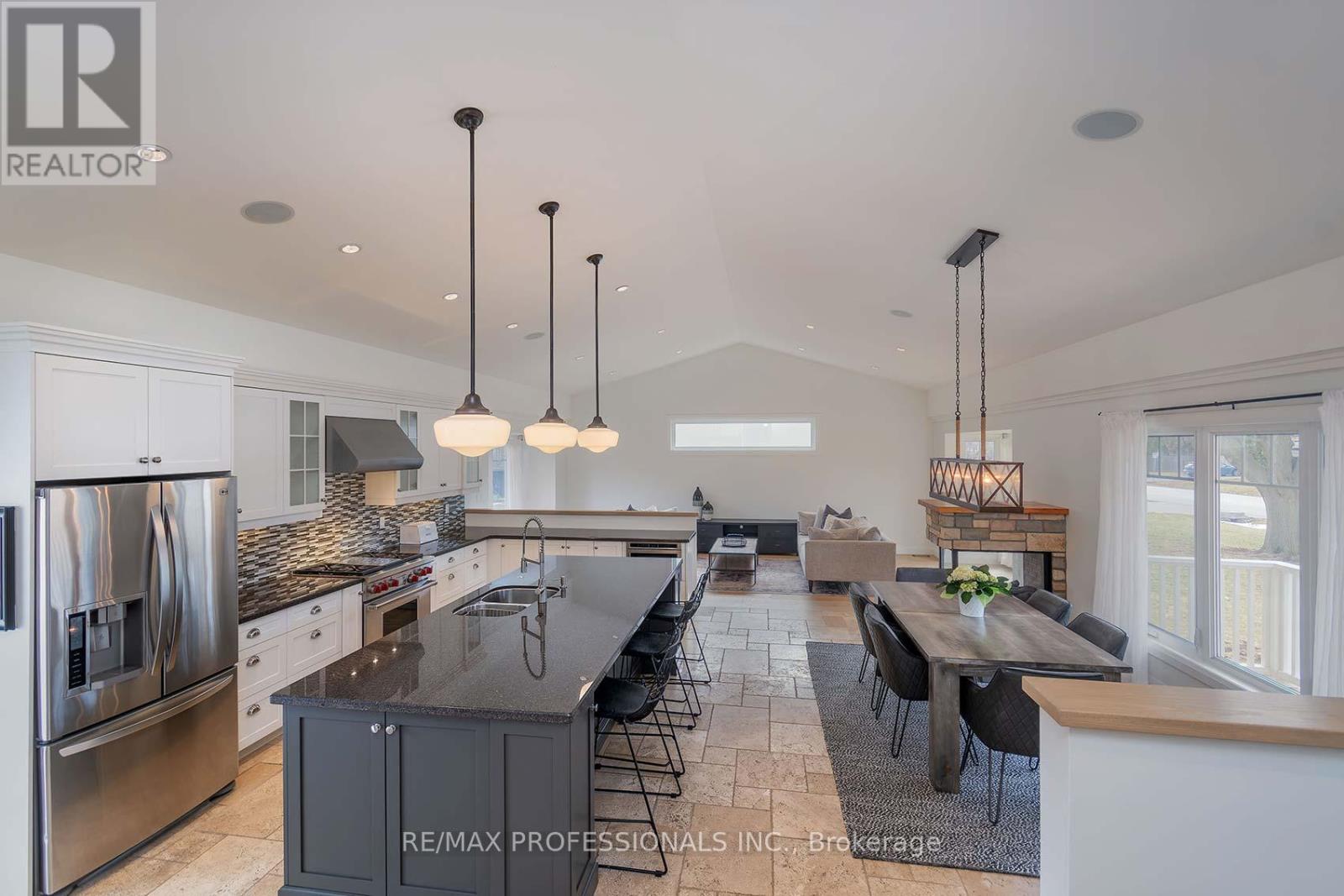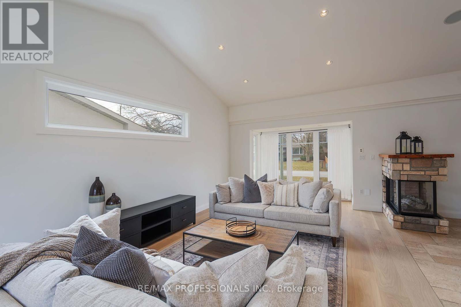 This Is The One! A Welcoming Front Porch Greets You.Open The Front Door & Be Captivated by The Main Floor Open Concept Living Space Featuring Soaring Vaulted Ceilings. The Kitchen Is An Entertainers' Dream with Island, High End Appliances & Wine Fridge. Sliding Door Walk Out From The Kitchen To The Fabulous Deck adds to the Thoughtful Layout. A Cozy Family Room With Fireplace, Stunning Dining area + Bright "Muskoka Style" Feel! Imagine the Family Time You Could Spend Here! Freshly Painted Throughout. Brand New 9" Wide Plank White Oak Engineered Hardwood & New Baseboards. Upper Level Boasts a Large Master Retreat, W/I Closet & Spa Like 5 Piece Luxurious Bath incl Double Sinks & Heated Floor. 2nd Bed & 4pc Main Bath with Quartz Countertops. Heated Floor & Built In Make Up Table. 3rd Bed Features a Sitting Room, Ensuite Bath with Sliding Door Walkout to the Professionally Landscaped Backyard! Convenient Main Floor Laundry with Tub, Built in Counter Top/Storage, Heated Floors, Dog Wash/Shower & Access to the Spectacular 4 Car Garage! Lower Level Features a Media/Entertainment Rec Room & large 4th Bed! An oversized Utility Room adds to the Storage in this house. So much space to spread out! The Expansive Backyard Has a BBQ Gas Line on the Deck, Patio, Covered Structure with Wood Burning Fireplace, Garden and Deck Lighting and even an Enclosed Dog Area/Run with Pet Grade Turf! Front & Backyard Lawn & Garden Irrigation System. Public Schools: Brookdale P.S.-English JK-8, Pine Grove-French Immersion 2-8, T.A. Blakelock SS down the street. Catholic Schools: St. Nicholas CES, St.Thomas Aquinas SS. Lots of Private Schools in the area. Appleby College 5 min drive. An expansive, private lot on a quiet street in one of South Oakville's most desirable neighbourhoods. Close to the lake, parks, trails, recreational facilities, shopping and restaurants. Easy highway access, close to GO & transit. Don't Miss This Wonderful Home! Click the Virtual Tour/Floorplan drawing li (id:4555)