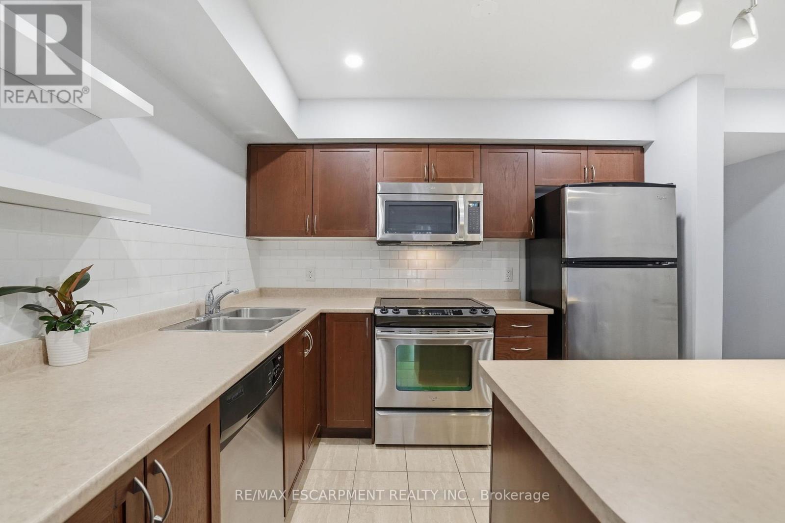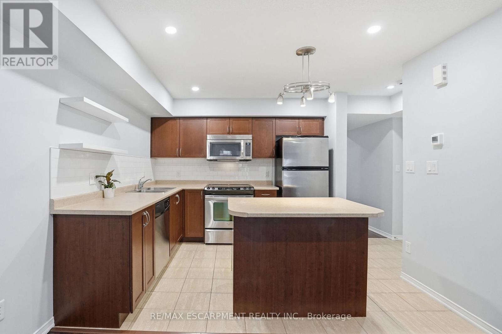 Welcome to the sought after "Waterlillies" community in North Oakville, where modern living meets exceptional convenience in the heart of River Oaks. This beautifully maintained main floor stacked condo townhouse offers a perfect blend of style, functionality and low maintenance living. Featuring 2 spacious bedrooms, and 1.5 bathrooms & approximately 855 square feet, this bright end unit home is ideal for those seeking a vibrant, walkable lifestyle. The open concept layout features laminate flooring, pot lights, stainless appliances, and a movable functional island. Both bedrooms feature carpeting, and the principal bedroom offers a 2-piece washroom as well as a walk-in closet. Additional highlights include one underground parking space and a storage locker. Location of this home is perfect, steps from Oak Park Blvd, you will enjoy easy access to grocery, shopping, cafes, restaurants, fitness, and your everyday essentials. Surrounded by parks, schools and trails, and highways, and transit this property is urban convenience in a family friendly community. RSA. (id:4555)