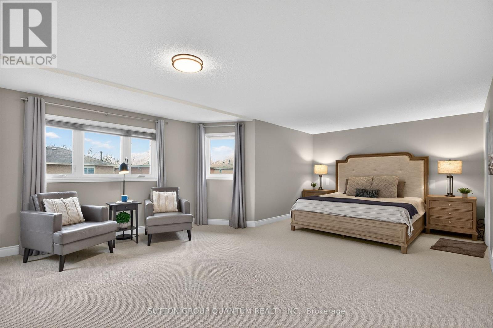 Welcome to this beautifully renovated and meticulously maintained family home, ideally situated on a quiet, child-friendly street in the highly sought-after River Oaks community. Offering over 4500 sqft of total living space, this impressive 4+1 bedroom, 5-bathroom home is perfectly designed for both everyday family living and entertaining. The main level features a spacious entry foyer with high end Italian tile and hardwood flooring , traditional living and dining rooms, and an open-concept kitchen complete with a walk-in pantry, eat-in area, and walkout to a private backyard oasis. An oversized family room with gas fireplace, main floor home office/den, powder room, and convenient main-floor laundry with garage and exterior access complete this level. The Grand staircase features new Berber carpet and crisp white spindles lead to the exceptional primary suite which boasts a walk-in closet and spa-like ensuite with new quartz counters. Three additional generously sized bedrooms complete the second floor, including a unique fourth bedroom with its own sitting nook and 2-piece ensuite with quartz counters-ideal for teens or guests. The fully finished lower level offers a large recreation room, gym area, 3-piece bathroom, additional bedroom and ample storage. Step outside to your private backyard, no maintenance retreat featuring an inground saltwater pool with solar panel heating, interlock patio, perfect for summer entertaining. Notable updates include furnace (2009), windows (2008), California shutters, salt cell (2025), and A/C (2025), New Light Fixtures (2026), New Hardware throughout (2026), New berber carpet (2026), Quartz Counters in bathrooms (2026) A truly exceptional home in a prime family-friendly location. (id:4555)