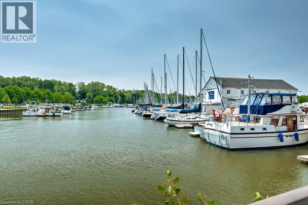 This rare offering in the symbolic StoneBoat Quay, is ready for enjoyment for those seeking the Bronte harbour front lifestyle and the best that Oakville has to offer. The home features an oversized floor plan, meticulously maintained and upgraded with fine modern finishes that brighten and add vibrancy to the space. An elegant and cozy setting for lakeside lifestyle. The heart of the home, the kitchen featuring freshly appointed granite counters and a walnut bar top, flows into the home creating a seamless and open living experience, perfect for entertaining a few or many. The sunken balcony can be accessed from both the living room and large master suite offering a completely private and romantic outdoor space to take in the sights and sounds of exciting Bronte.The building features a private access outdoor seating area waterside, for exclusive use by residents to relax and watch boats drift in and out of the marina. Iconic 100 Bronte, StoneBoat Quay, leads directly to the marina, offering access to cherished Bronte pastimes like kayaking and waterfront exploration. This special residence is conveniently located across the street from the famous Plank Tapas eatery and other emblematic restaurants and patios, steps away from the energetic Bronte farmers market which happens weekly, direct access to the beach, moments from Bronte Go Station and major highway anchors. This home promises a truly luxurious lakeside lifestyle experience. (id:4555)