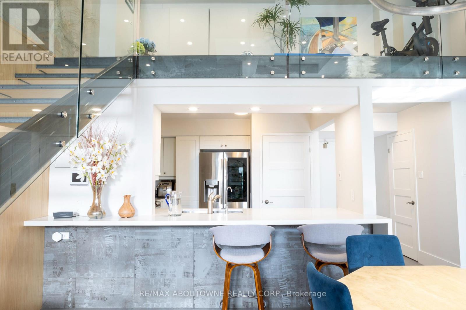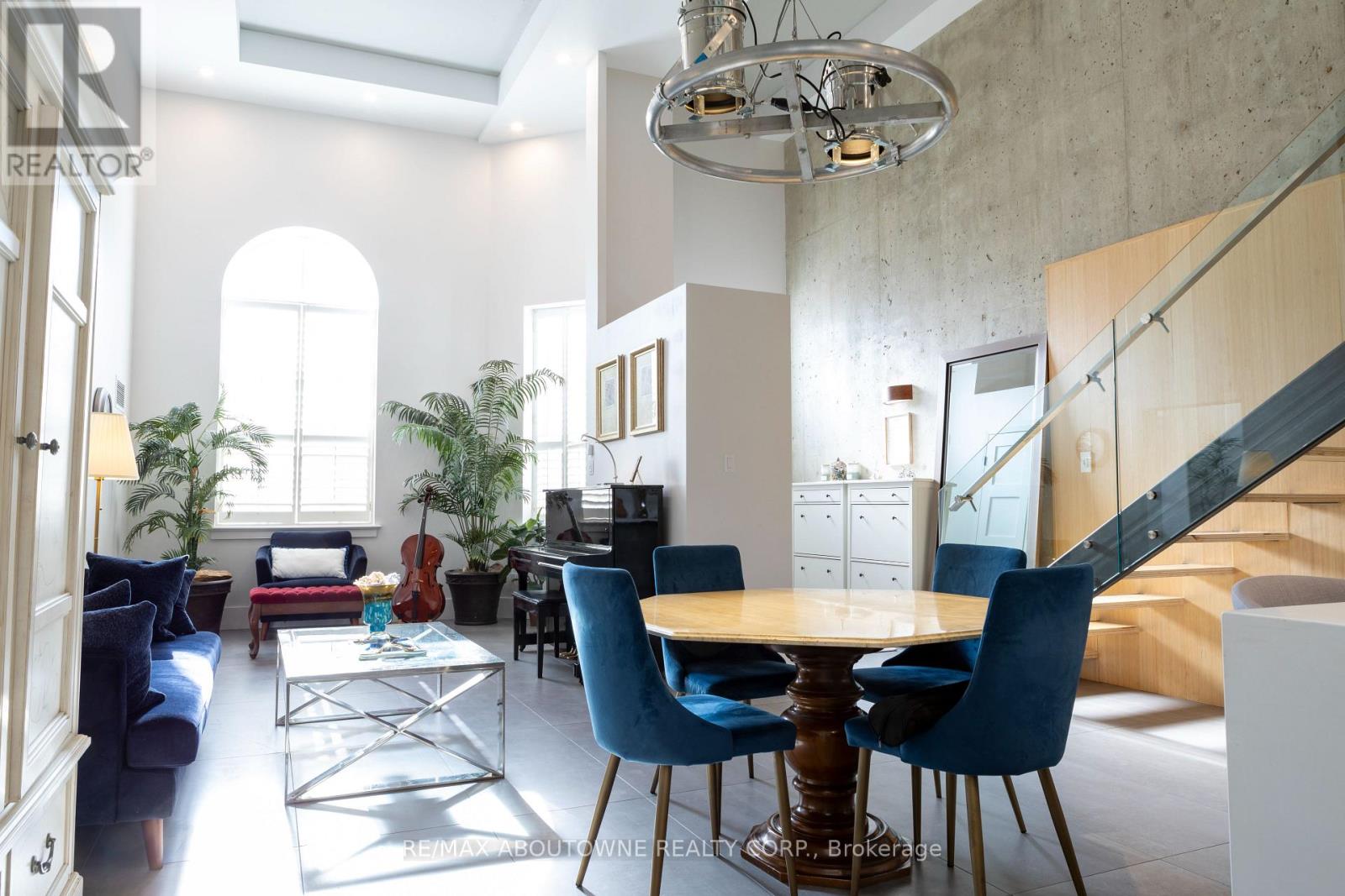 Experience sophisticated urban living in the heart of Downtown Oakville. Perfectly positioned just steps from the lake, boutique shops, cafés, and restaurants, this stunning 2-bedroom, 2-bath loft townhome offers the ultimate blend of style, comfort, and location. Designed with a sleek urban aesthetic, the home features soaring loft-style ceilings and an abundance of natural light that fills the open-concept living space. A striking open steel staircase with modern glass panels serves as a dramatic architectural focal point, complemented by stylish concrete, wood, and steel accents throughout.The modern white kitchen is both elegant and functional, showcasing quartz countertops, stainless steel appliances, and ample cabinetry-perfect for everyday living or entertaining. The spacious living and dining area flows effortlessly beneath the impressive ceiling height, creating an airy and contemporary atmosphere. Upstairs, a unique second-floor loft overlooks the main living area, offering a flexible space ideal for a gym, reading lounge, or office area. Both bedrooms are well-appointed, and the townhome has been freshly painted, making it completely move-in ready. Additional features include locker, underground parking, a rough-in for an electric vehicle charger, and exceptional building convenience. With its unbeatable location just steps from world class restaurants, the waterfront, vibrant shops, and dining, this home truly offers the best of Old Oakville living. A rare opportunity to own a stylish, loft-inspired residence in one of Oakville's most sought-after locations. (id:4555)