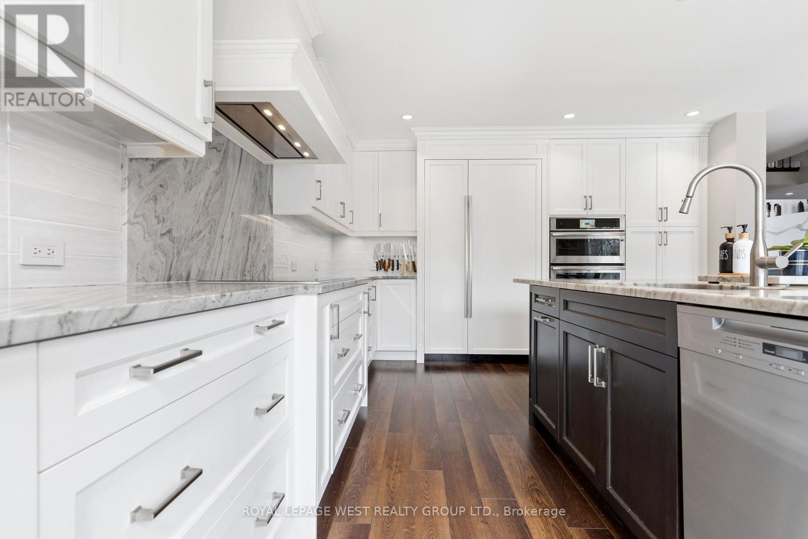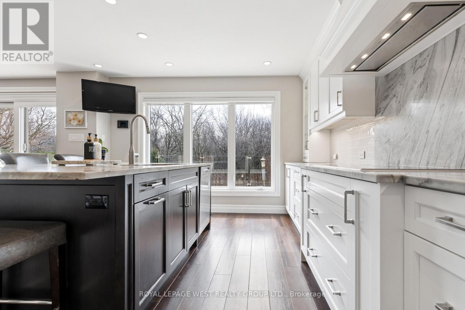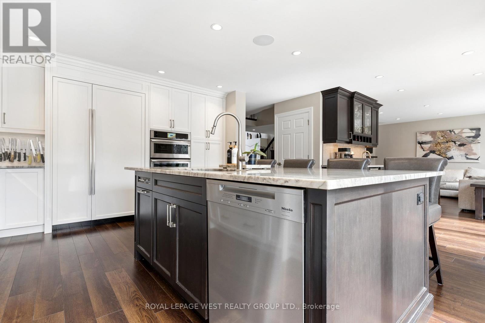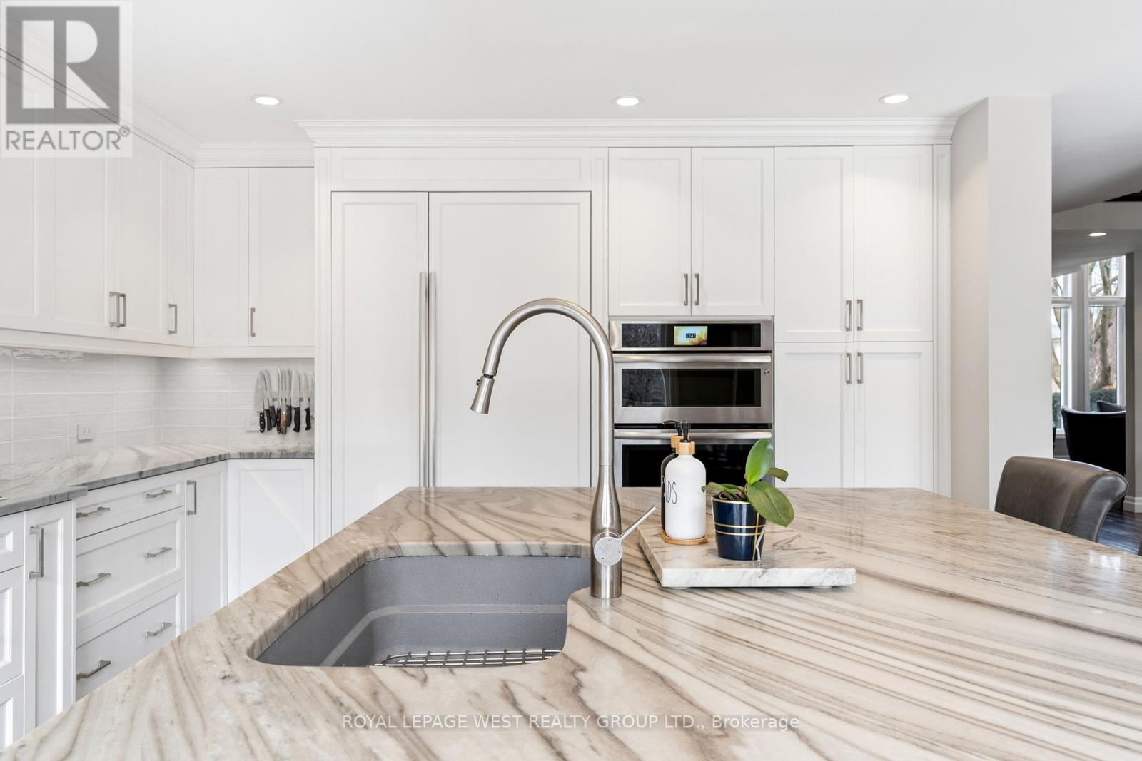 Nestled on one of Glen Abbey's most coveted streets, this exceptional Greenpark-built family home offers the perfect blend of luxury, privacy, and natural beauty-backing directly onto the scenic Fourteen Mile Creek /Glen Abbey trail system. Beautifully renovated and meticulously maintained, this 5-bedroom, 4-bathroom residence delivers refined living across all levels. The grand foyer opens to a striking living space with soaring ceilings and oversized windows, filling the home with natural light. Rich, luxury vinyl floors flow throughout the main level, leading into a designer-renovated kitchen (2021) featuring premium Miele and JennAir appliances, custom cabinetry, and an expansive quartz island-seamlessly connected to the family room for effortless everyday living and entertaining. Upstairs, generous bedrooms provide comfort and functionality for growing families, including a spacious primary retreat. Renovated bathrooms offer a spa-like experience with high-end finishes and timeless design. The fully finished lower level expands your living space with a vast recreation area, ideal for media, games, or extended family living. Step outside to your private backyard oasis-complete with Trex decking, glass railing for a seamless view, a resort-style in ground pool, hot tub, mature landscaping, and breathtaking ravine views. With no back neighbours, this is a rare offering of true tranquility in one of Oakville's most established communities. Extensive updates include kitchen, bathrooms, windows, flooring, furnace, and more-see full feature sheet for details.A rare opportunity to own a turn-key ravine property in prestigious Glen Abbey-where lifestyle, nature, and location come together. Top rated schools and close to GO station (id:4555)