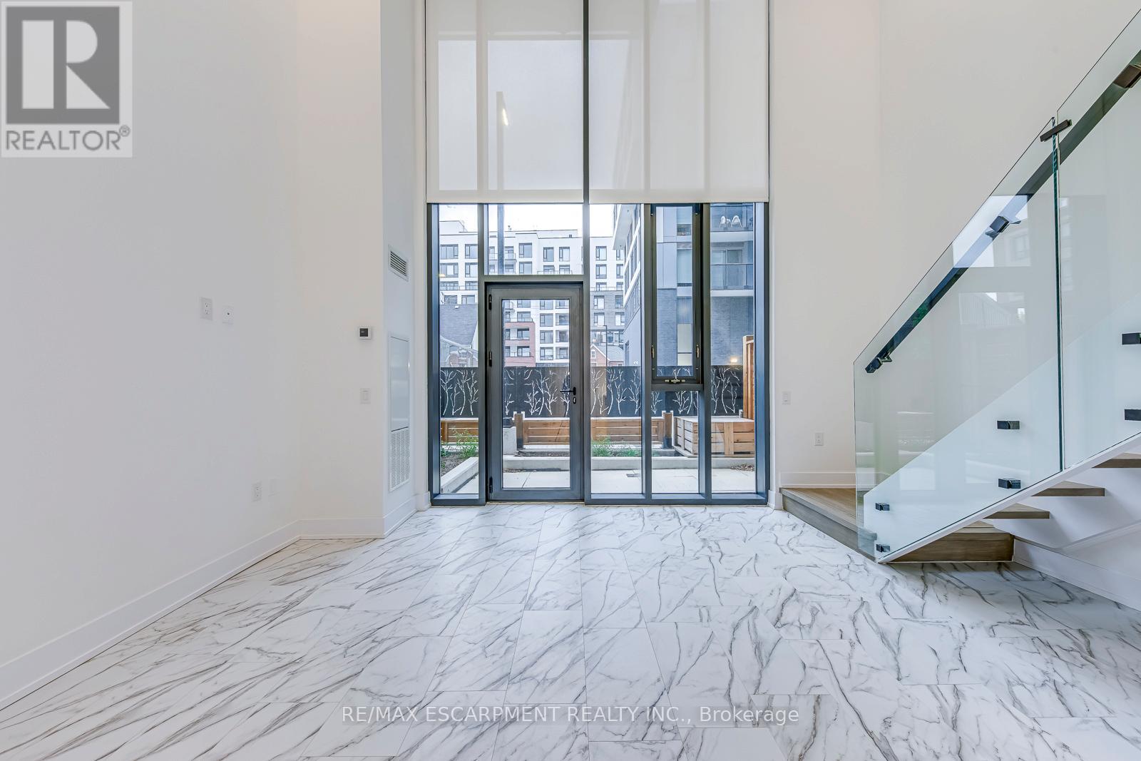 The Branch Condos in Oakville - Where Modern Luxury Meets Lifestyle! Experience upscale living in this rarely offered designer Loft showcasing soaring 18-ft ceilings, a bright open-concept layout, and premium contemporary finishes throughout. The chef-inspired kitchen is a showstopper with built-in and stainless steel appliances, granite countertops, modern backsplash, soft-close cabinetry, and under-cabinet lighting - perfect for everyday living and entertaining alike. The sun-filled living area features floor-to-ceiling windows with motorized blinds, pot lights, a storage closet, and a versatile under-stair space ideal for a home office or reading nook. Step outside to your private finished patio, complete with electrical outlet, gas line, and water hookup - your very own outdoor retreat and seamless extension of living space. Upstairs, the spacious primary suite overlooks the main level and offers wall-to-wall closets and ensuite bathroom. Additional highlights include in-suite laundry, a spa-inspired bath with a frameless glass shower and upgraded fixtures. Premium parking and locker included. Enjoy resort-style amenities: a state-of-the-art fitness centre, indoor pool, sauna, party room, guest suite, pet wash station, outdoor terrace with BBQs, 24-hour concierge, and so much more. **High-speed internet and remote monitoring are included in maintenance fees.** Located in a prime Oakville neighbourhood, steps from shops, restaurants, parks, schools, transit, and GO Station, with easy access to major highways. Luxury. Convenience. Lifestyle. Welcome home to The Branch Condos. (id:4555)