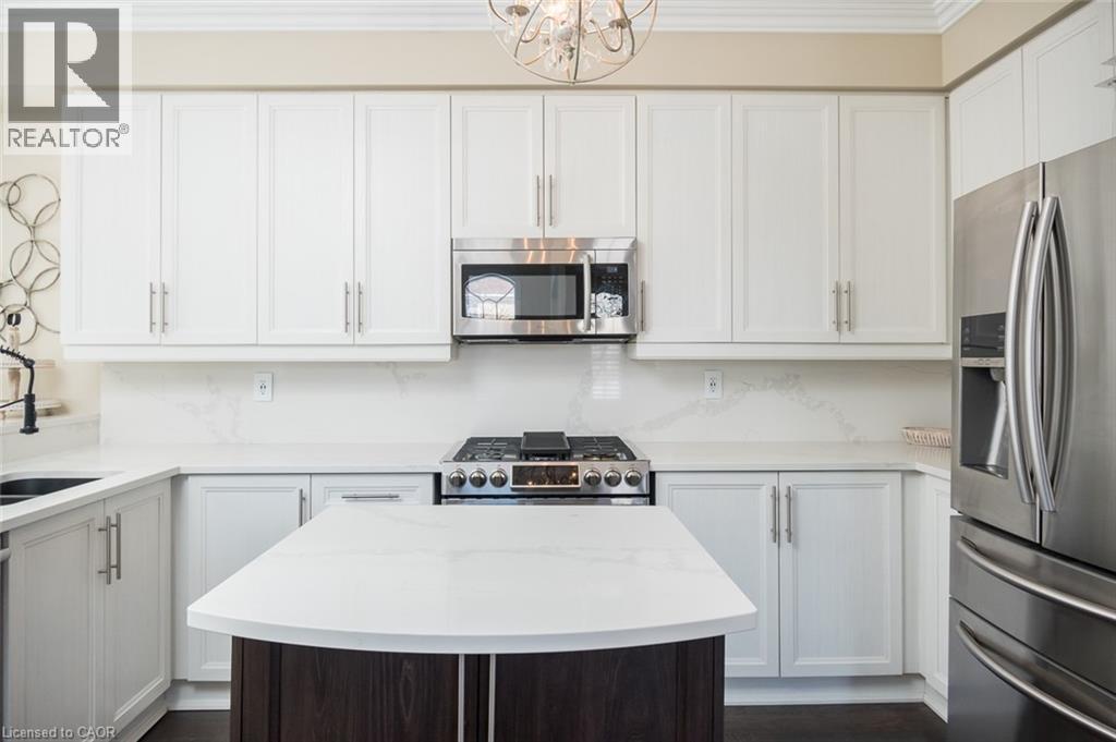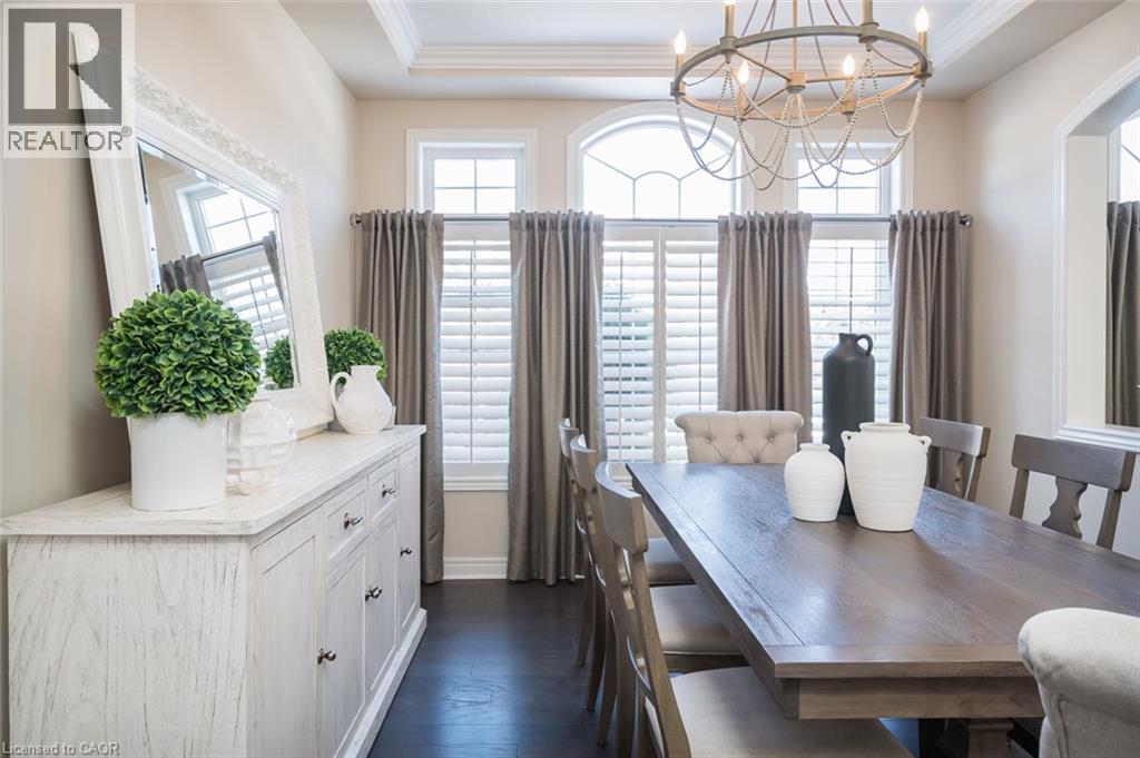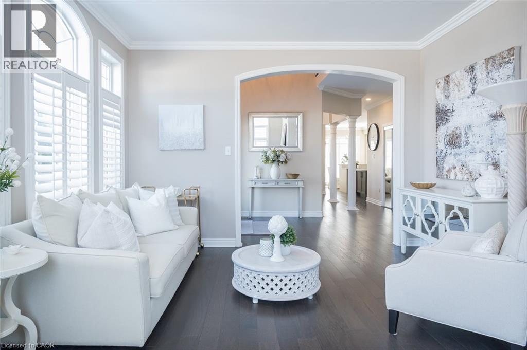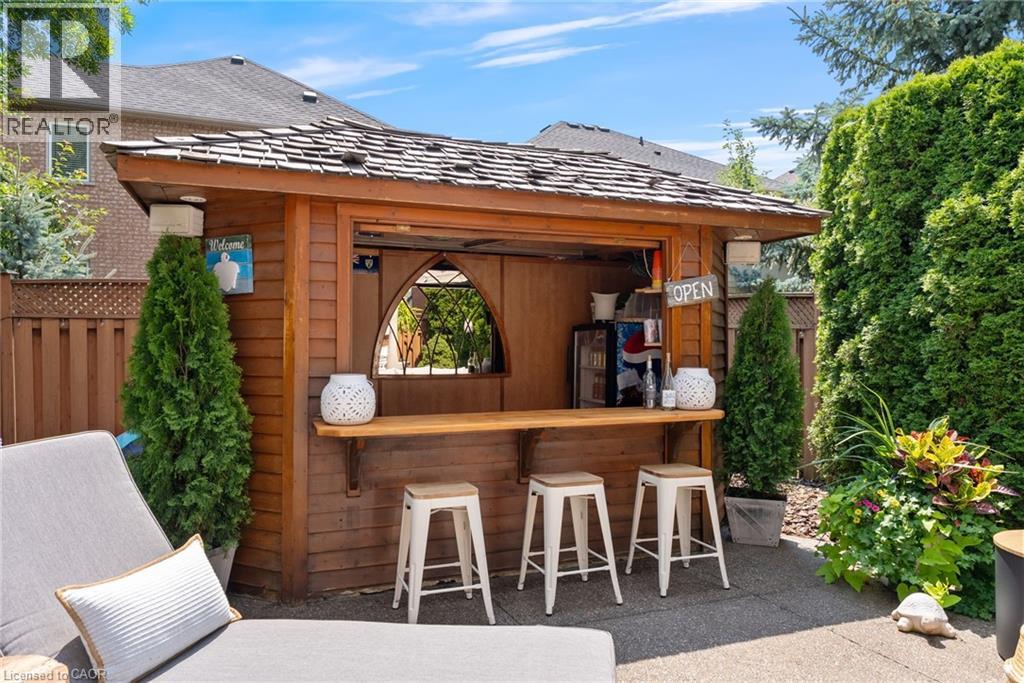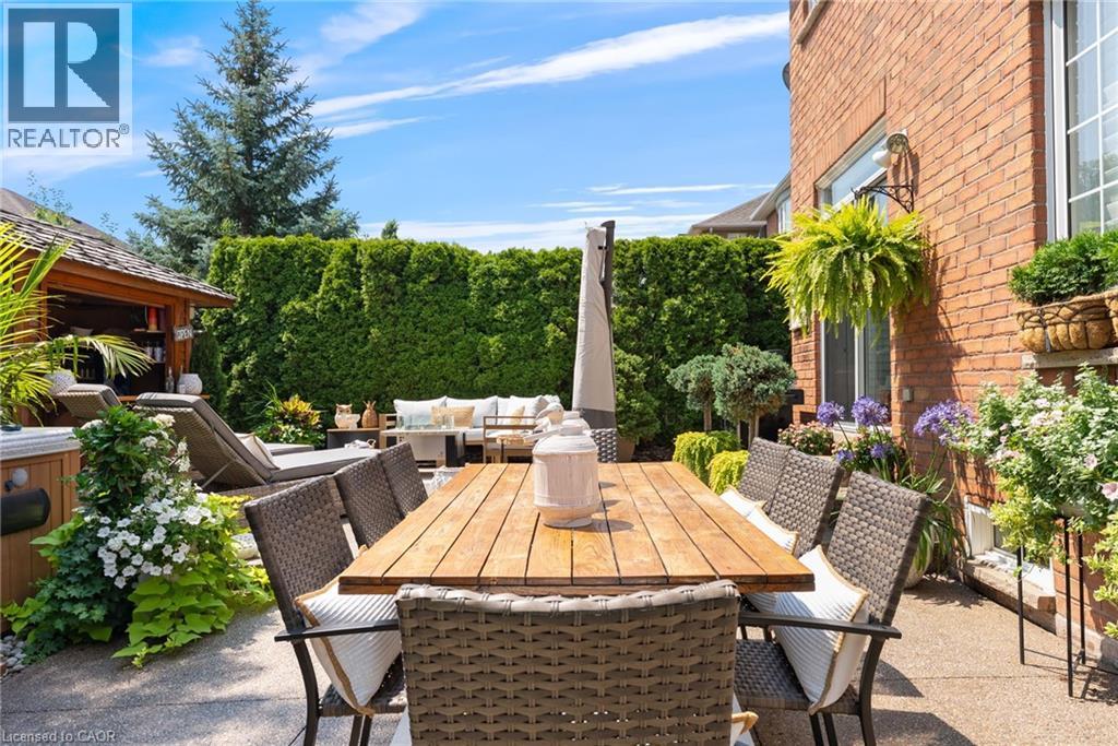 Exquisitely designed with a true model-home feel, this four-bedroom River Oaks home showcases elevated finishes and stunning upgrades that extend from its refined interior to the beautifully designed backyard retreat. A grand double-door entrance opens to an impressive foyer with open-to-above ceilings. Hardwood flooring runs throughout the main level, complemented by crown moulding, pot lights, and a hardwood staircase with wrought iron spindles. Arched windows with transoms and impressive ceiling height define the formal living room, finished with California shutters. A tray ceiling enhances the formal dining space, while the family room is anchored by a gas fireplace. The upgraded kitchen features white custom cabinetry, quartz countertops, a full slab backsplash, stainless steel appliances, and a generous island with breakfast bar seating. A bright eat-in area with sliding doors connects seamlessly to the rear yard. Upstairs, a spacious hallway leads to a generously sized primary retreat with ample closet space and a well-appointed five-piece ensuite. A second bedroom offers five-piece ensuite privilege, and two additional well-proportioned bedrooms provide flexibility for family, guests, or office space. The fully finished lower level adds valuable living space with a recreation area and built-in bar. Pot lighting and crown moulding enhance the ceiling detail, while a three-piece bathroom and multiple storage areas add everyday functionality. The backyard is designed for entertaining, featuring an expansive exposed aggregate patio, , hot tub, and custom cedar cabana bar, all surrounded by mature hedging for privacy. Located in the heart of River Oaks, close to top-rated schools, Oakville Hospital, parks, trails, shopping, and commuter routes, this home delivers elevated living in one of Oakvilleās most established neighbourhoods. (id:4555)