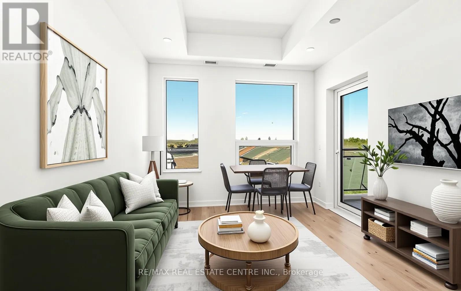 Welcome to a stunning 1-bedroom plus den unit offers an open layout with abundant natural light with large windows and soaring ceilings. A spectacular floor-to-ceiling glass is among the many appeals. The kitchen features sleek built-in appliances, quartz countertops, and stylish finishes. The spacious bedroom includes double windows with scenic views, and the den offers flexible space as an office or second bedroom. Enjoy top-tier amenities, including a pet wash station, rooftop BBQ area, movie theatre, fitness centre, workstations, Wi-Fi, and concierge services. Located in Oakville's Glen Abbey community. Proximity to top schools, dining, and entertainment. Downtown Oakville, with its shops, restaurants, and waterfront, is just minutes away. Easy access to Highway 403, QEW, and the GO Train makes commuting a breeze. This condo offers a perfect blend of style and convenience. Don't miss out on this incredible opportunity! **EXTRAS** Gym, Yoga Studio, Party Room, Private Terrace, Co-Working Lounge,This turnkey unit is move-in ready. Don't miss the opportunity to experience modern living in a vibrant communityBrokerage Remarks (id:4555)