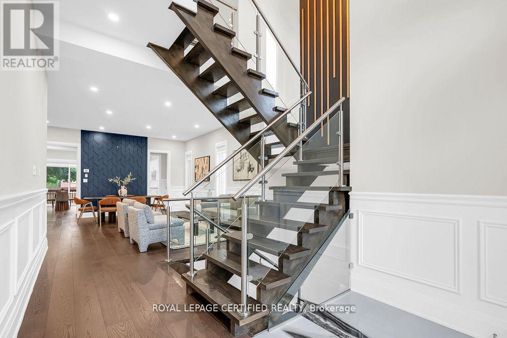 Welcome to 185 Burloak Drive - an executive, turn-key lease Offered fully furnished with brand-new, designer-decorated pieces, ust steps fromLake Ontario in one of Oakville's most desirable areas. Situated on a premium deep lot, this beautifully designed residence offers over 3,000 sq ftof above grade living space, 10-ft ceilings, rich hardwood floors, and detailed millwork throughout. The main level features a formal dining room,private office, and a sun-filled great room with a gas fireplace and custom wainscotting. The chef's kitchen showcases quartz counters, high-endappliances, and a large island that flows into the breakfast area. Upstairs, four spacious bedrooms each feature ensuites and walk-in closets.This home delivers the ultimate in luxury & convenience, and effortless living - minutes from Bronte Village, lakefront trails, and top schools. (id:4555)