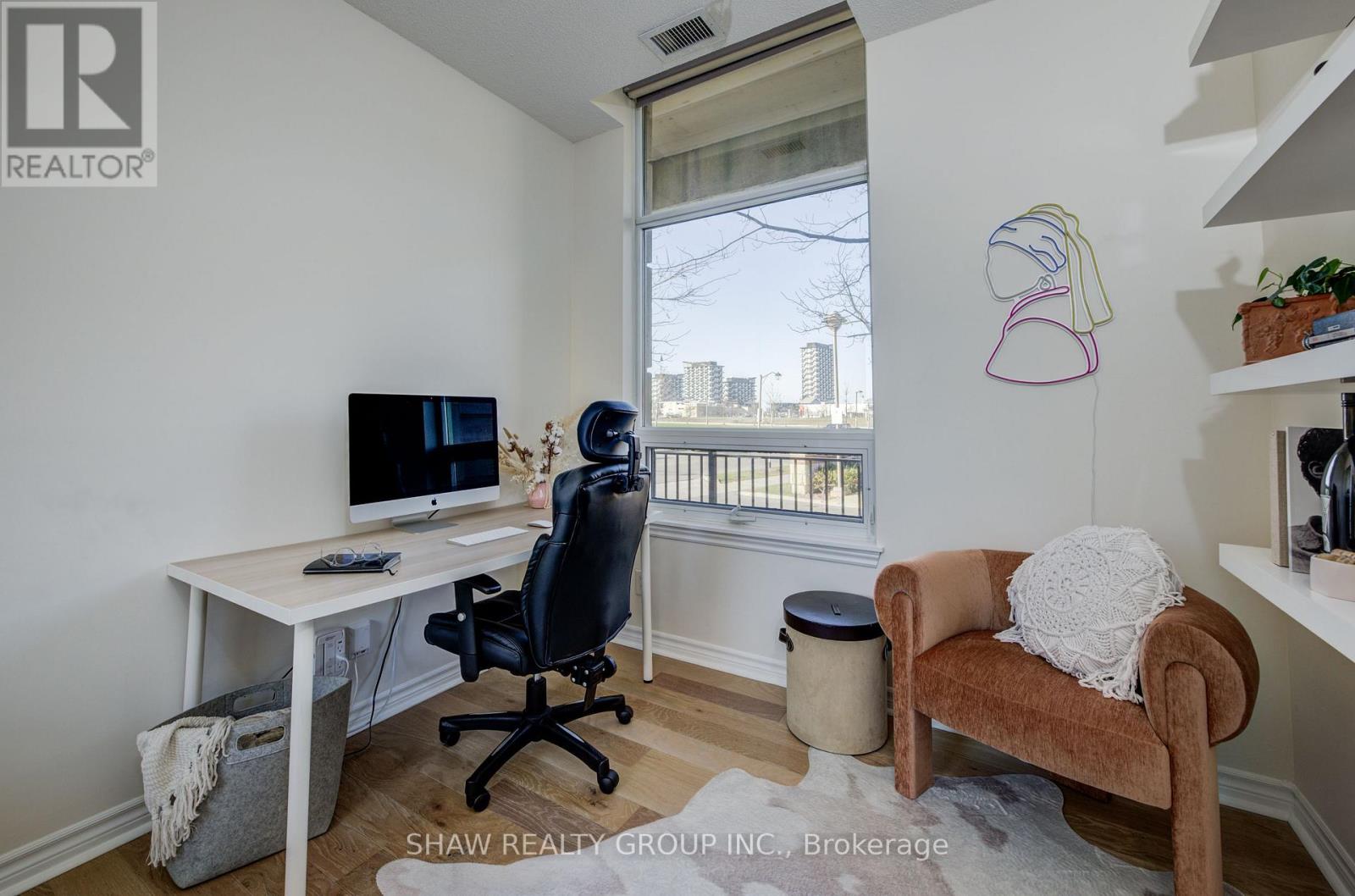 Welcome to your new home in the desirable River oaks community of Oakville , where both visitors and homeowners are embraced by a warm atmosphere. This extraordinary 2 bed 2 bath with a separate dining area, comes with 1000 square foot unit is a rare find, boasting ample natural light complemented by pot lights, high 9 foot ceilings, and expansive windows that illuminate every corner. Perfect for hosting gatherings, the separate dining area adds a touch of elegance to your entertaining endeavours. The galley kitchen, featuring a convenient pass-through and abundant cabinet space, is not only modern but also thoughtfully designed for functionality. Step outside onto the spacious outdoor patio, ideal for savouring your morning coffee or indulging your green. Inside, you'll discover generously sized living spaces, including large bedrooms and two modernly appointed bathrooms. Convenience is key with in-suite laundry, while the building offers an array of top-notch amenities to enrich your lifestyle. Stay active in the large, pristine gym, unwind in the sauna or hot tub, and soak up the sun by the outdoor pool. Parking is a breeze with well-lit underground parking, offering close proximity to the elevator, and a handy storage locker for your belongings. Situated near fantastic outdoor spaces, shopping destinations, public transportation hubs, and reputable schools, this condo presents an unparalleled opportunity for luxurious living in Oakville. (id:4555)